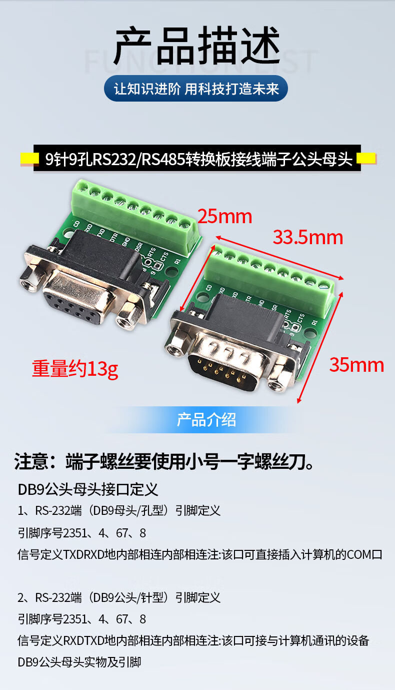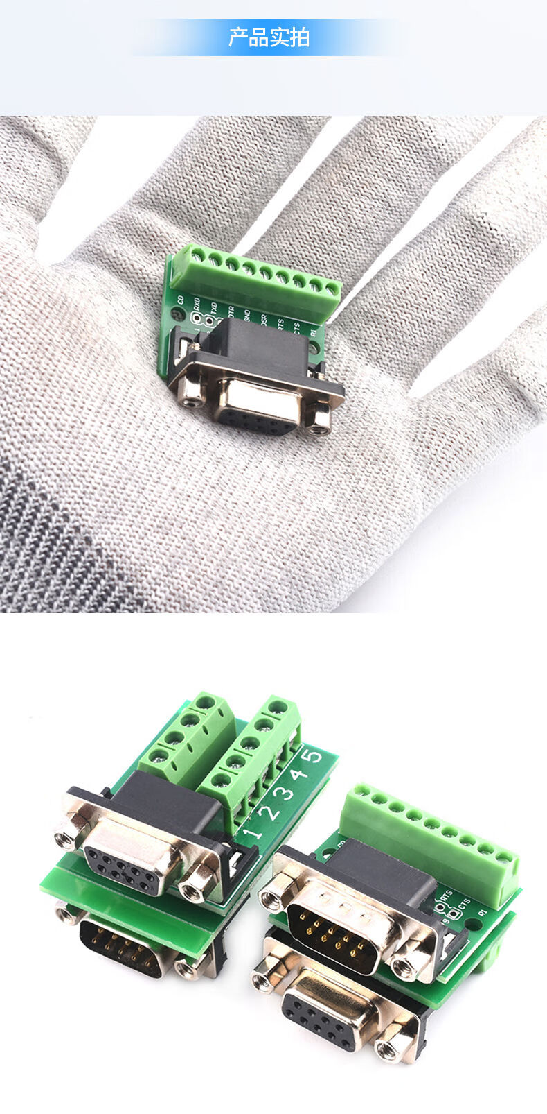 DB9 male and female adapter screw single row/double row terminal block 9-pin 9-hole RS232 RS485 conversion plate 9-hole female adapter plate