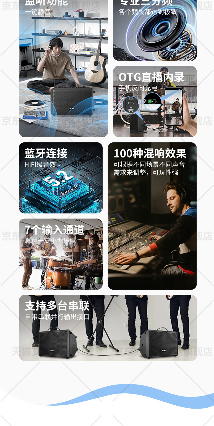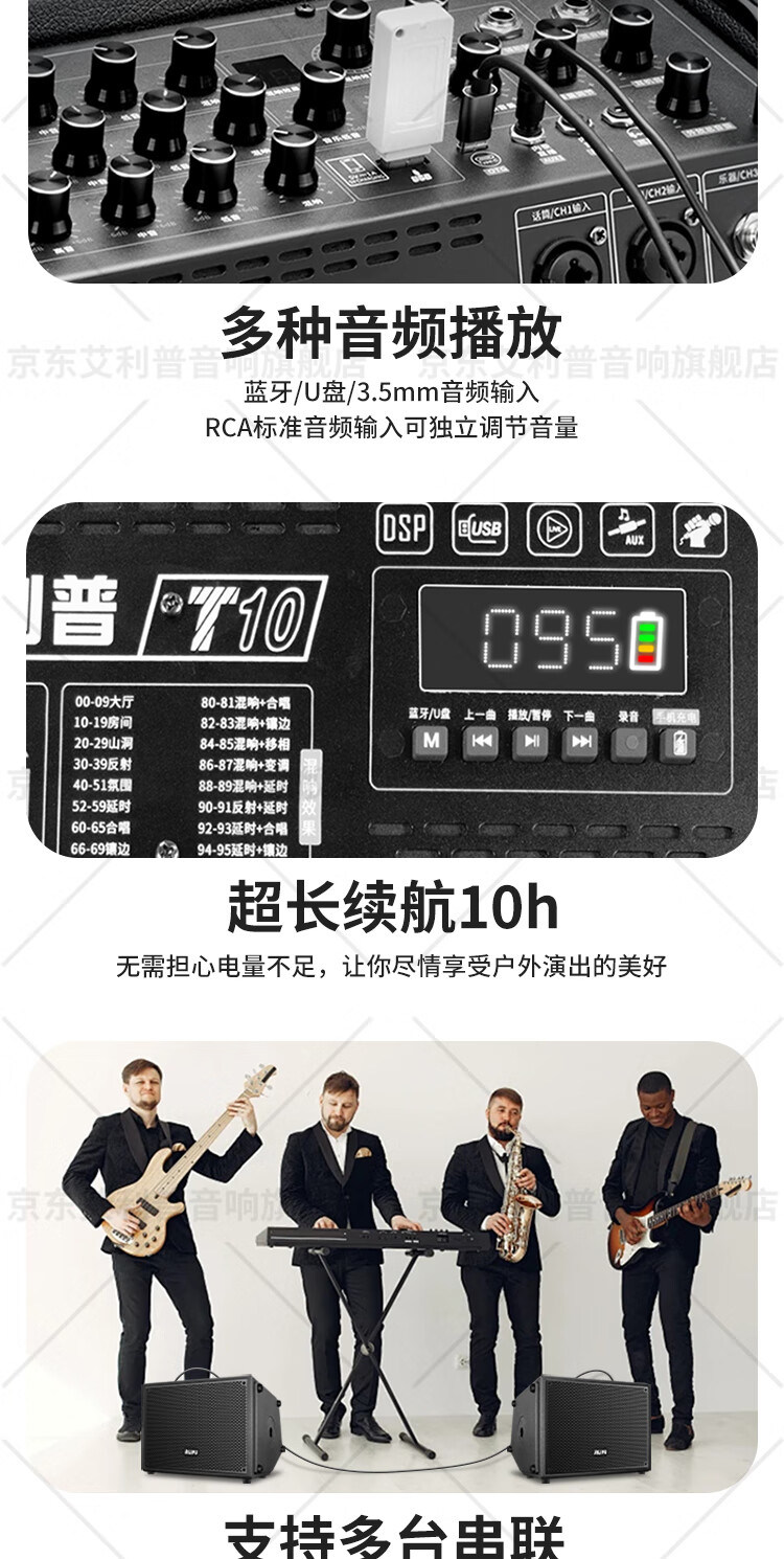 Ailip T10PLUS audio built-in sound card live broadcast internal recording home outdoor portable karaoke instrument singing electric blowpipe saxophone guitar bluetooth high-power speaker official flagship T10plus black standard
