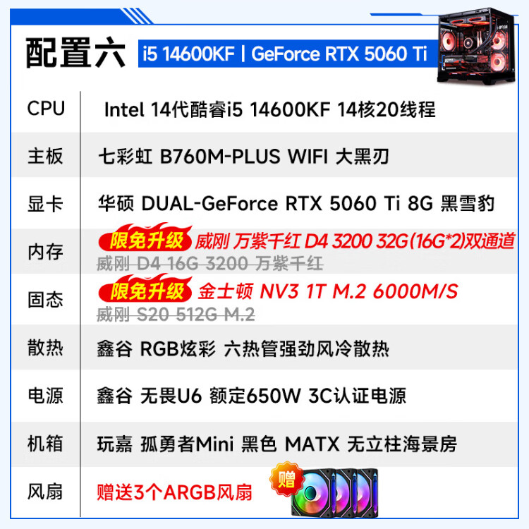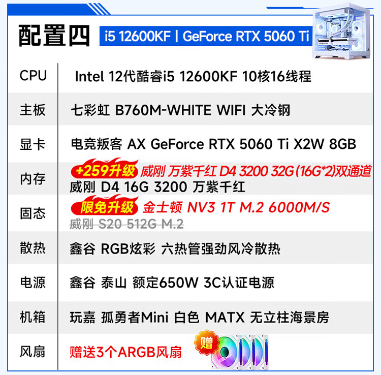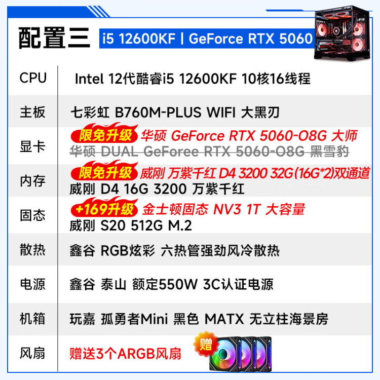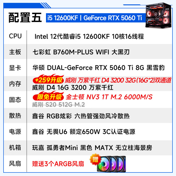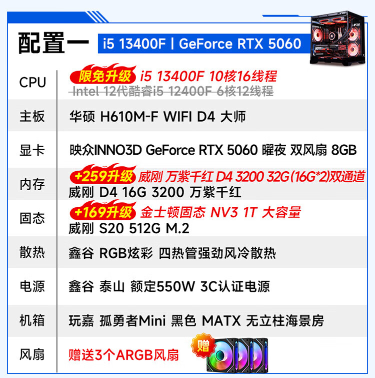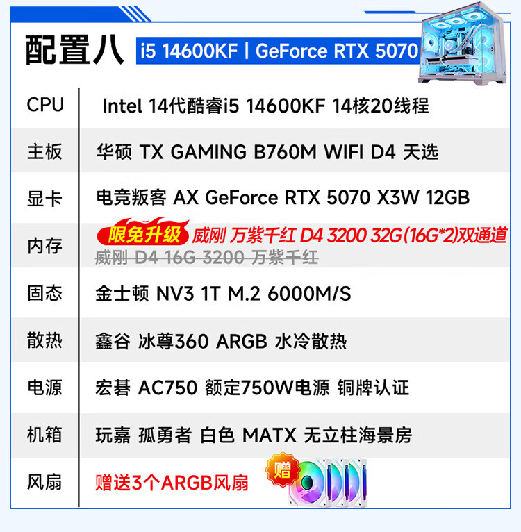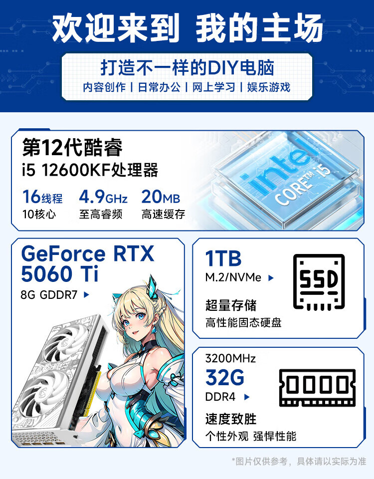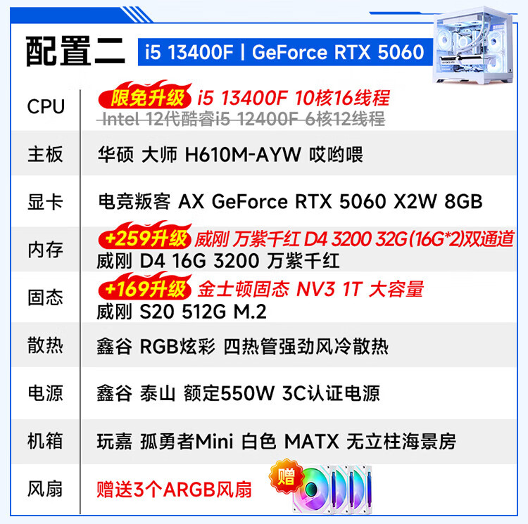 ASUS Seaview Host i5 12600KF/14600KF/RTX5060/RTX5070 gaming desktop computer host assembly Specifications 2丨i5 13400F/RTX5060