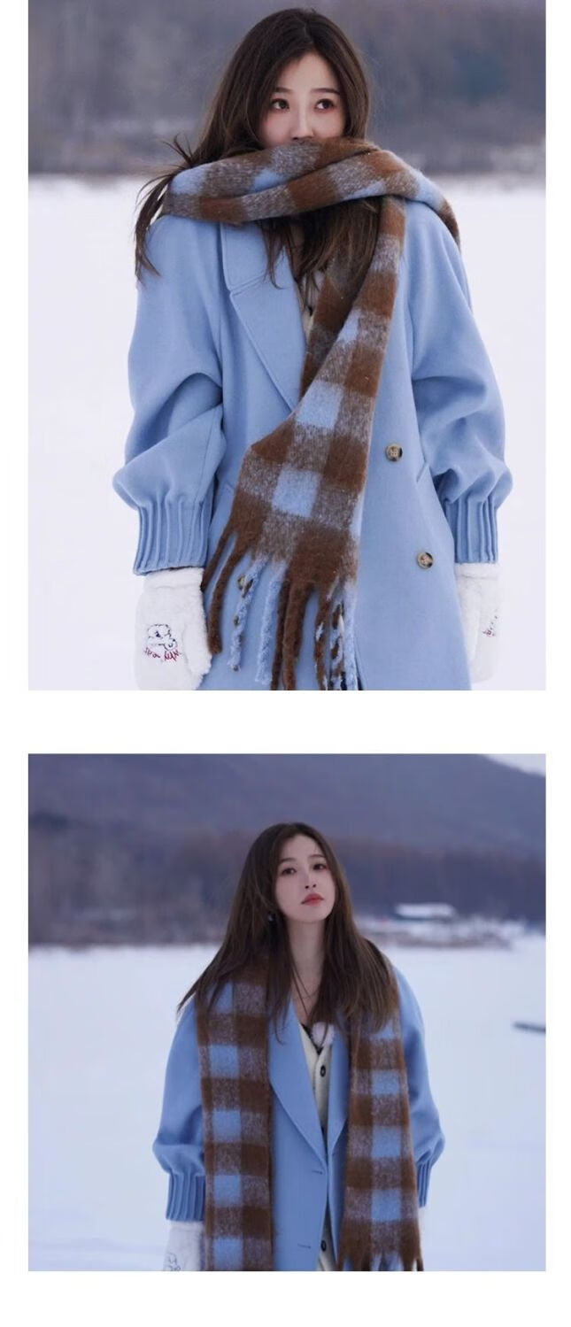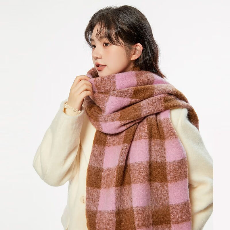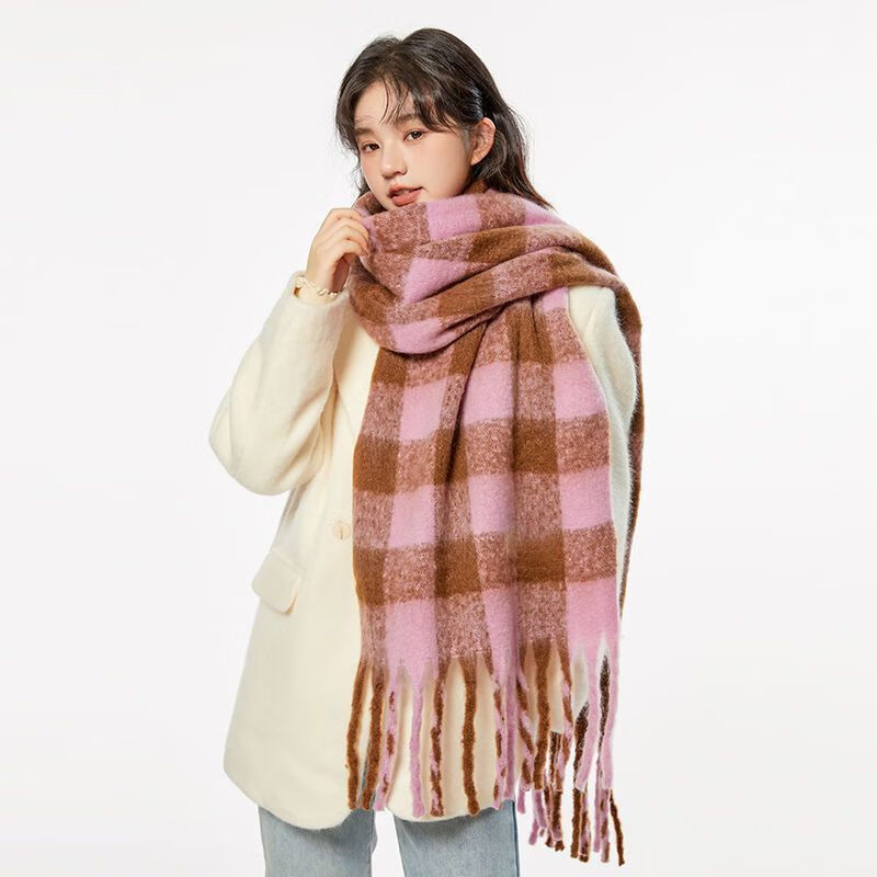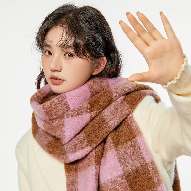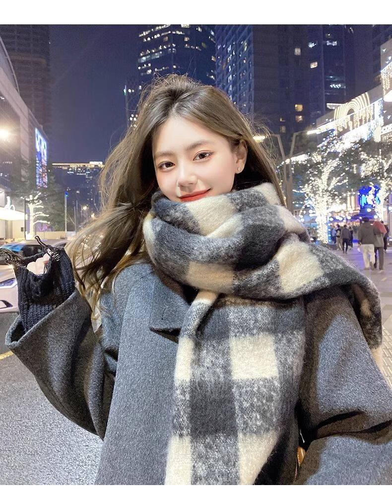 Jinglusi scarf men's winter 2024 new versatile black and white plaid shawl, warm and thick, gift for boyfriend trendy scarf black and white plaid (soft waxy mohair fringed scarf) non-shedding/atmosphere/trend versatile