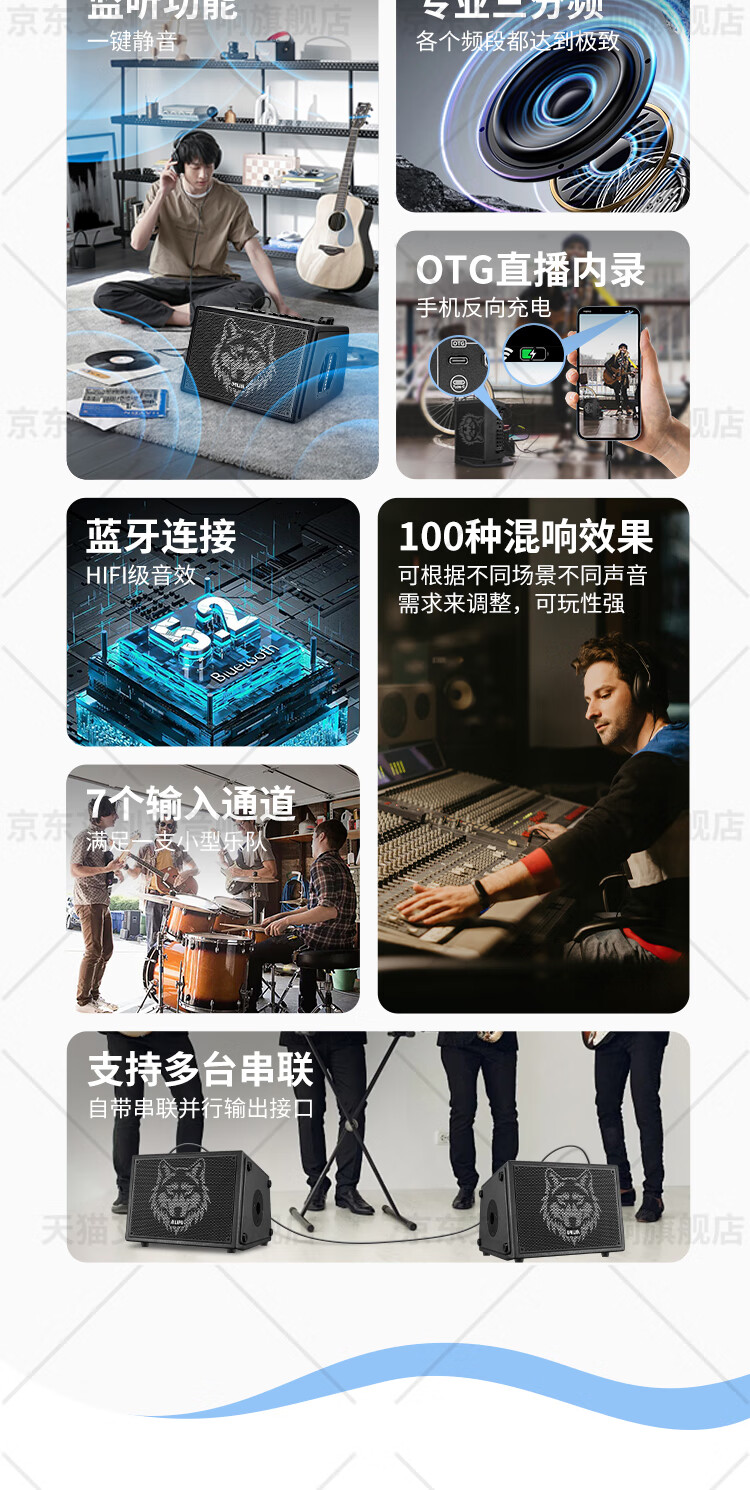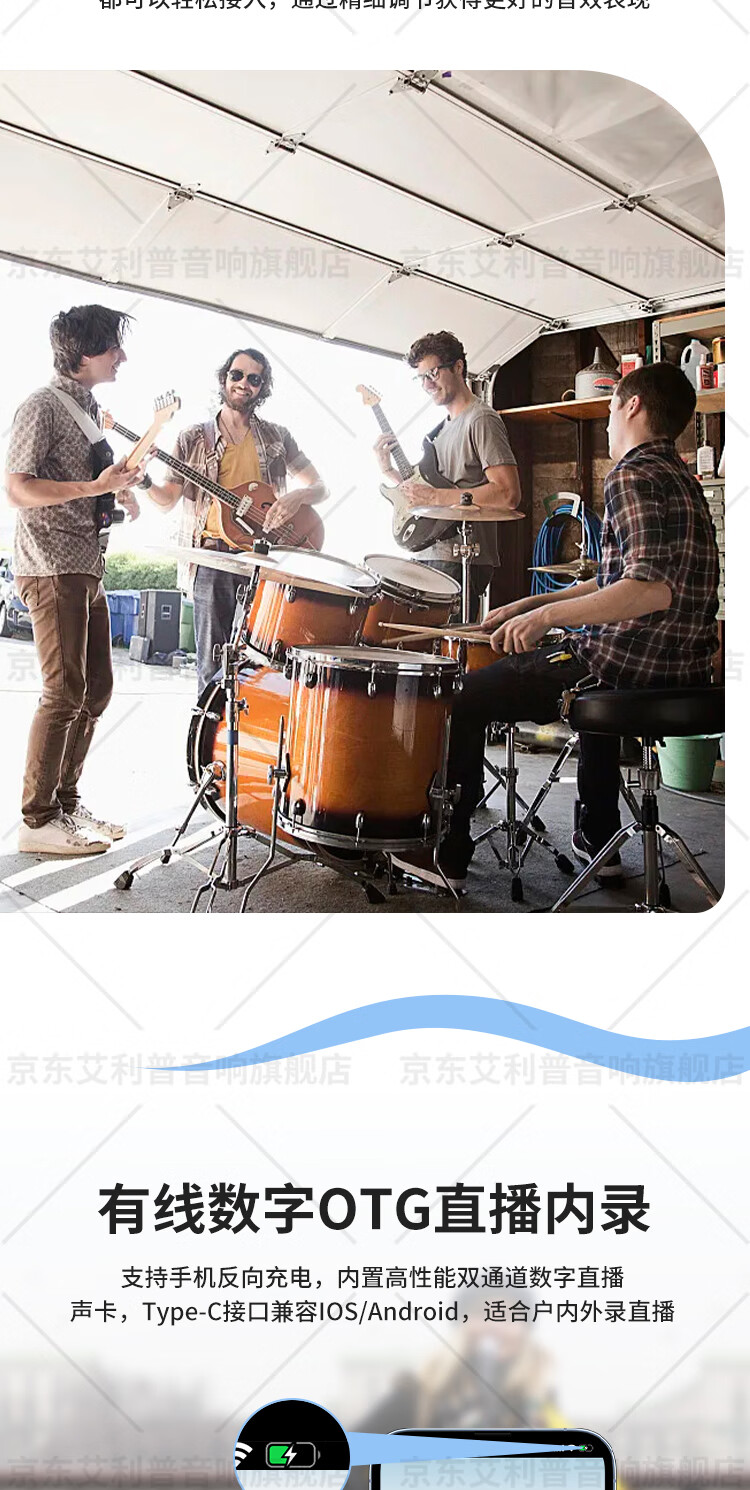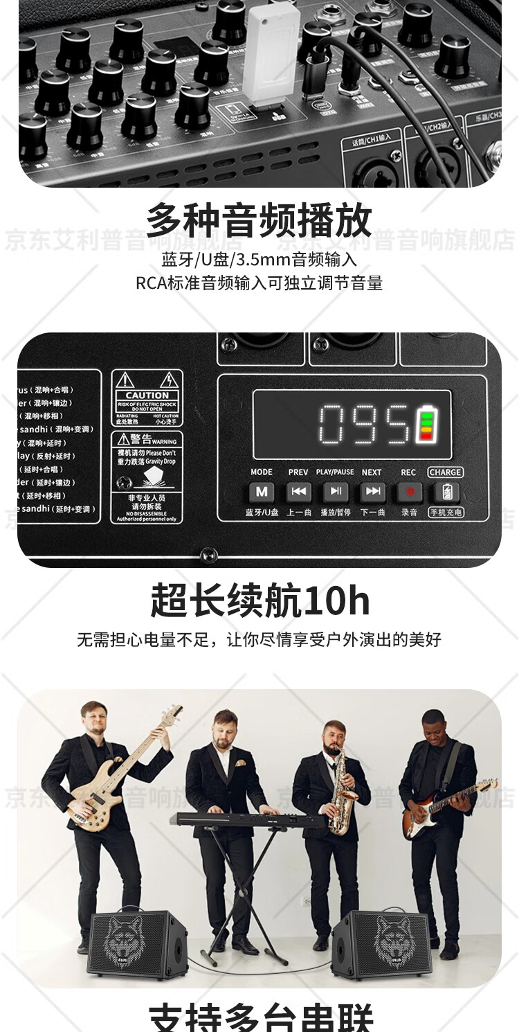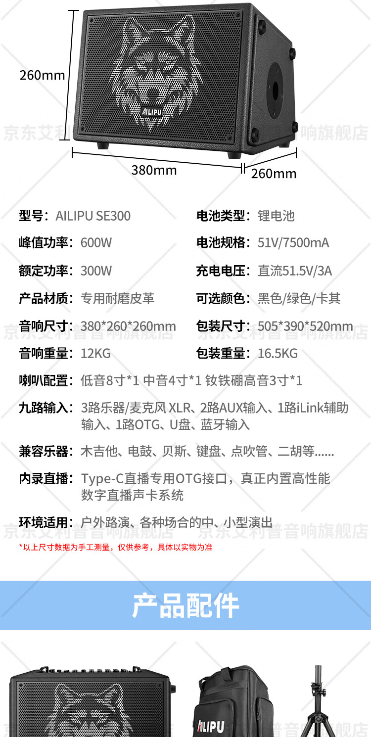 Ellip SE300 audio outdoor karaoke live broadcast internal recording electric blowpipe saxophone guitar singing audio mobile portable high-power Bluetooth stage performance speaker official flagship SE300 forest green + CQA3318 microphone