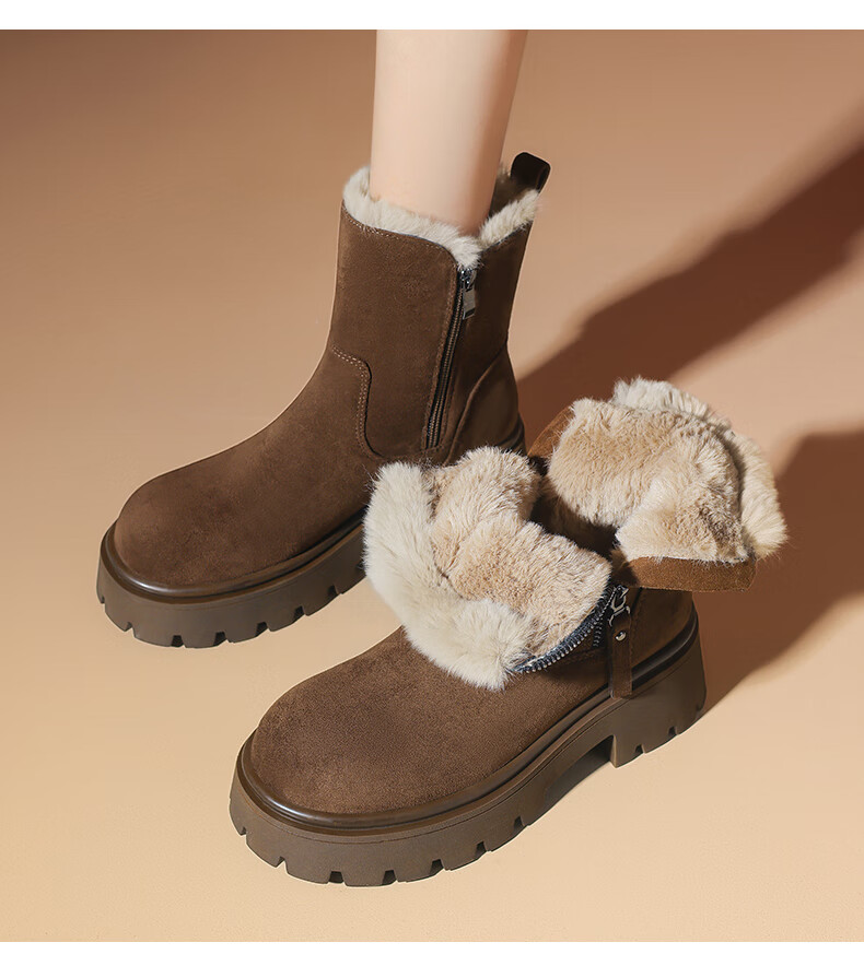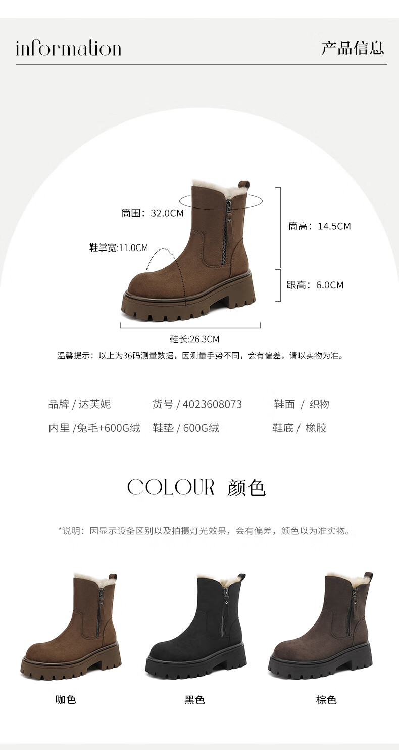 DAPHNE Daphne snow boots women's winter plus velvet thickening Northeast minus 40 degrees outdoor non-slip large cotton shoes 2025 new style coffee color plus velvet 38 (240mm)