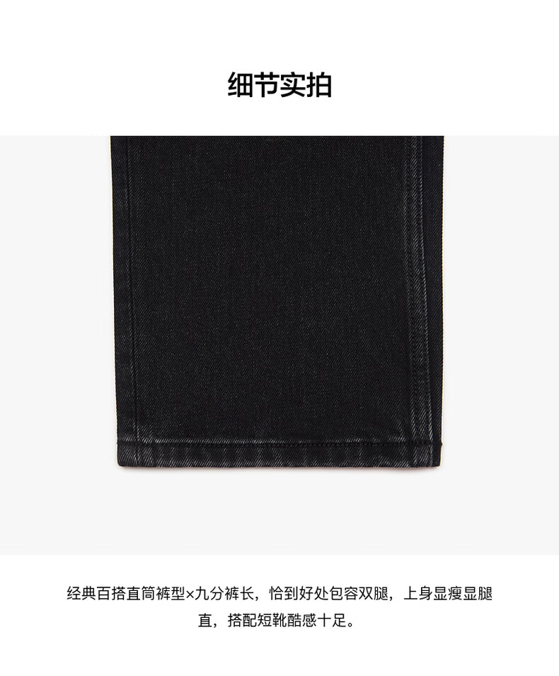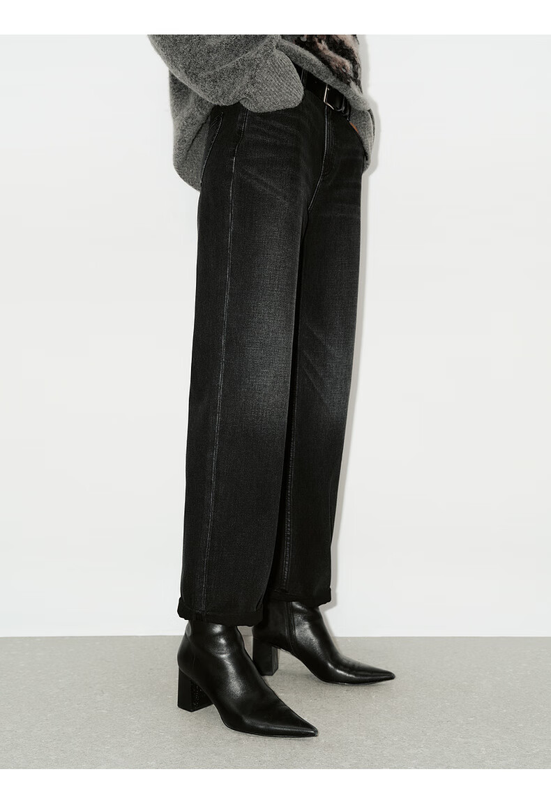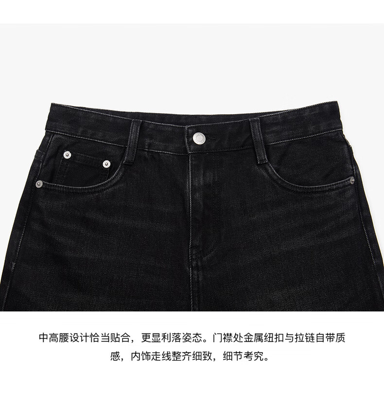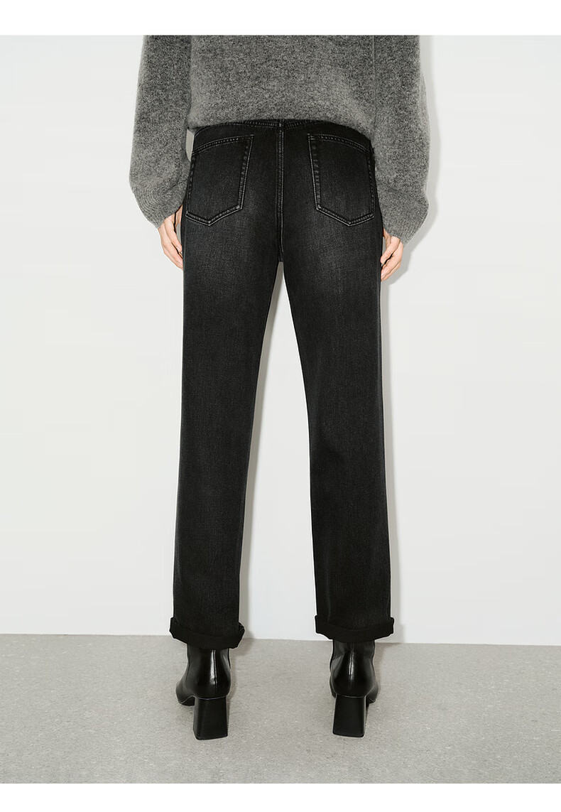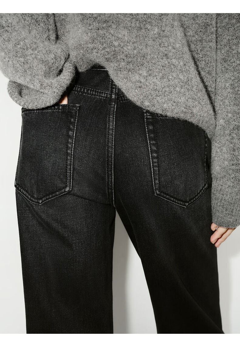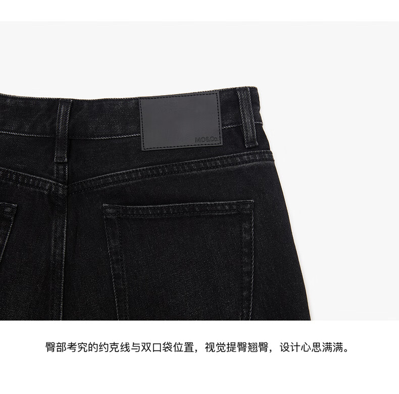 MO&Co. jeans tailored mid-high waist nine-point small straight tapered washed black hand-rubbed Nekosuma Anko denim black L 28