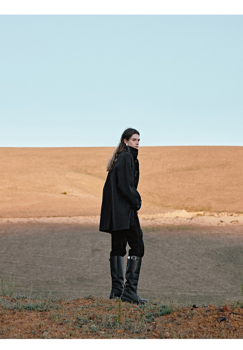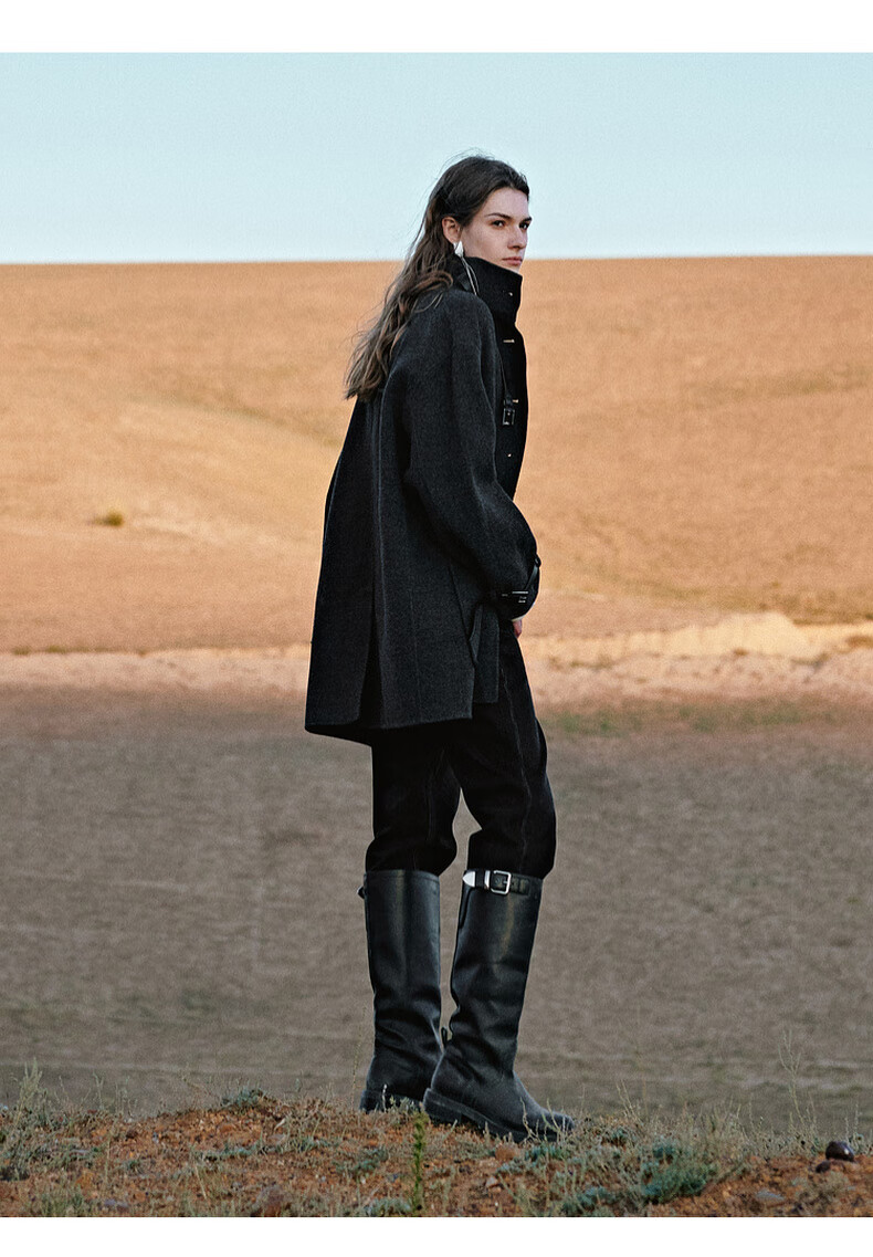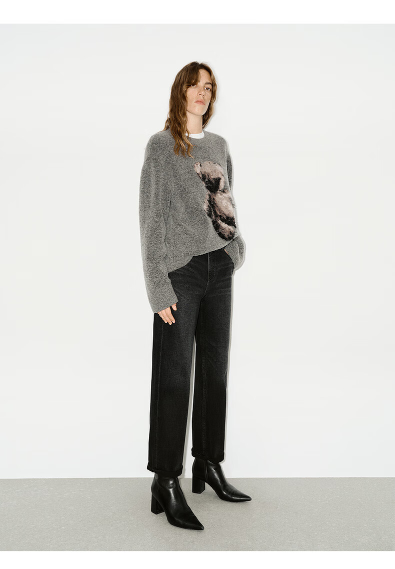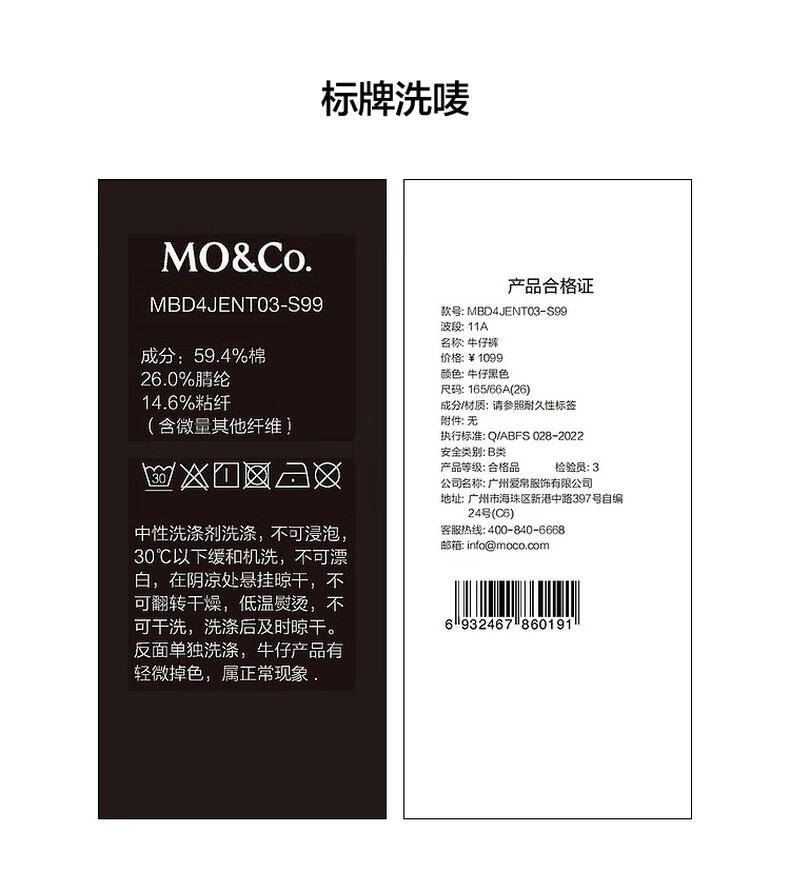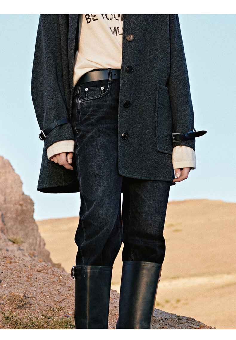 MO&Co. jeans tailored mid-high waist nine-point small straight tapered washed black hand-rubbed Nekosuma Anko denim black L 28