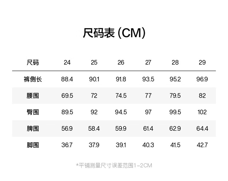 Outseam (cm) 99 cm 101.5 cm 104 cm 106.5 cm 109 cm