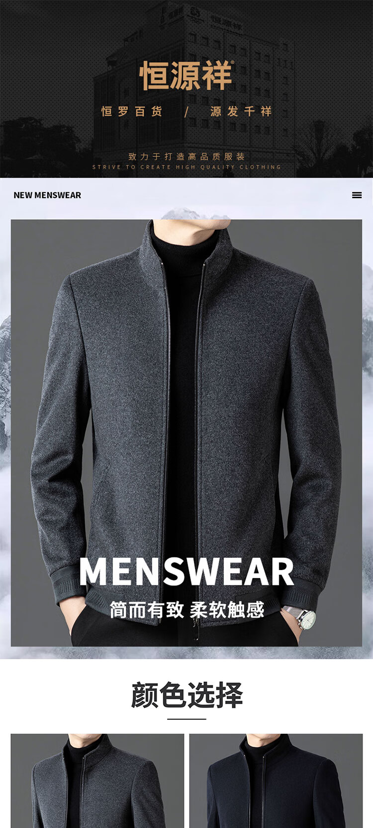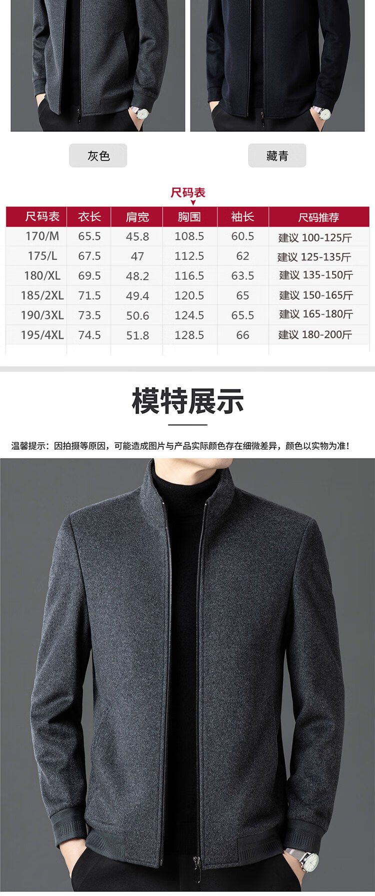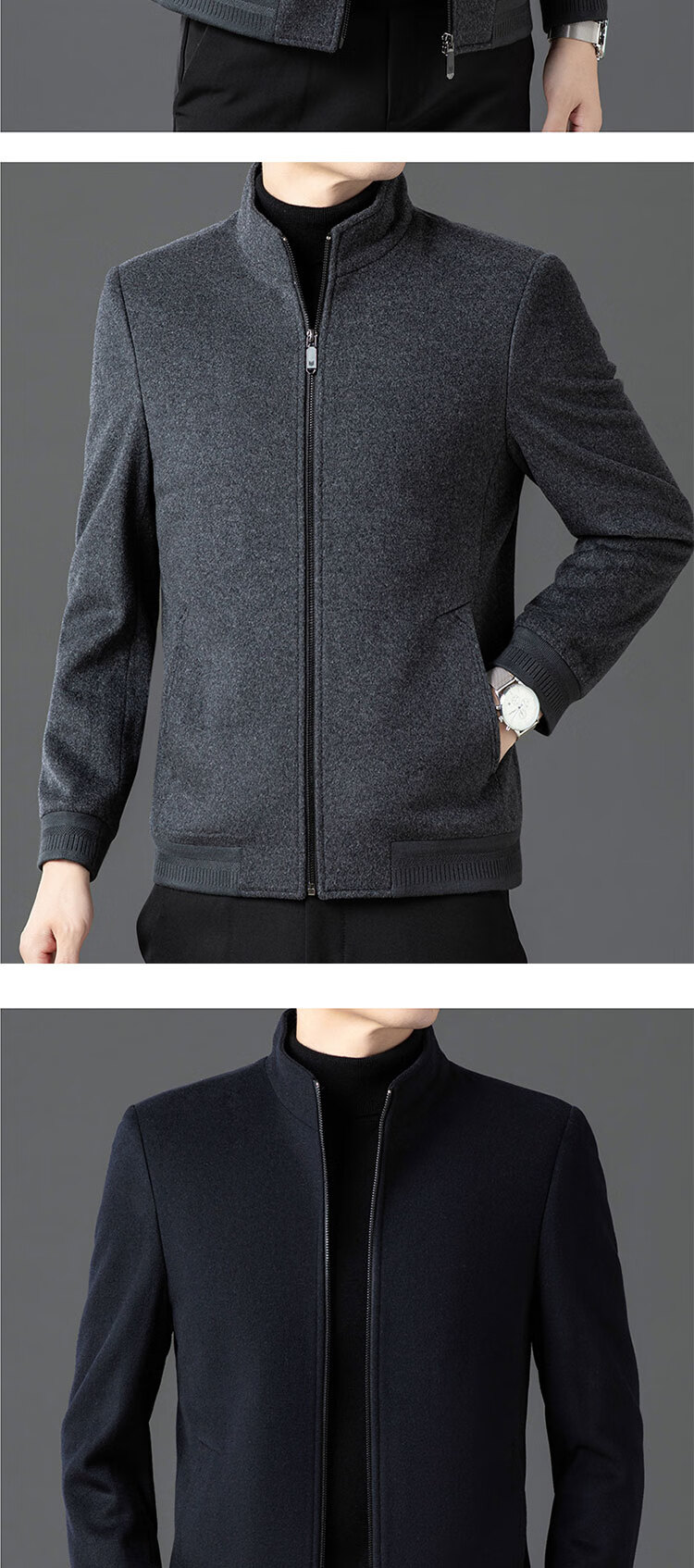 Hengyuanxiang 100% pure wool jacket men's stand-up collar short woolen jacket autumn and winter new daddy wool jacket men's gray (high quality pure wool) 175/L recommended 110-130 Jin Jin equals 0.5 kg