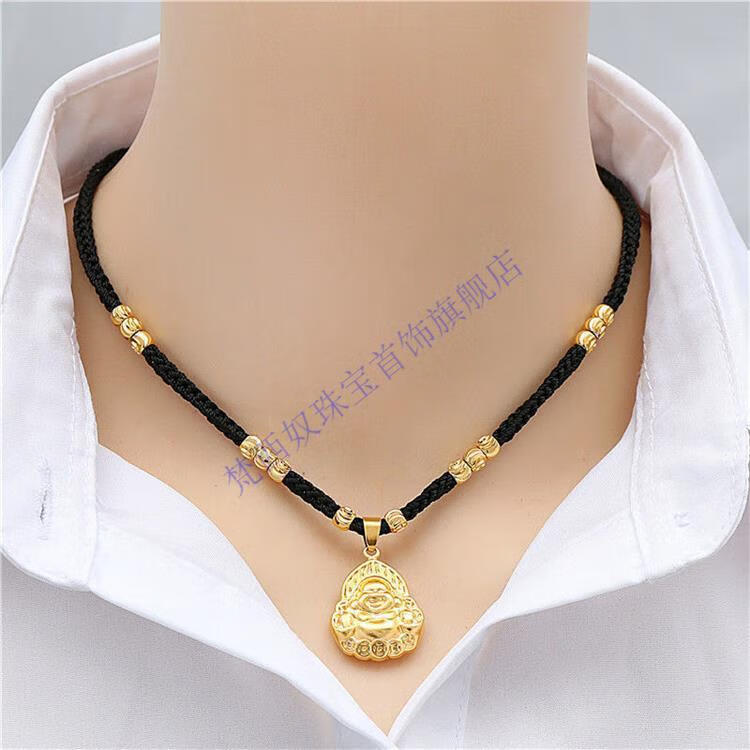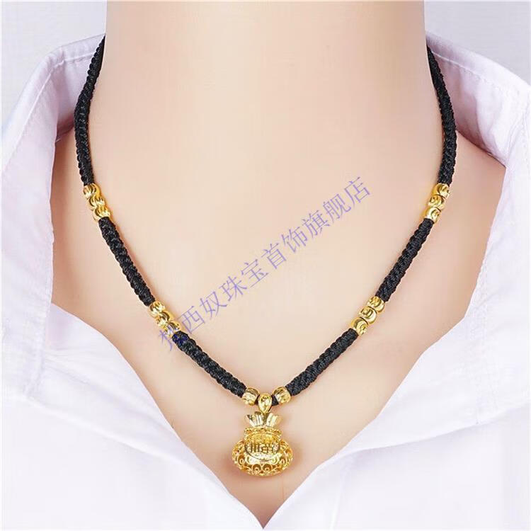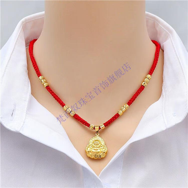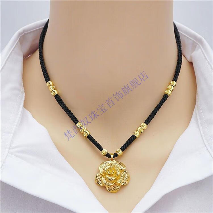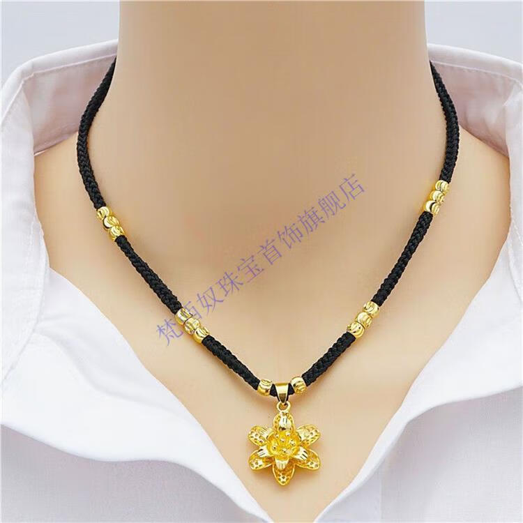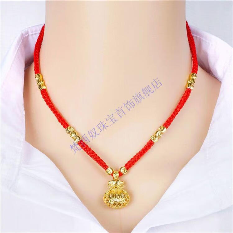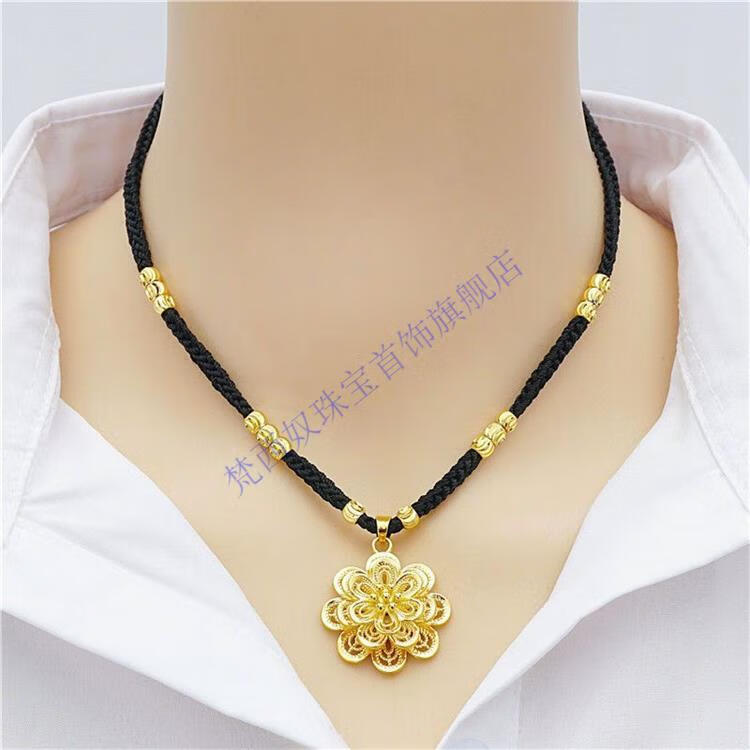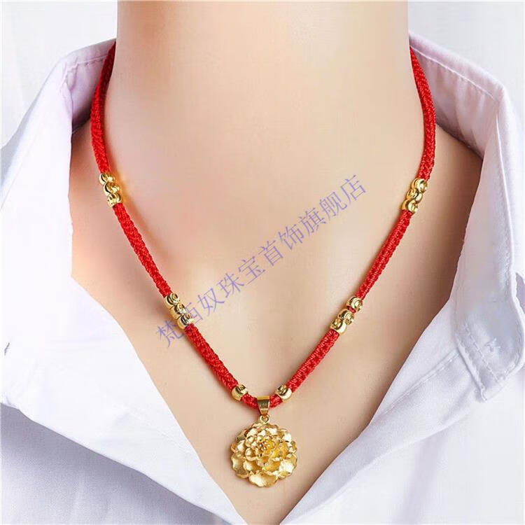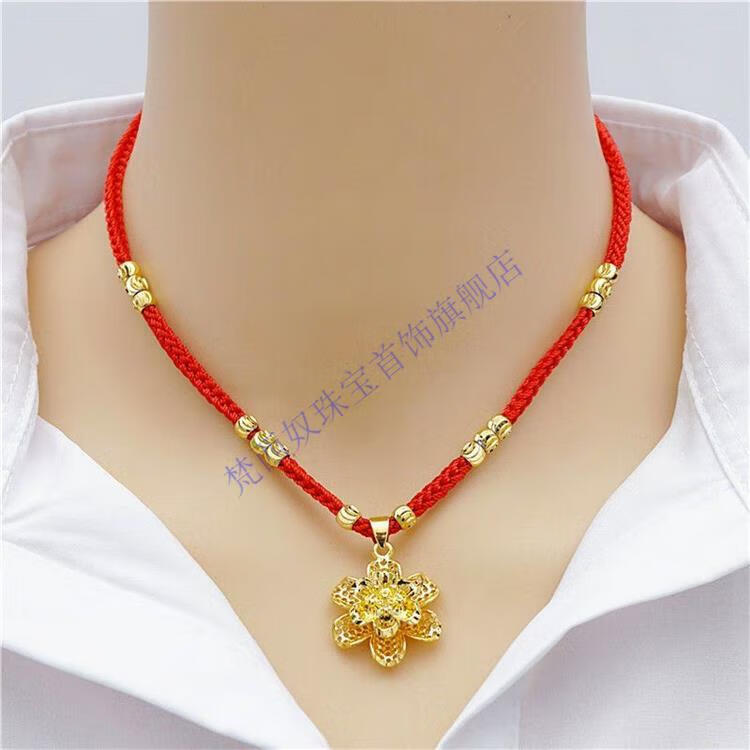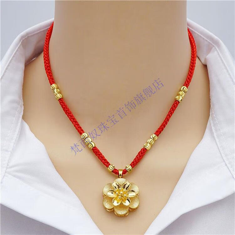 Vansinu Vietnamese sand gold hand-woven necklace women's jewelry bag 18K gold pendant couple pendant versatile six-petal plum blossom red rope