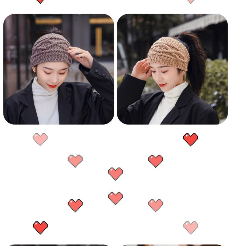 Lan Manya's zodiac year woolen warm headband for women winter wide-brimmed forehead scarf to cover white hair hat knitted headband hood khaki