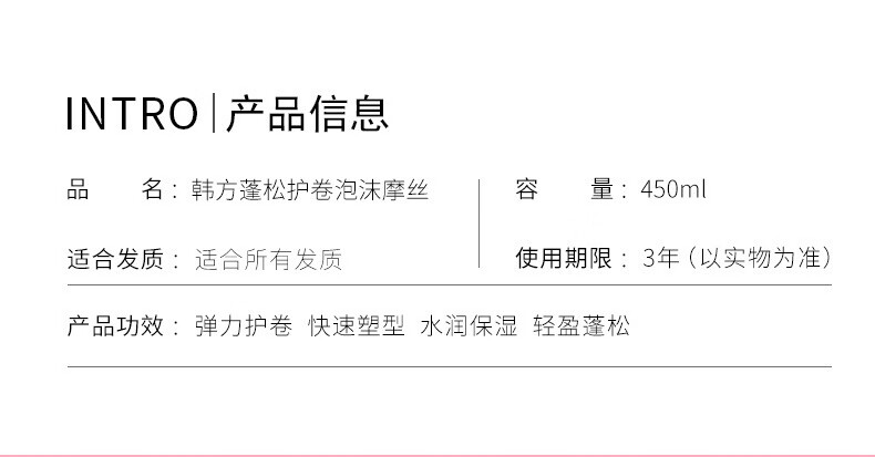 Korean herbal grain foam hair wax for curly hair, moisturizing and styling, fluffy mousse, elastin, wool curl foam hair wax, 1 bottle, early adopter experience, total 450ml