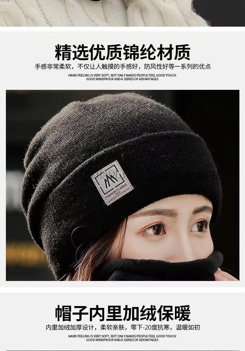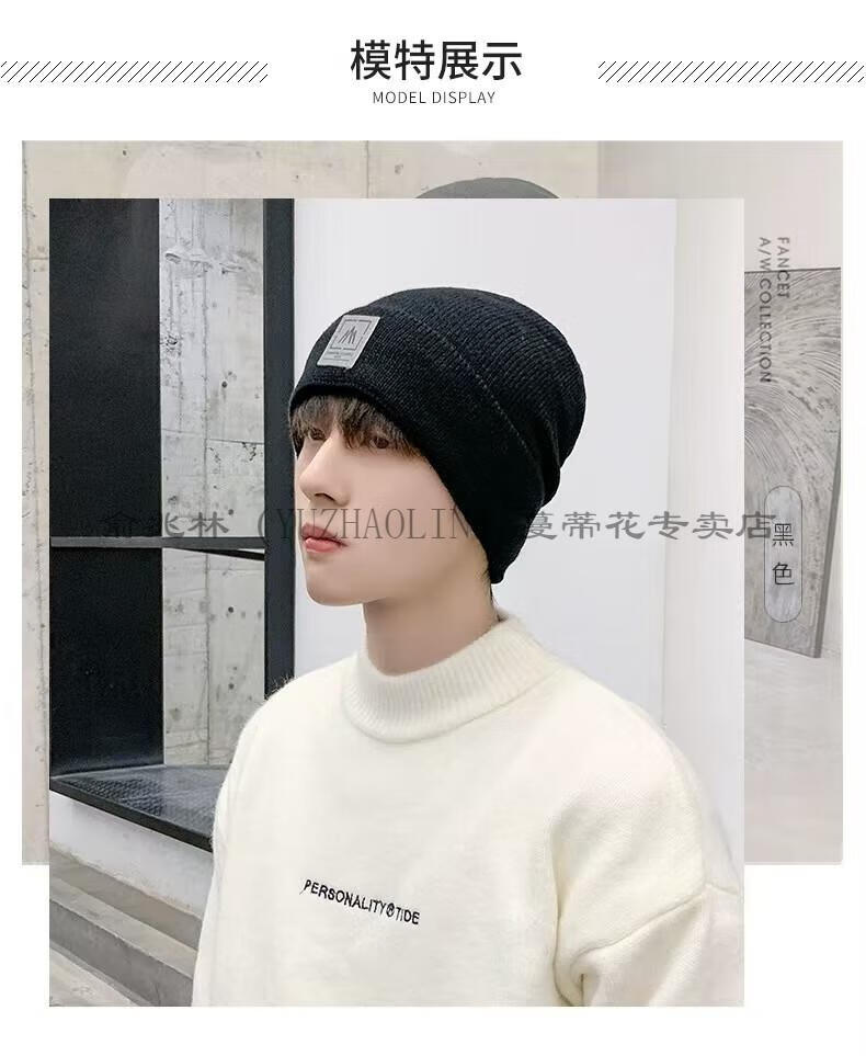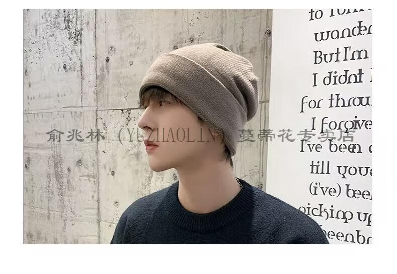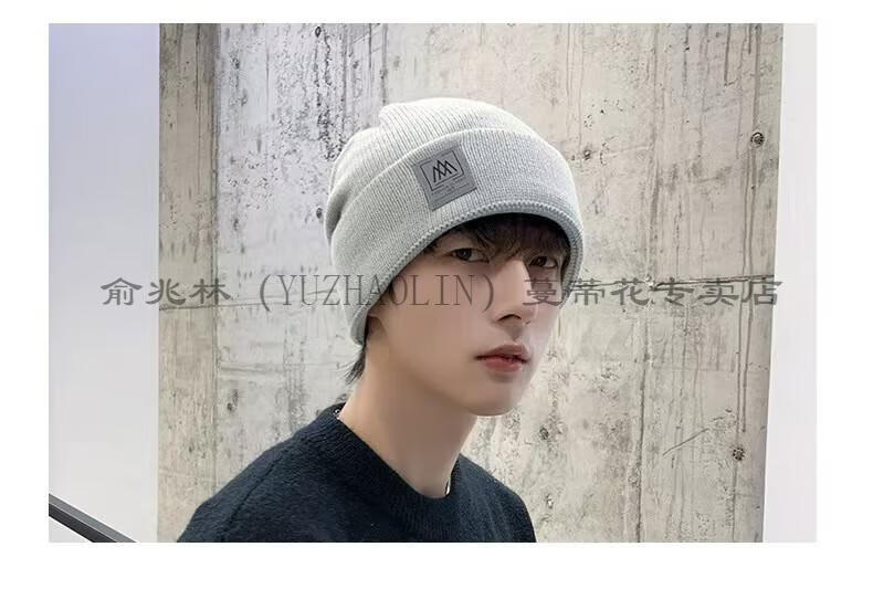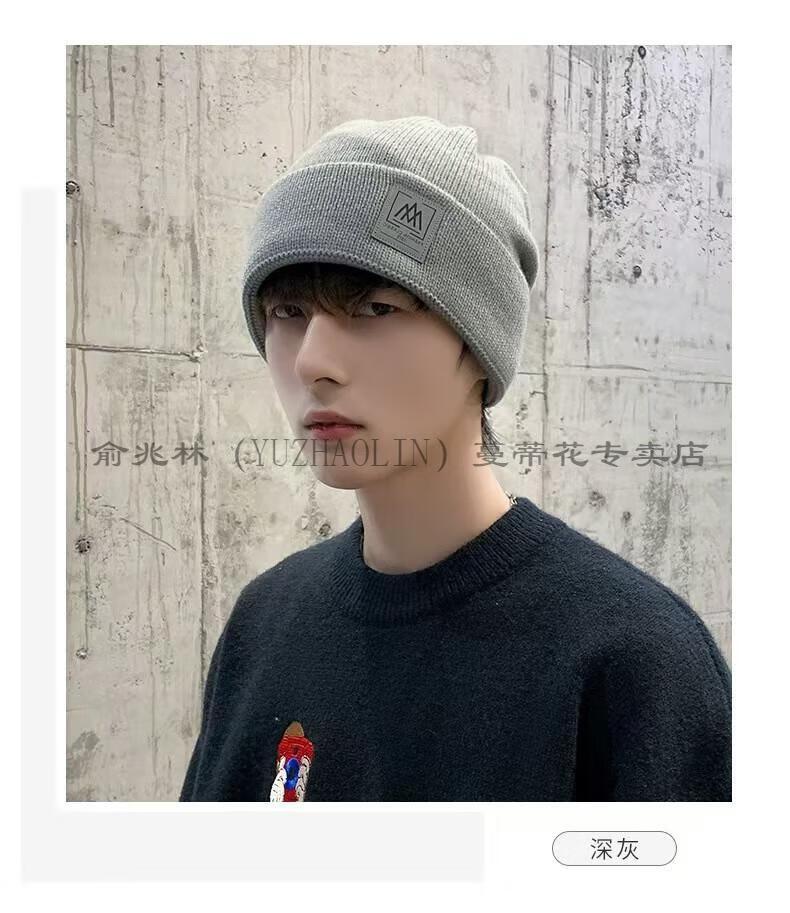 Yu Zhaolin men's hat plus velvet knitted hat autumn and winter warm woolen hat unisex versatile thickened velvet comfortable woolen hat knitted headband black one size