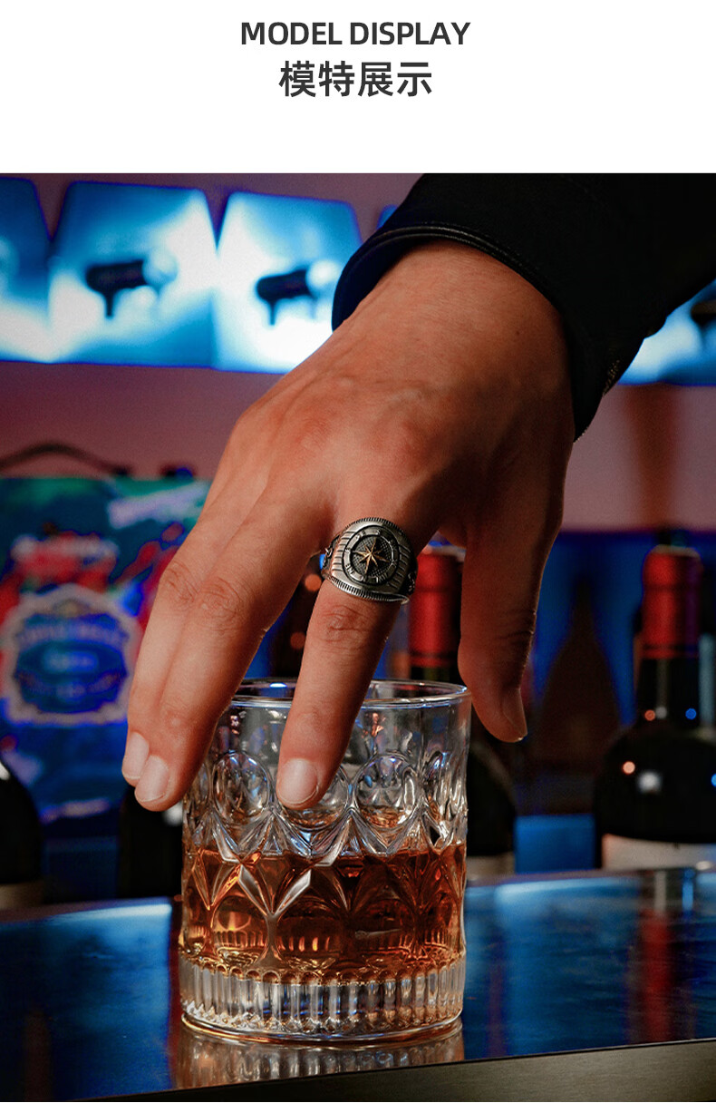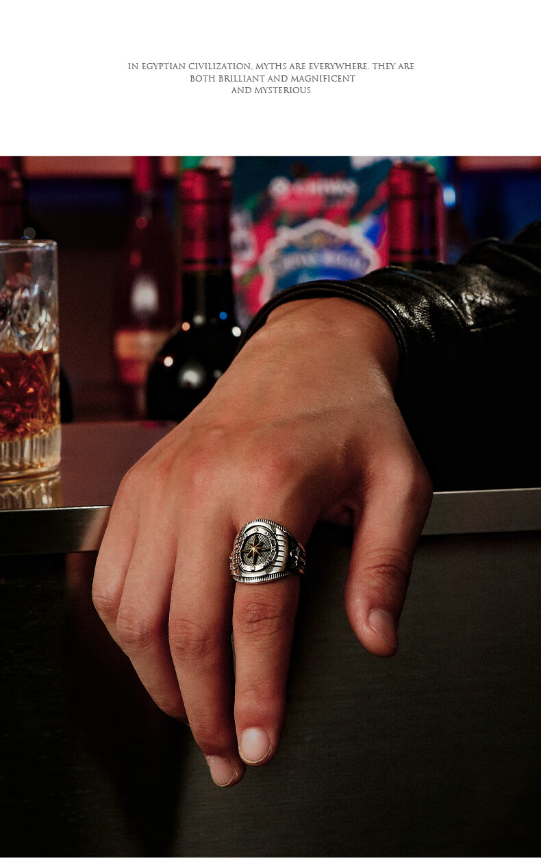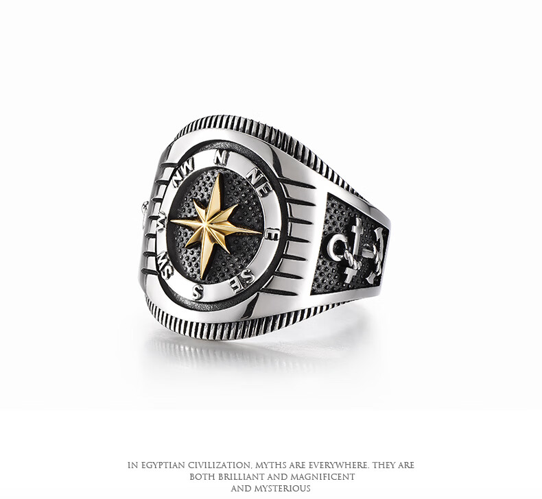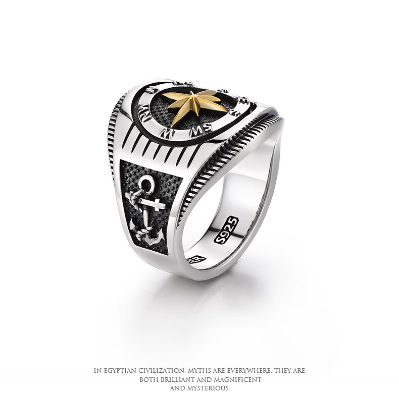 IDEAGEMER original design 925 silver compass ring for men, trendy retro ring, domineering single men's personalized retro ring, other numbers can be ordered for customization - 20 days for pre-sale