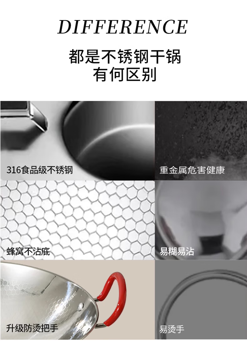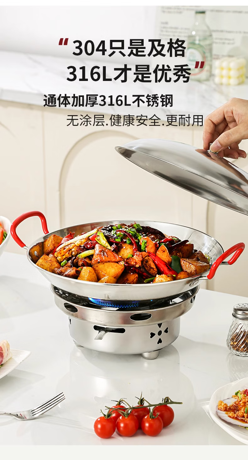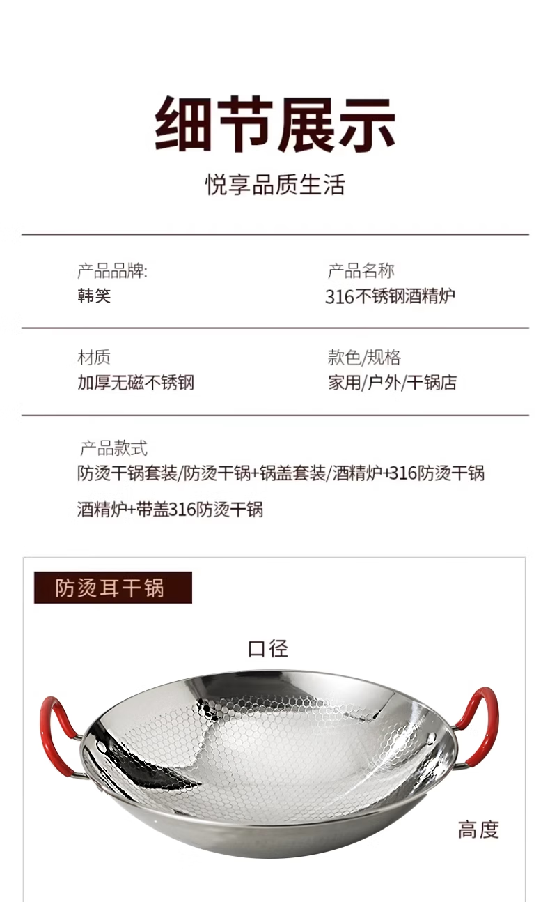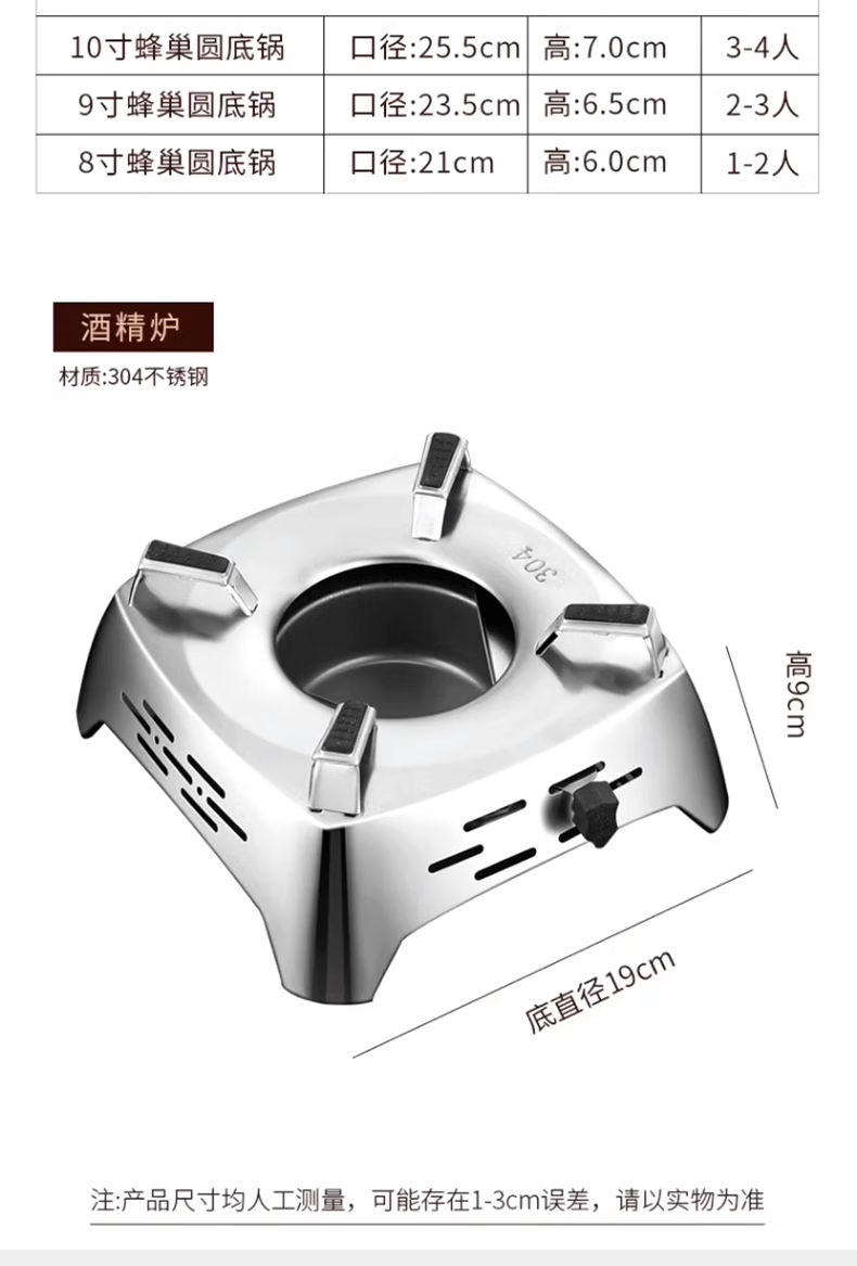 Hanxiao food grade 316 stainless steel griddle pot and cookware, household outdoor solid alcohol stove, small hot pot special pot stove, 316 honeycomb griddle pot (without lid) 10 inches 26cm