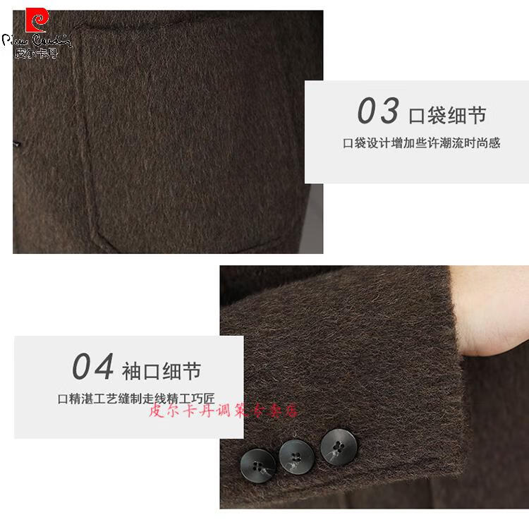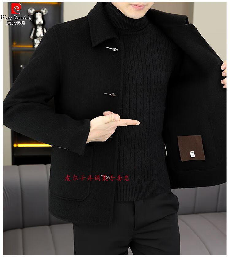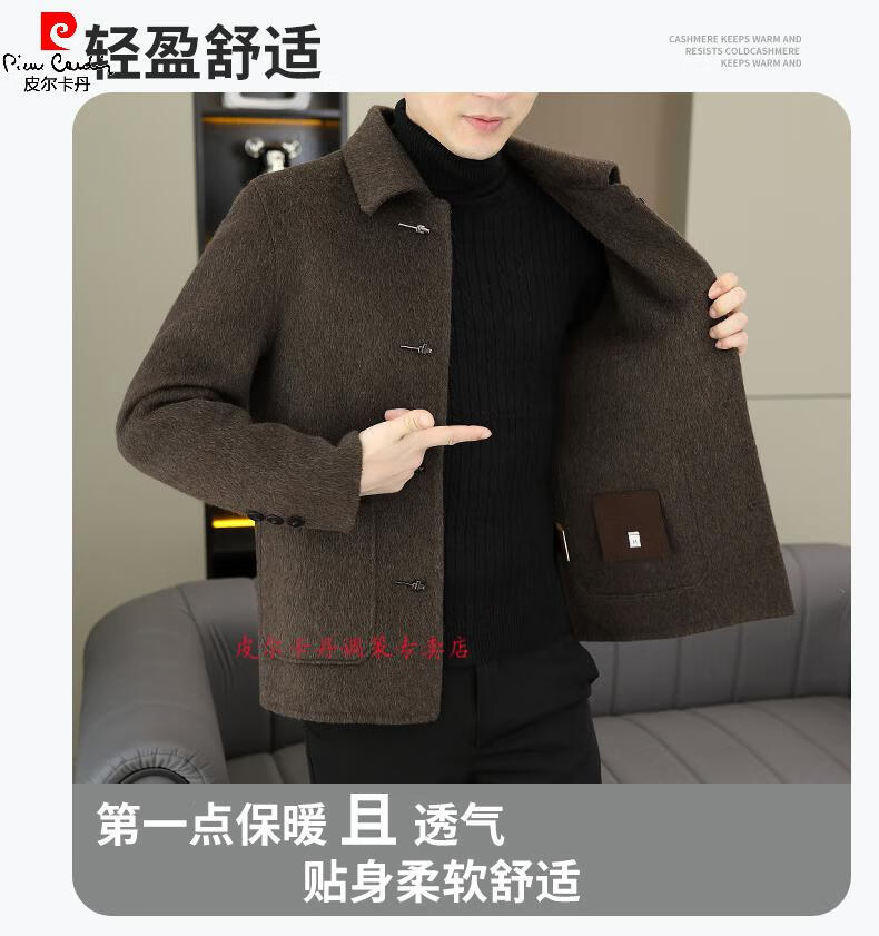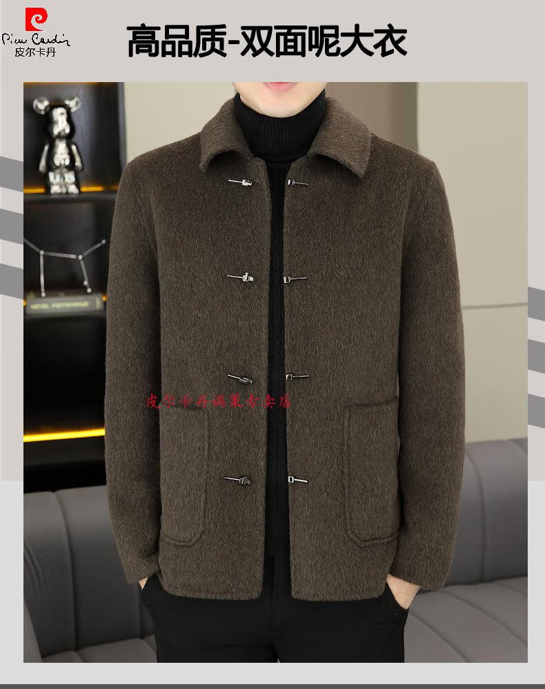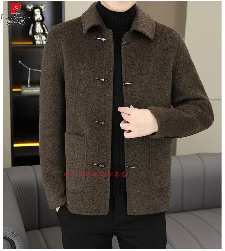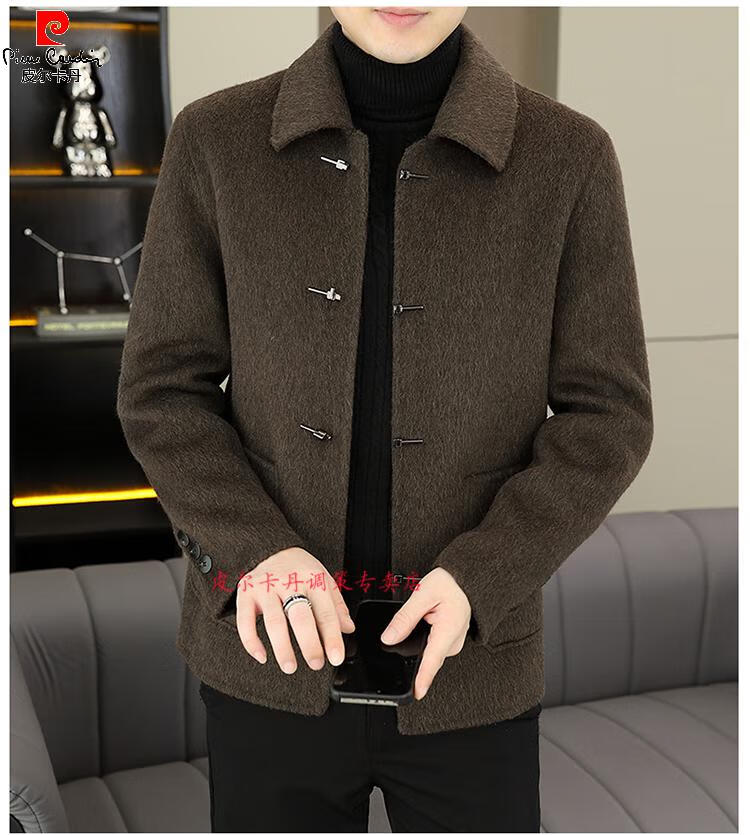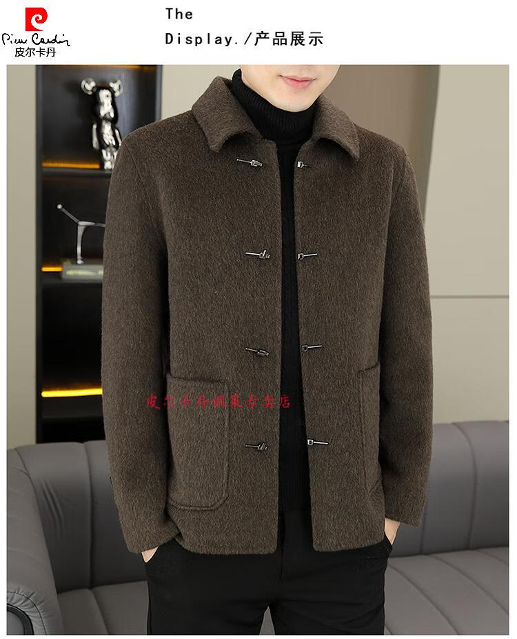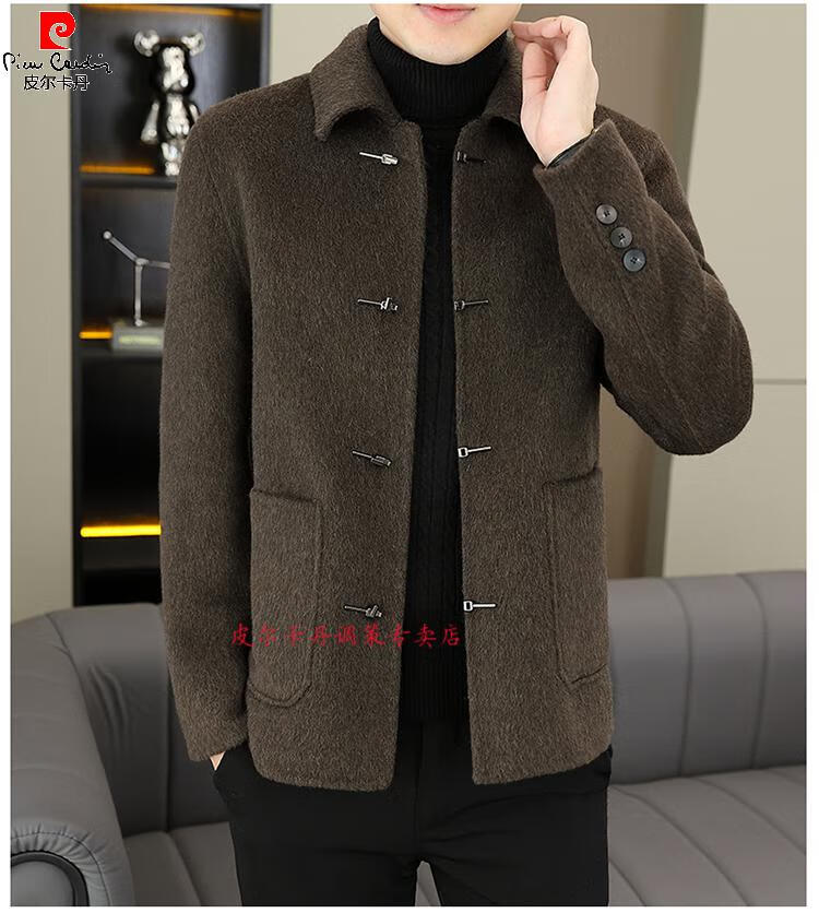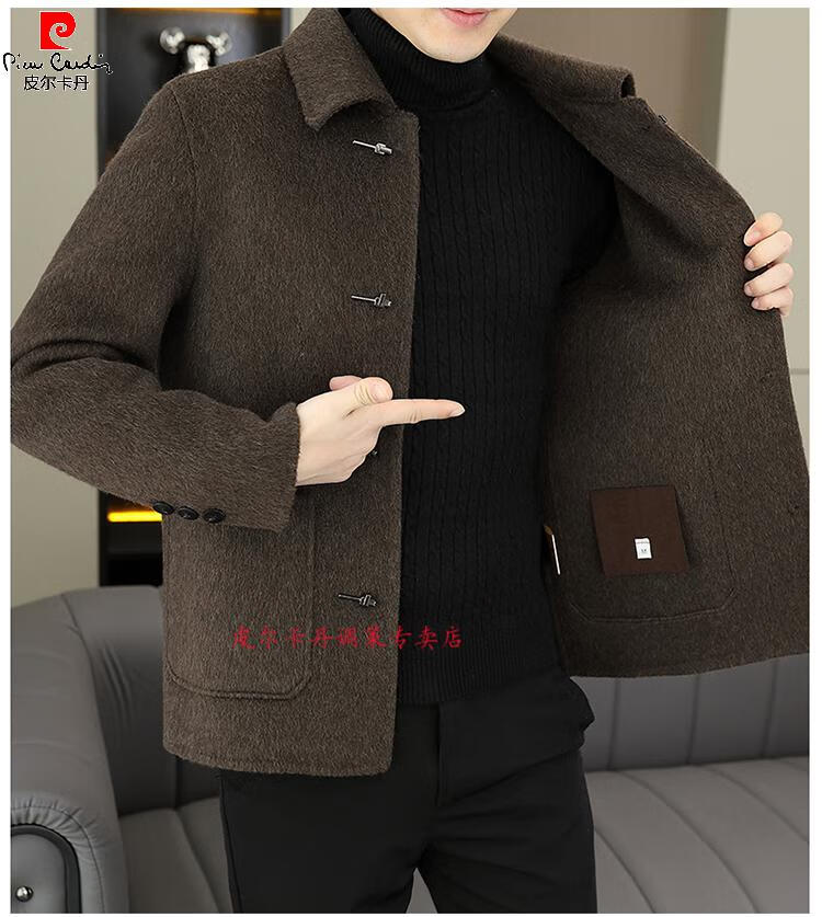 Pierre Cardin spring and autumn double-sided woolen coat men's short Korean style woolen jacket brand short woolen coat brown XL 125-140Jin Jin equals 0.5 kg