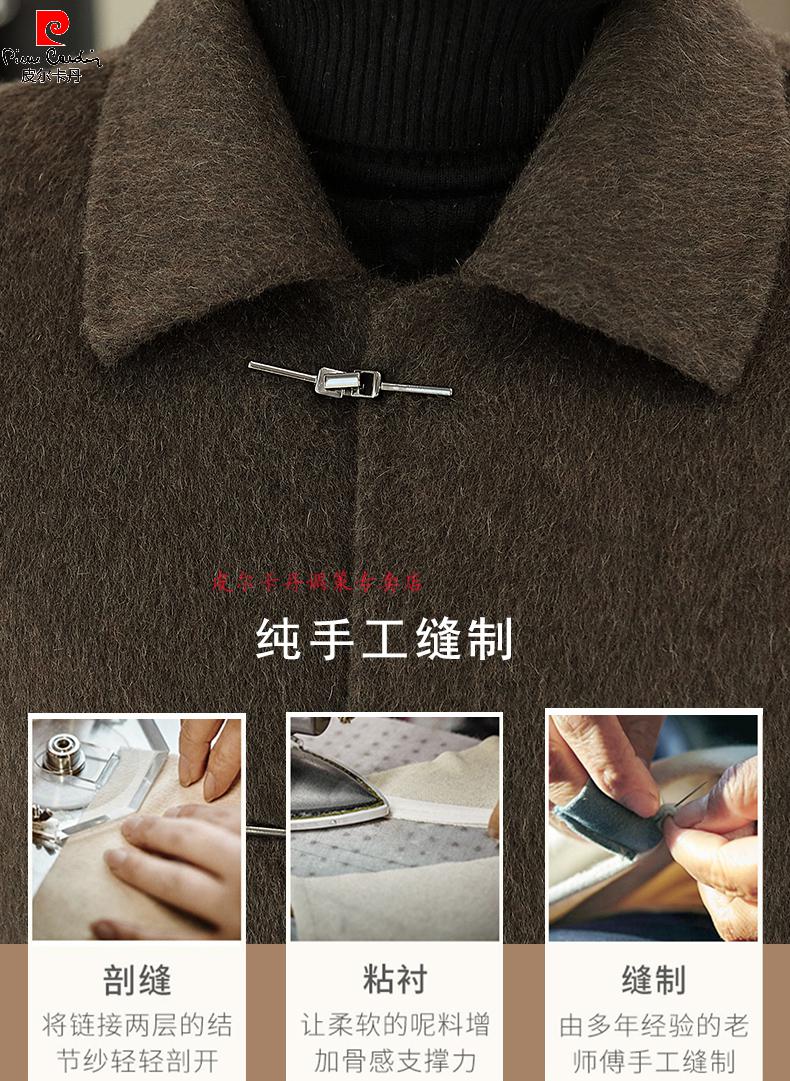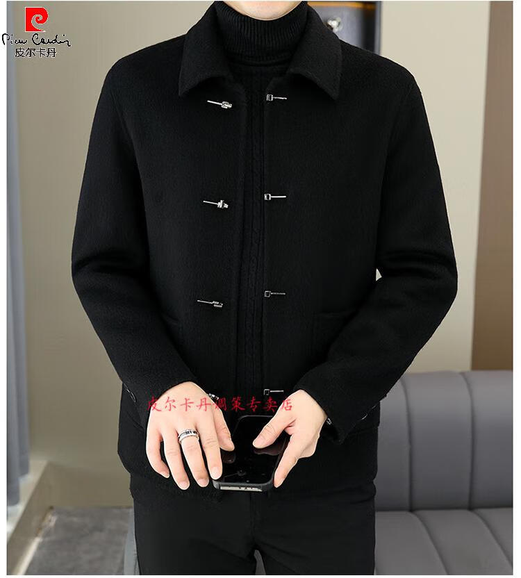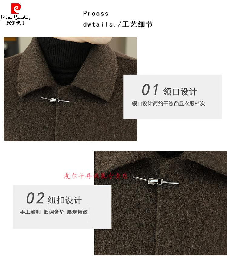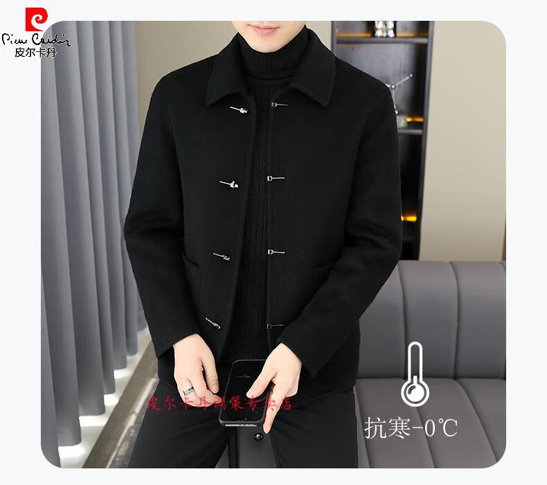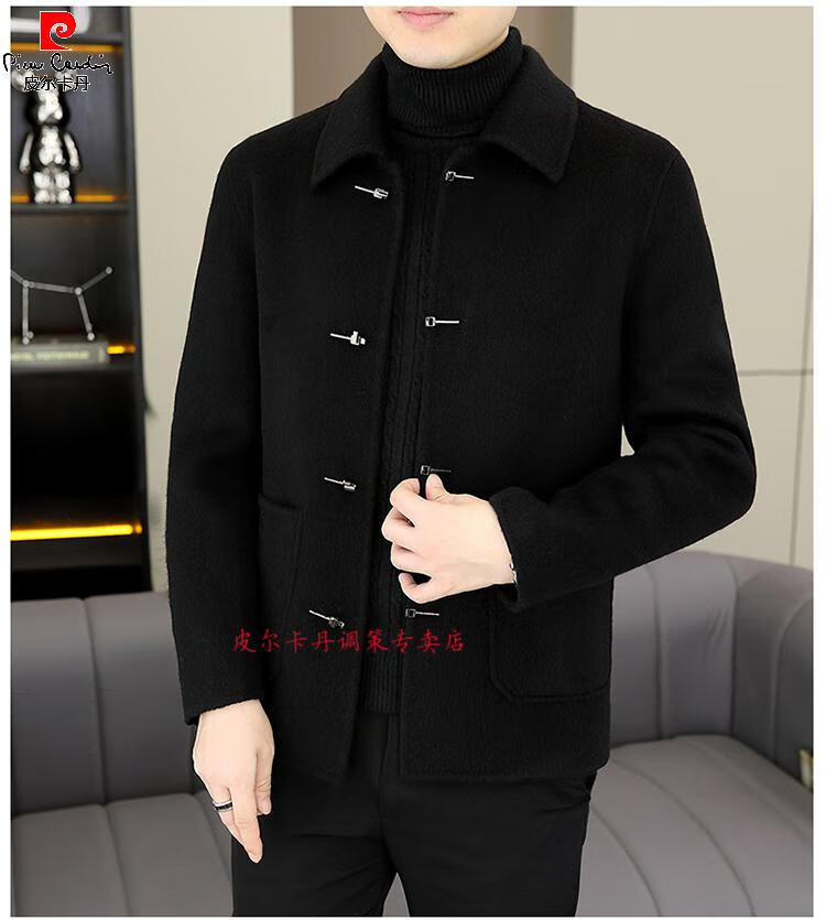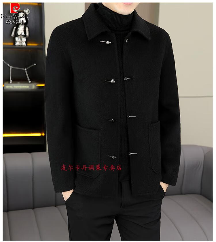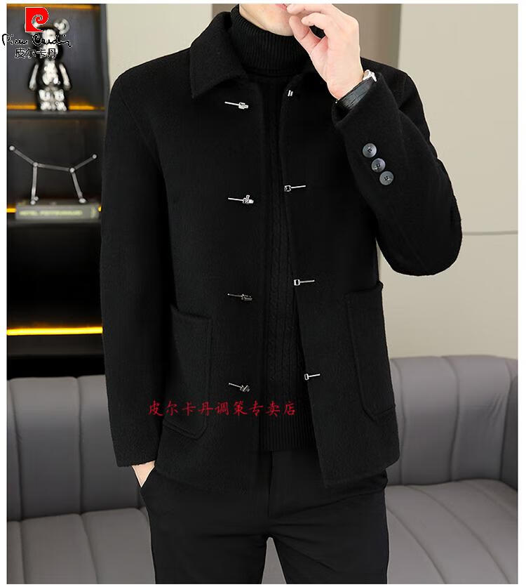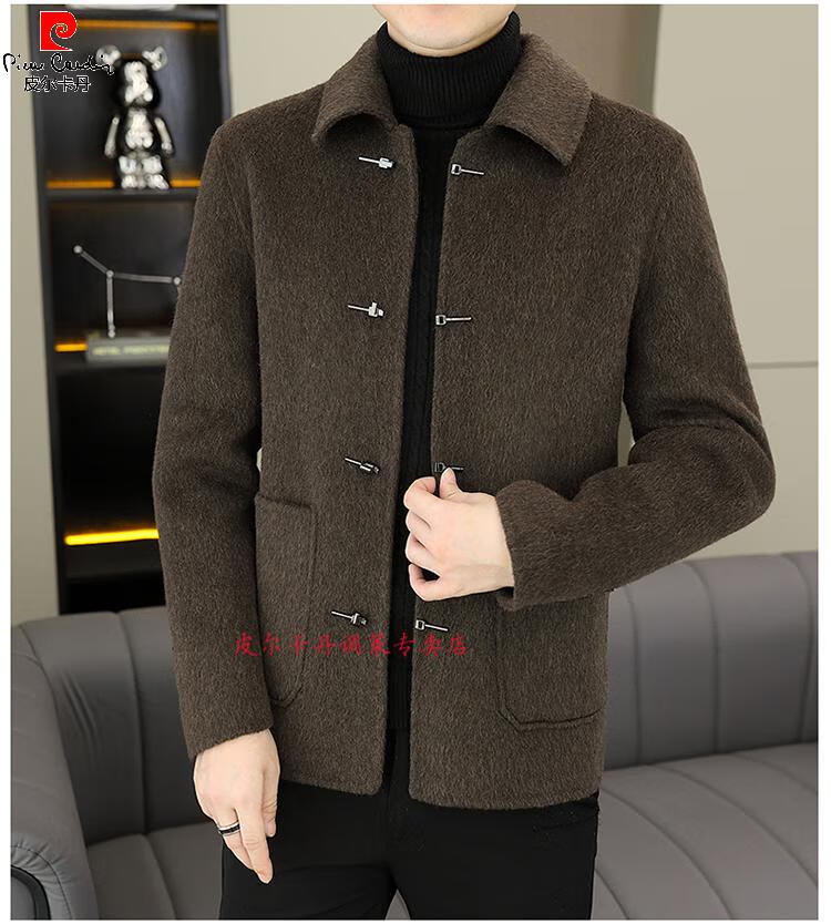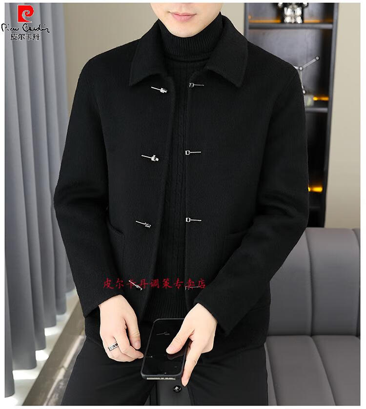 Pierre Cardin spring and autumn double-sided woolen coat men's short Korean style woolen jacket brand short woolen coat brown XL 125-140Jin Jin equals 0.5 kg