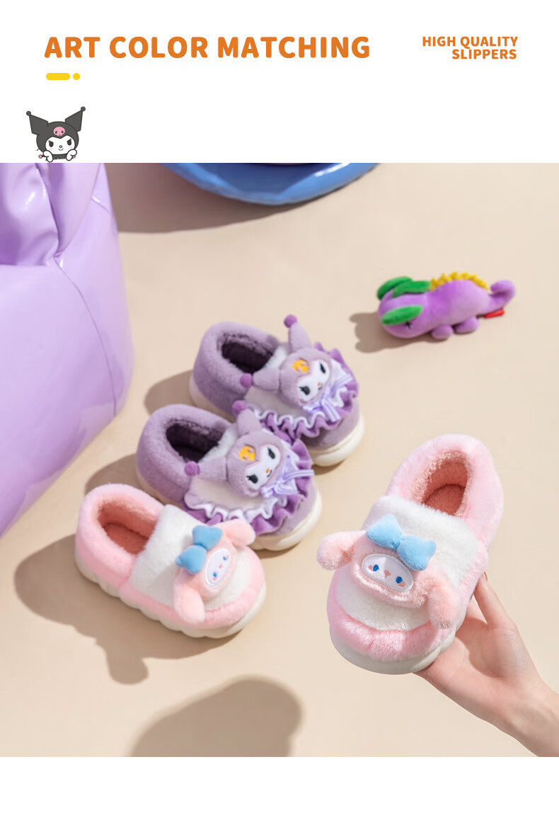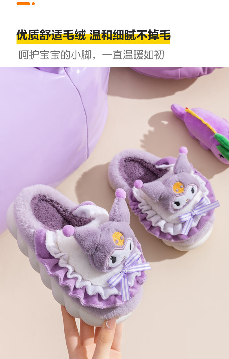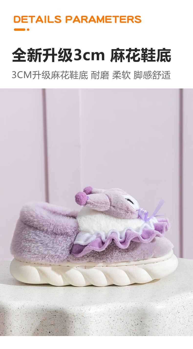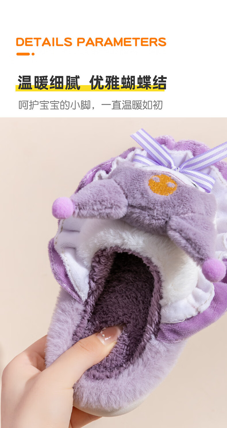 SKONWAT children's cotton slippers for girls and princesses in autumn and winter, cute, warm and non-slip, indoor children's parent-child furry cotton shoes with heel, purple (Culomi) cotton shoes, size 28-29, inner length 18.5cm, about 5-5.5 years old