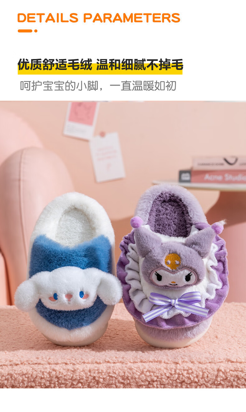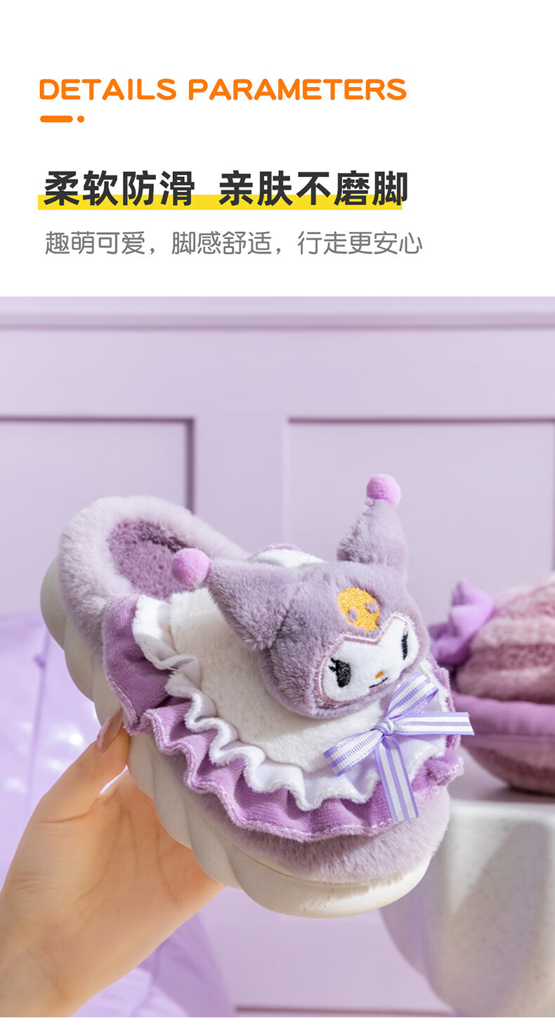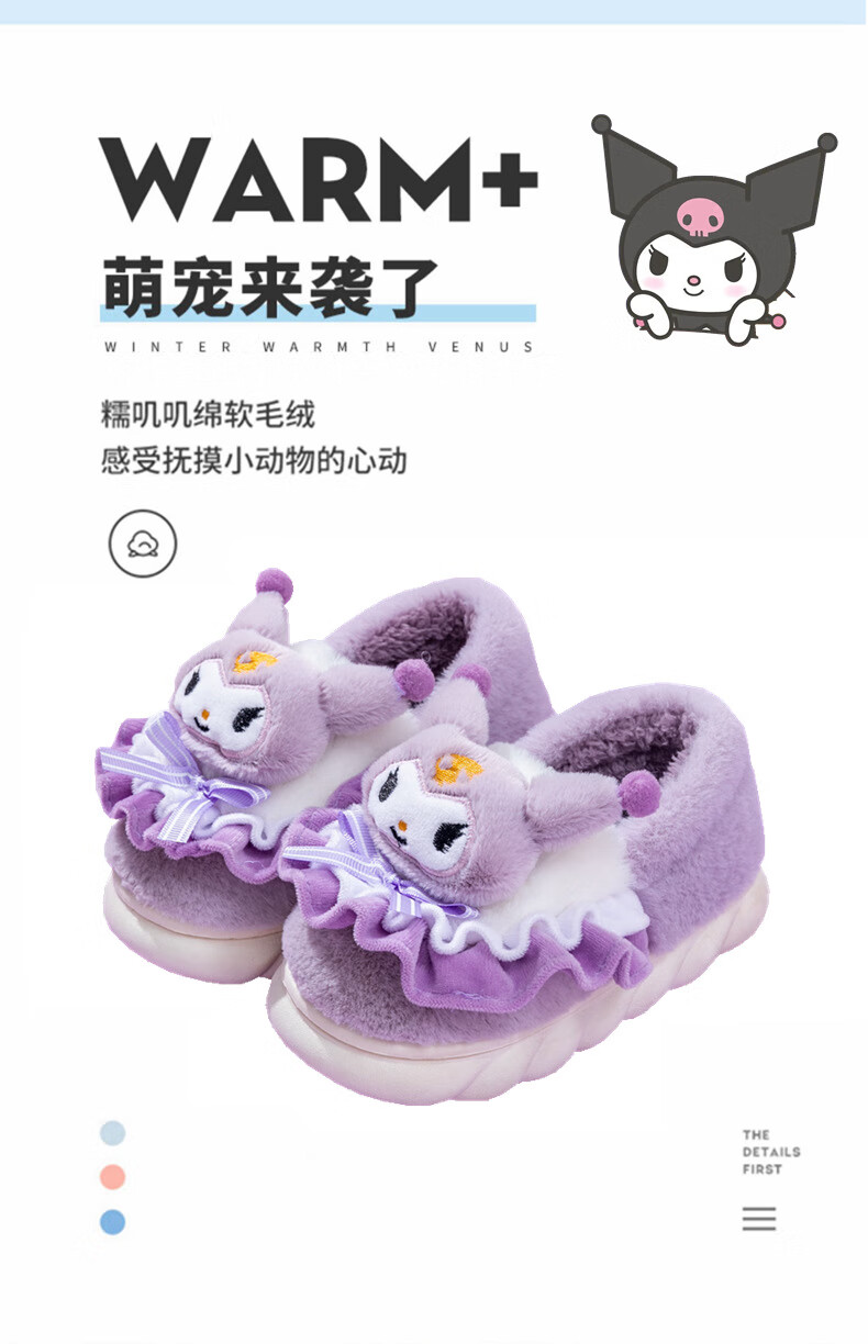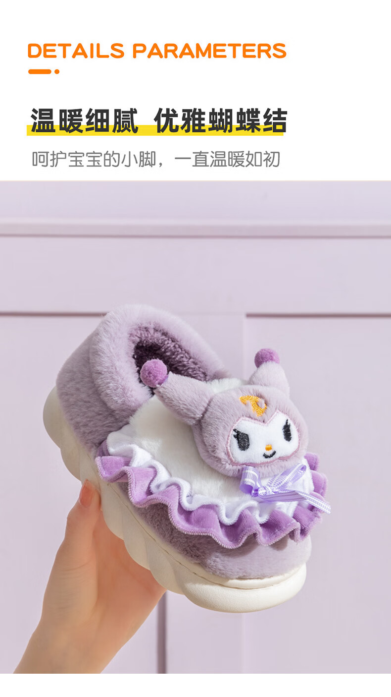SKONWAT children's cotton slippers for girls and princesses in autumn and winter, cute, warm and non-slip, indoor children's parent-child furry cotton shoes with heel, purple (Culomi) cotton shoes, size 28-29, inner length 18.5cm, about 5-5.5 years old