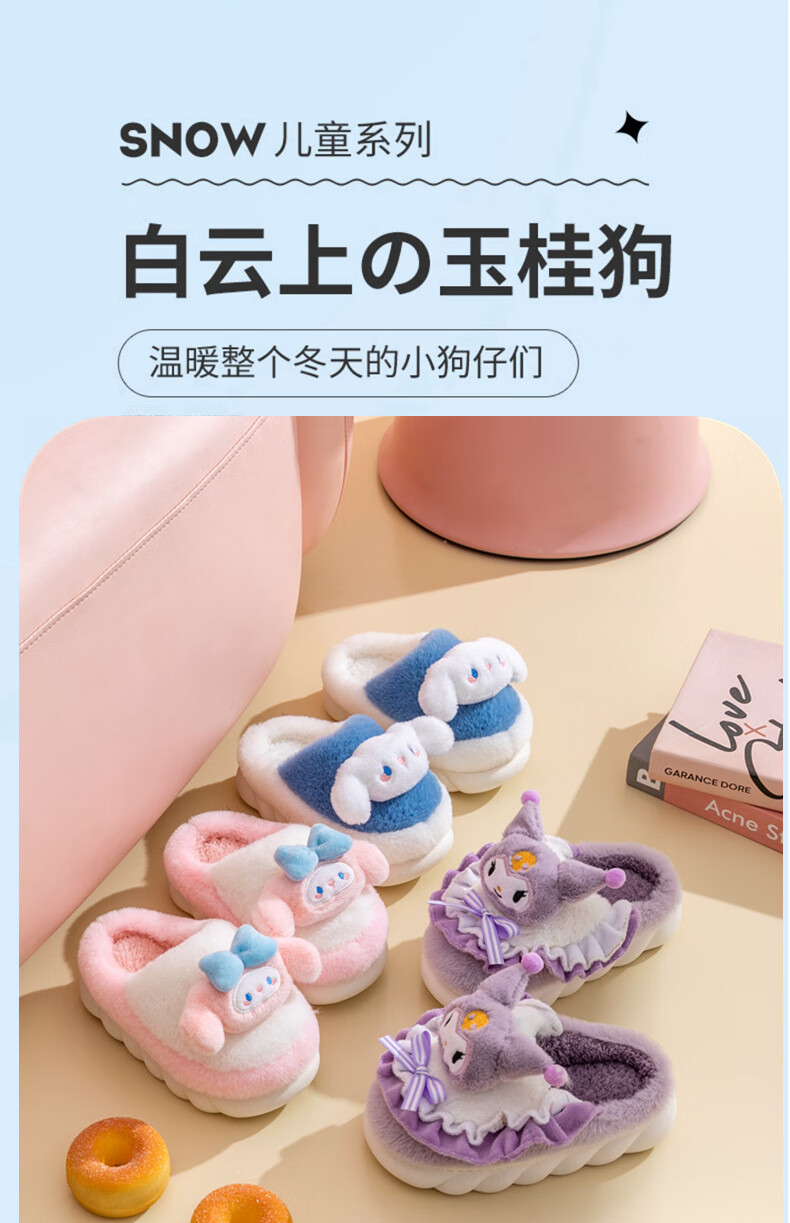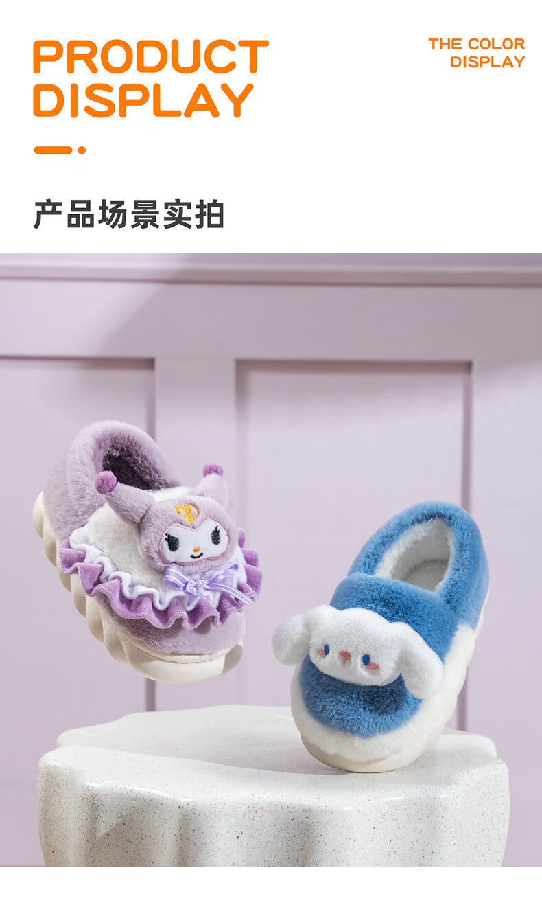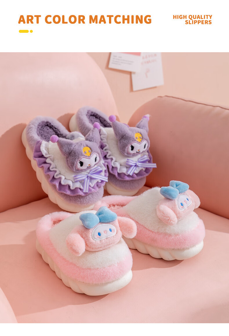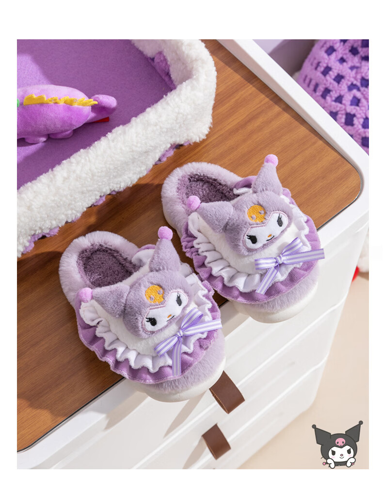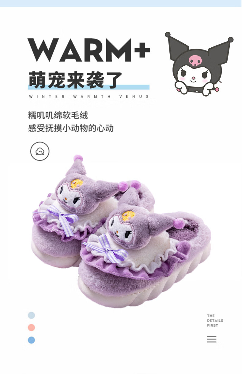 SKONWAT children's cotton slippers for girls and princesses in autumn and winter, cute, warm and non-slip, indoor children's parent-child furry cotton shoes with heel, purple (Culomi) cotton shoes, size 28-29, inner length 18.5cm, about 5-5.5 years old