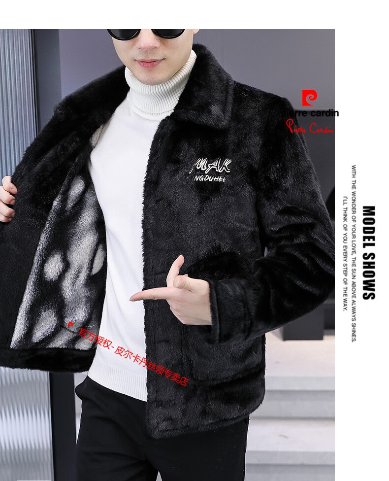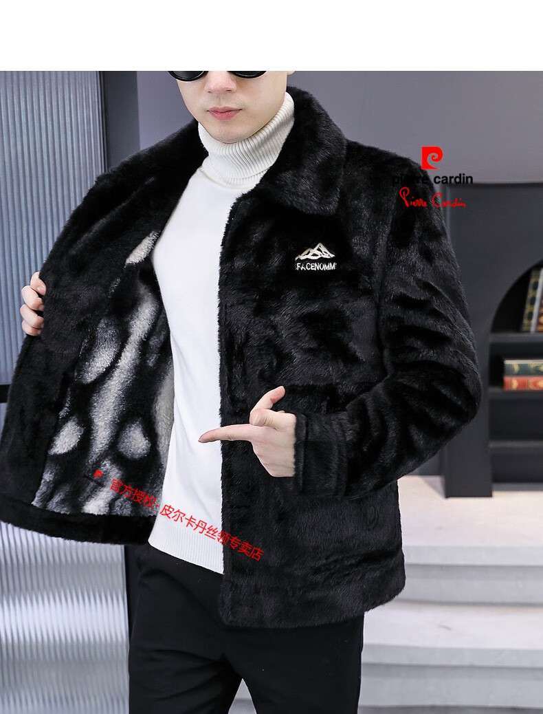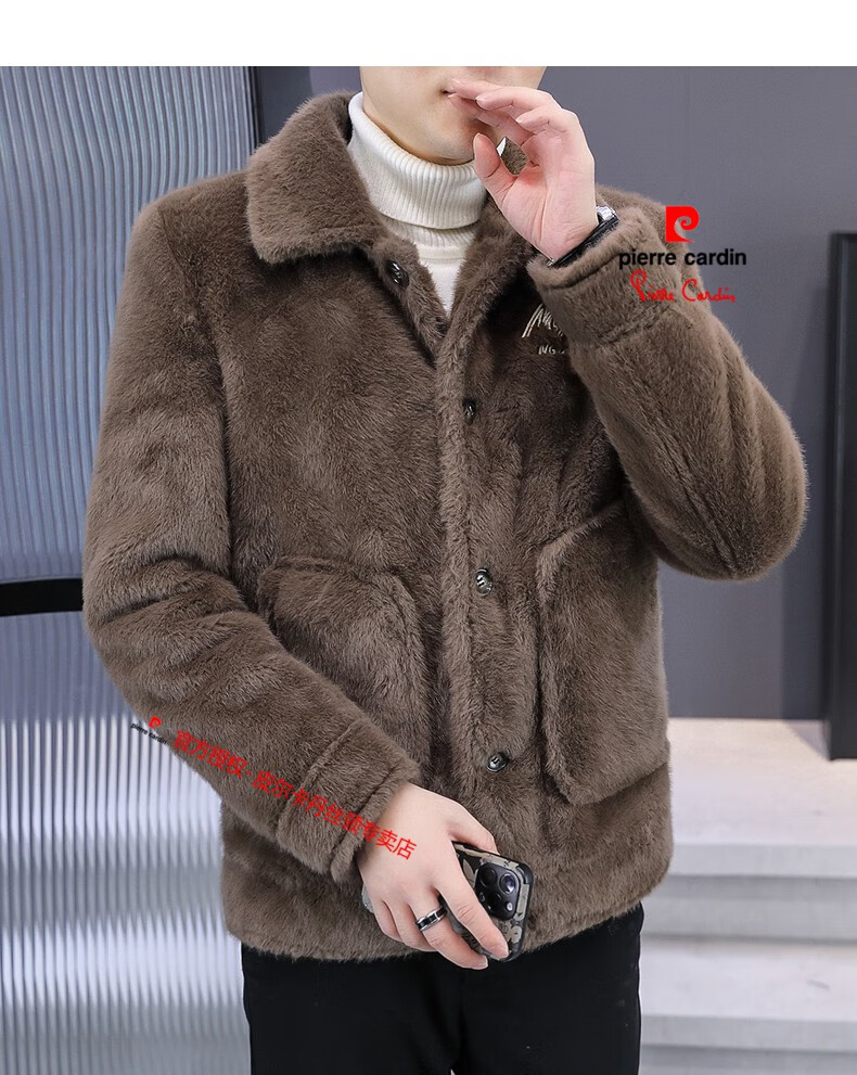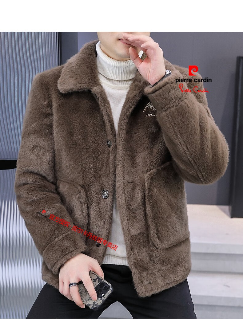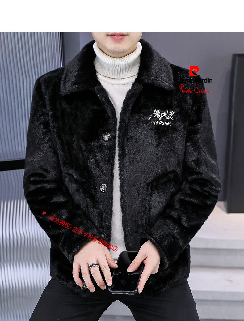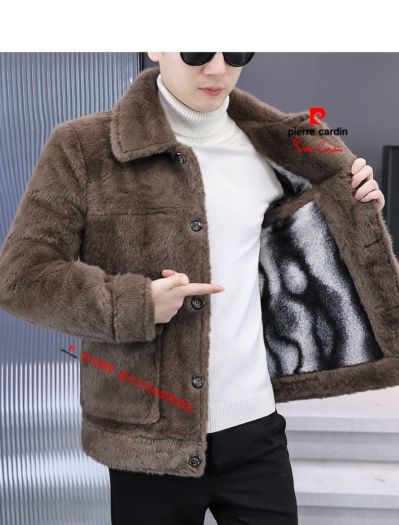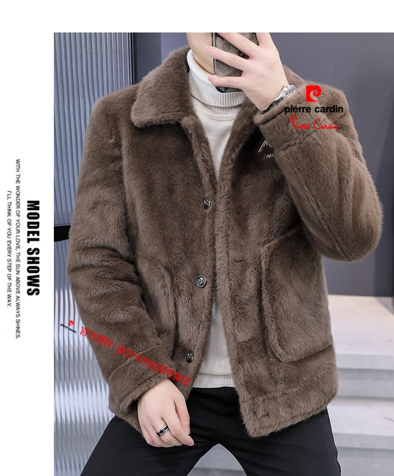 Pierre Cardin Autumn and Winter Men's Mink Short Jacket Plus Velvet Thickened Warm Lapel Mink Jacket 612 Brown 3XL