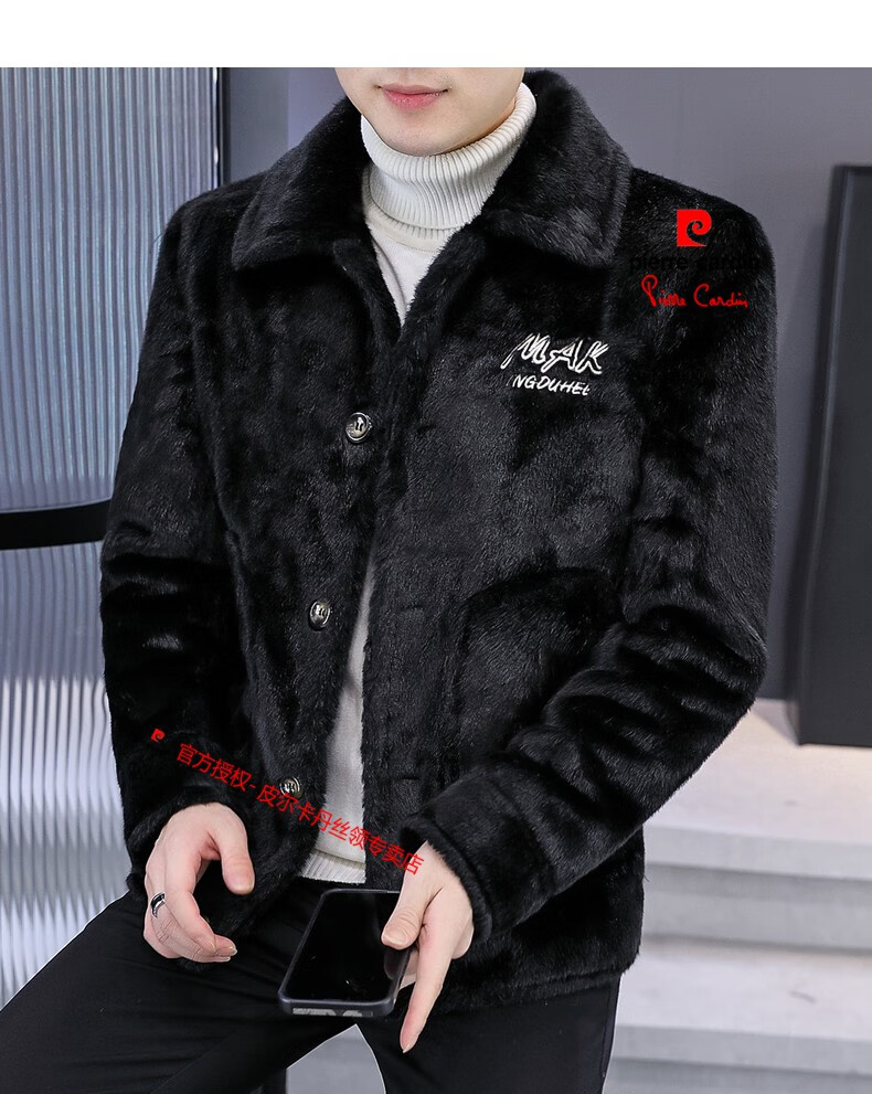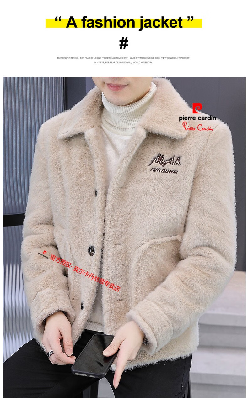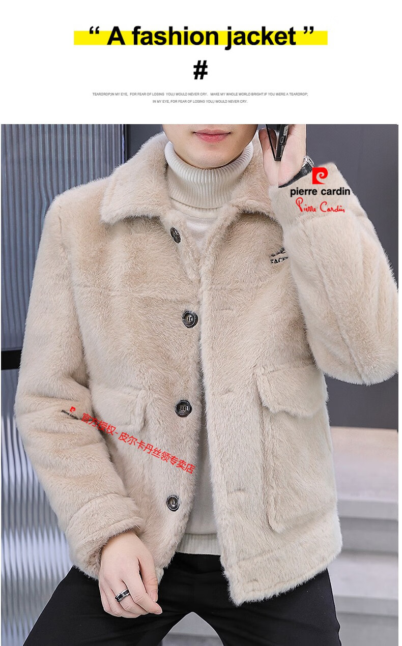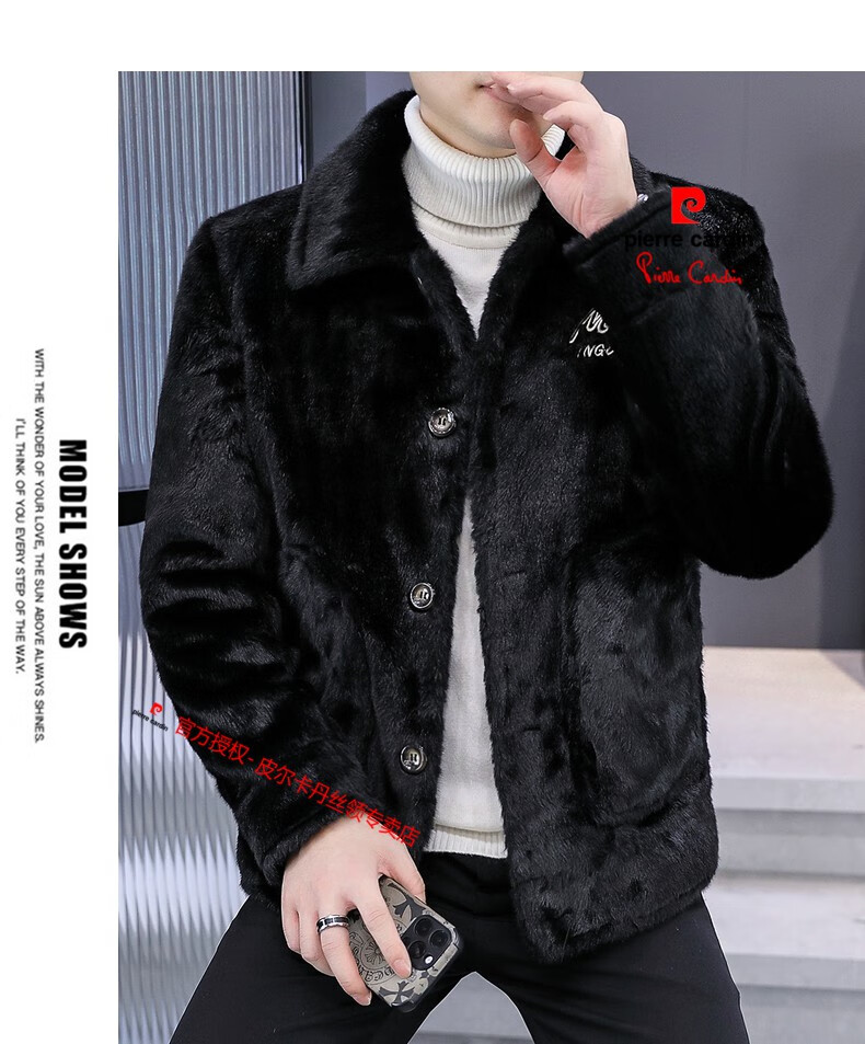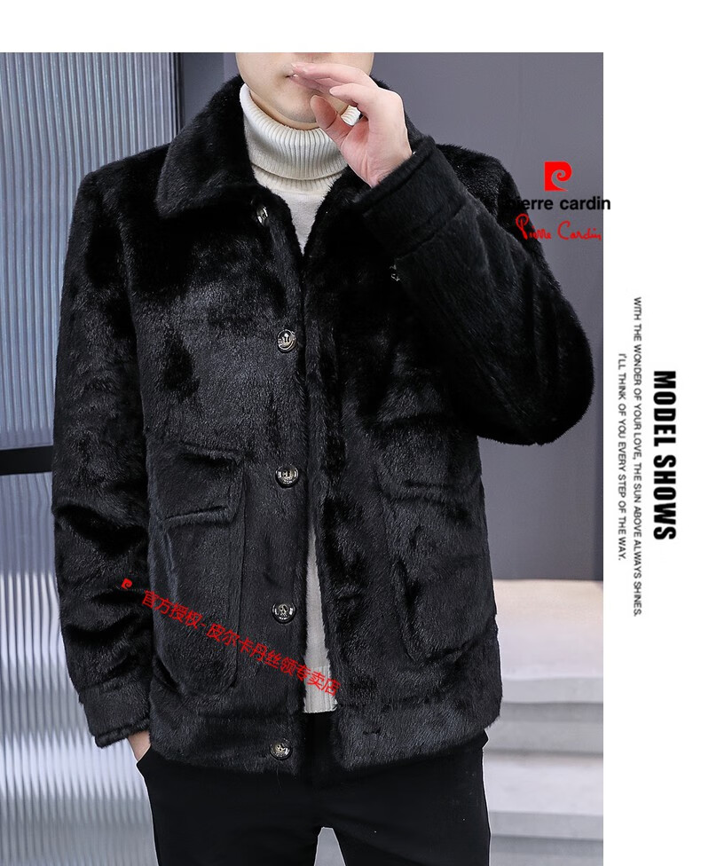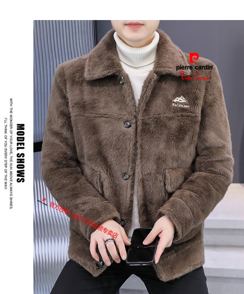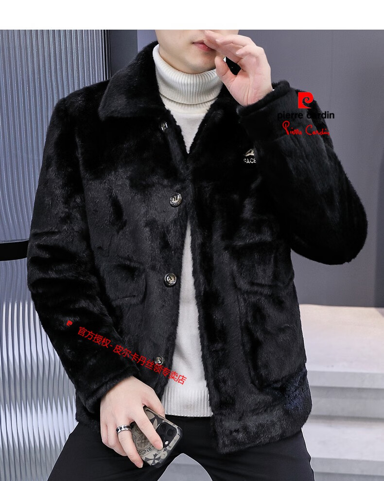Pierre Cardin Autumn and Winter Men's Mink Short Jacket Plus Velvet Thickened Warm Lapel Mink Jacket 612 Brown 3XL