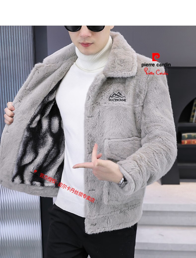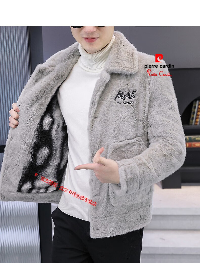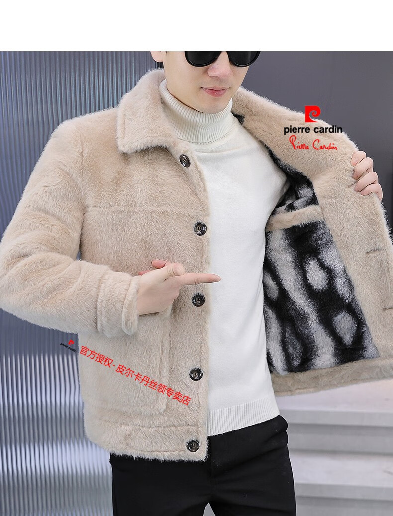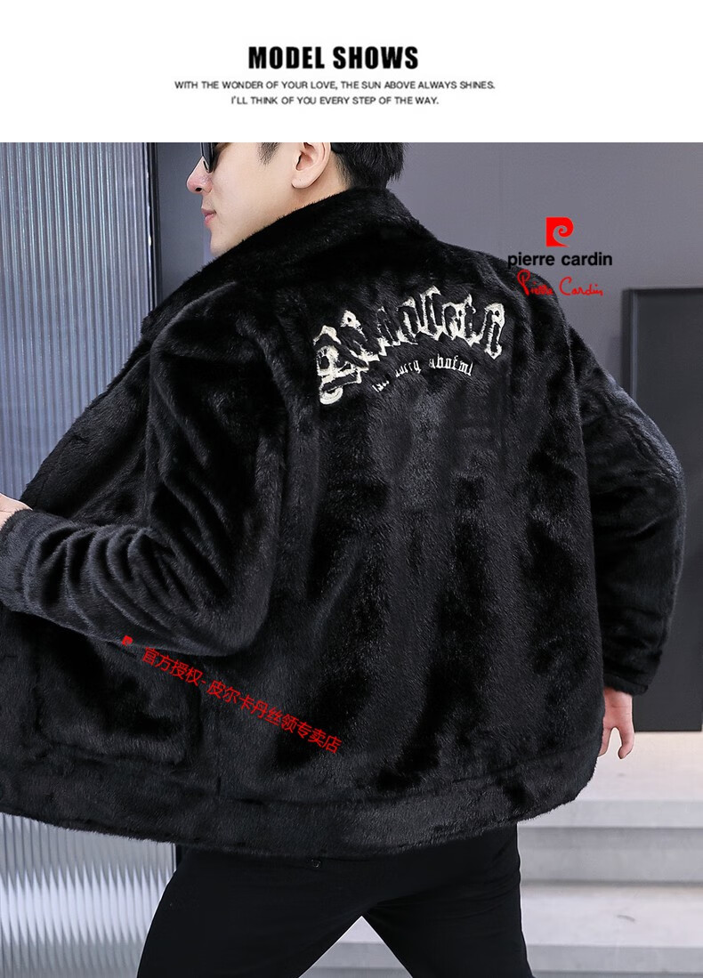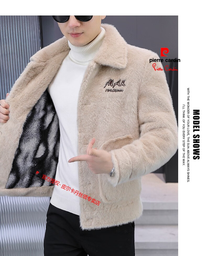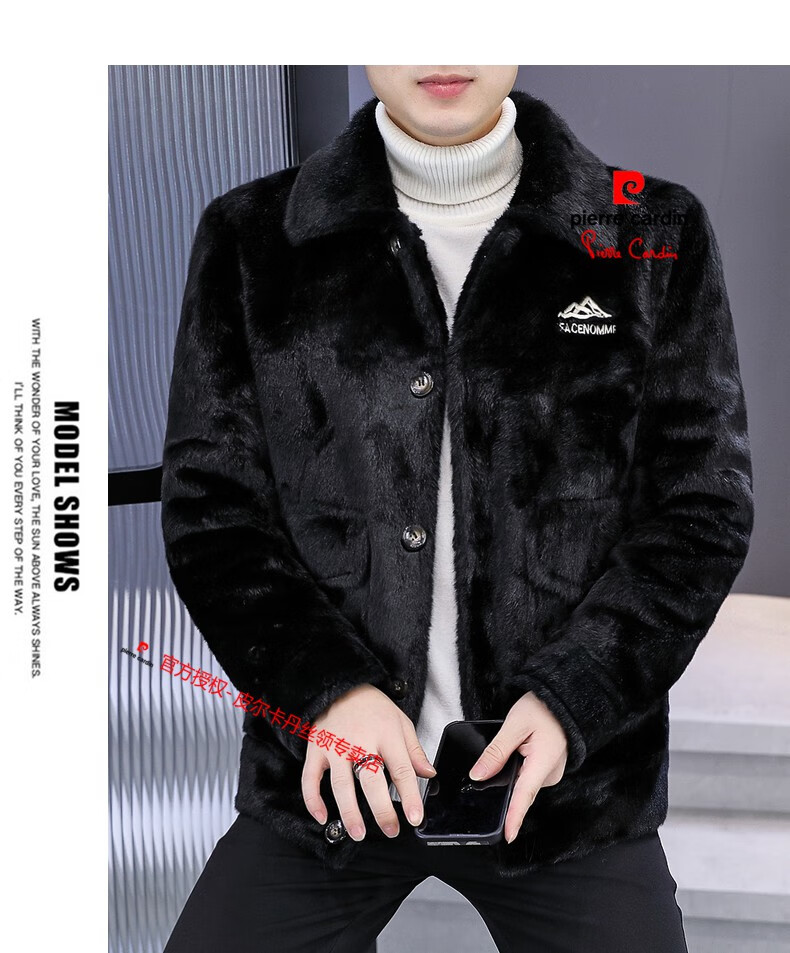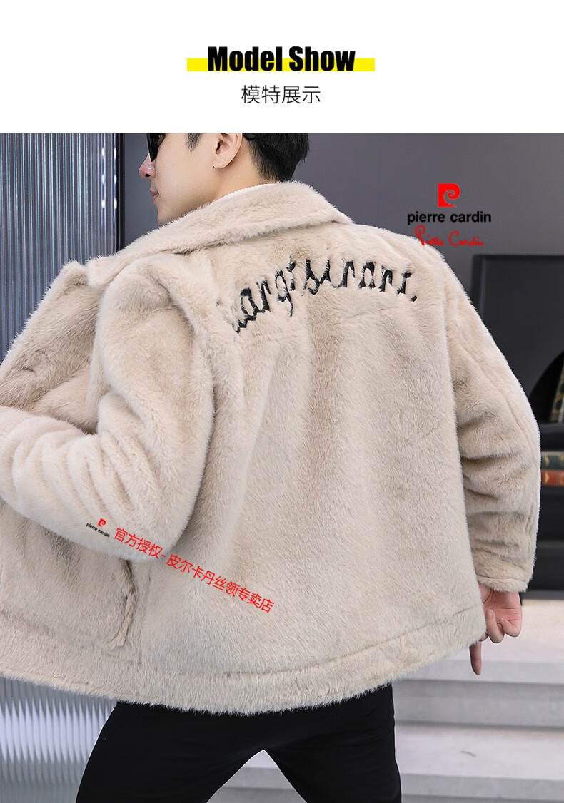 Pierre Cardin Autumn and Winter Men's Mink Short Jacket Plus Velvet Thickened Warm Lapel Mink Jacket 612 Brown 3XL