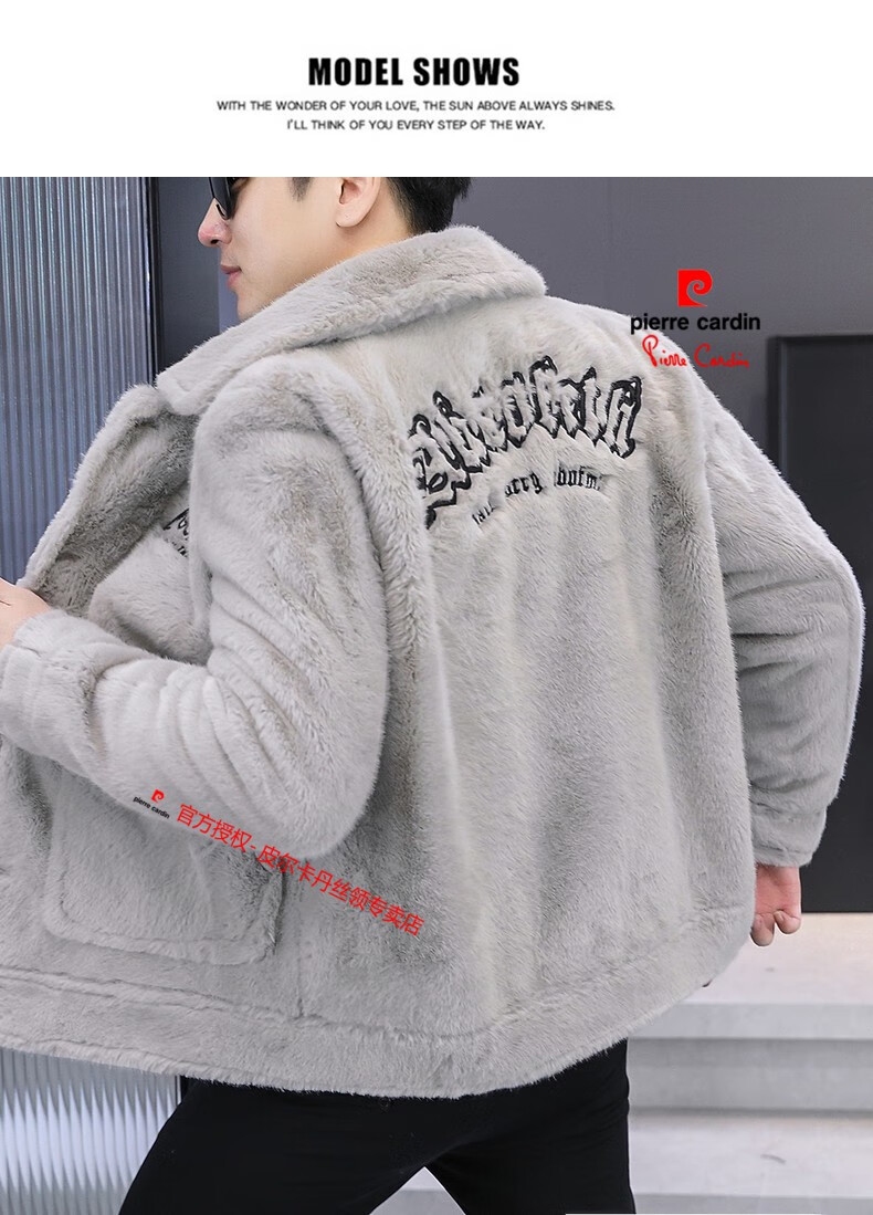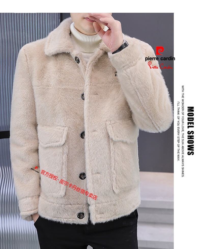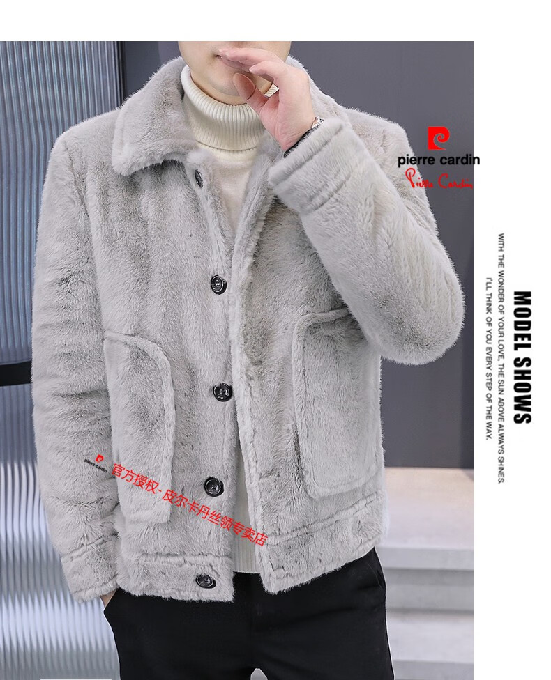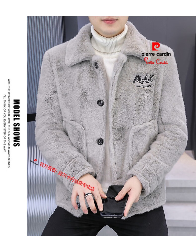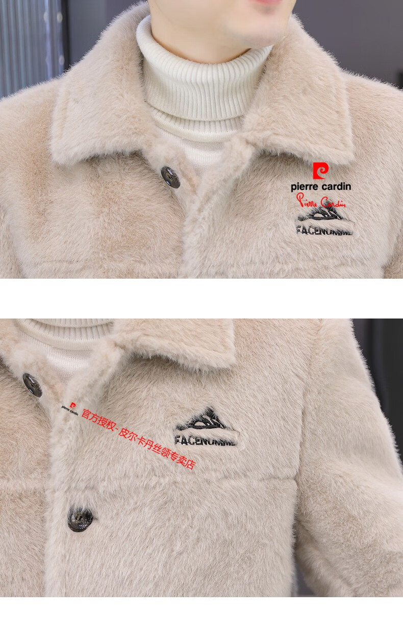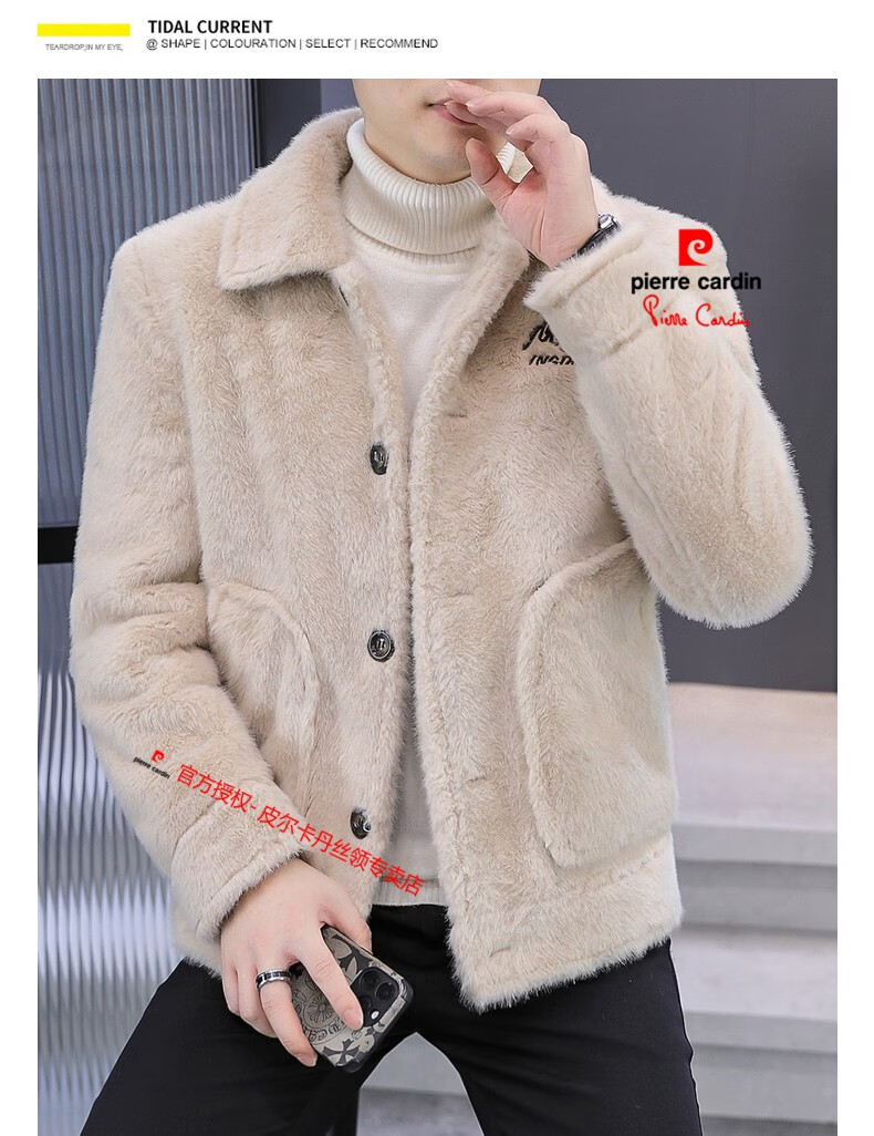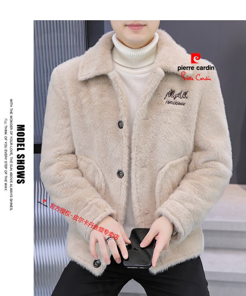 Pierre Cardin Autumn and Winter Men's Mink Short Jacket Plus Velvet Thickened Warm Lapel Mink Jacket 612 Brown 3XL