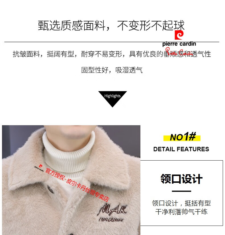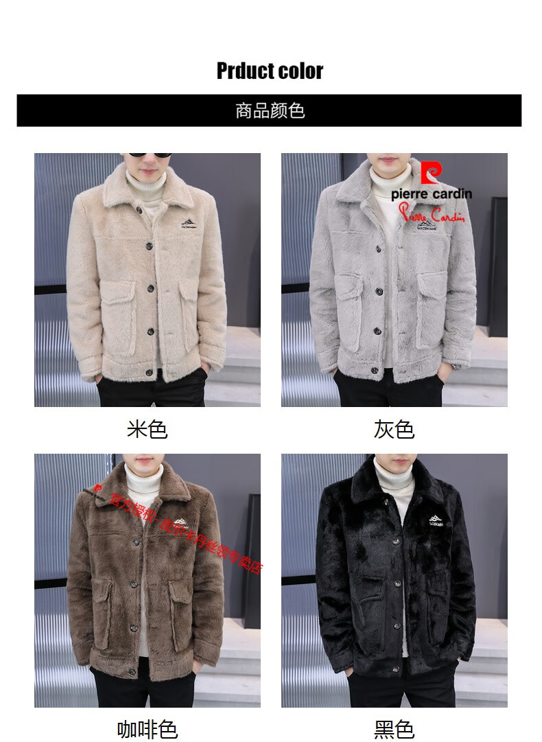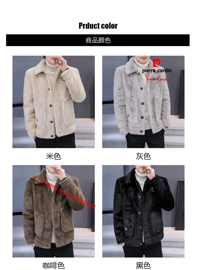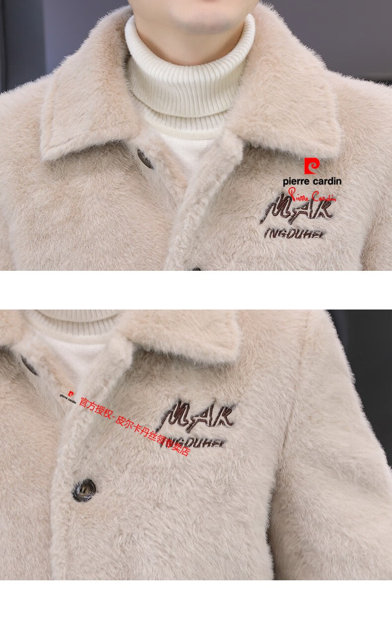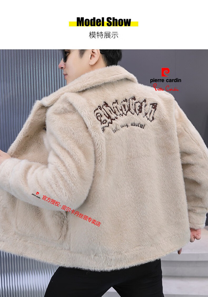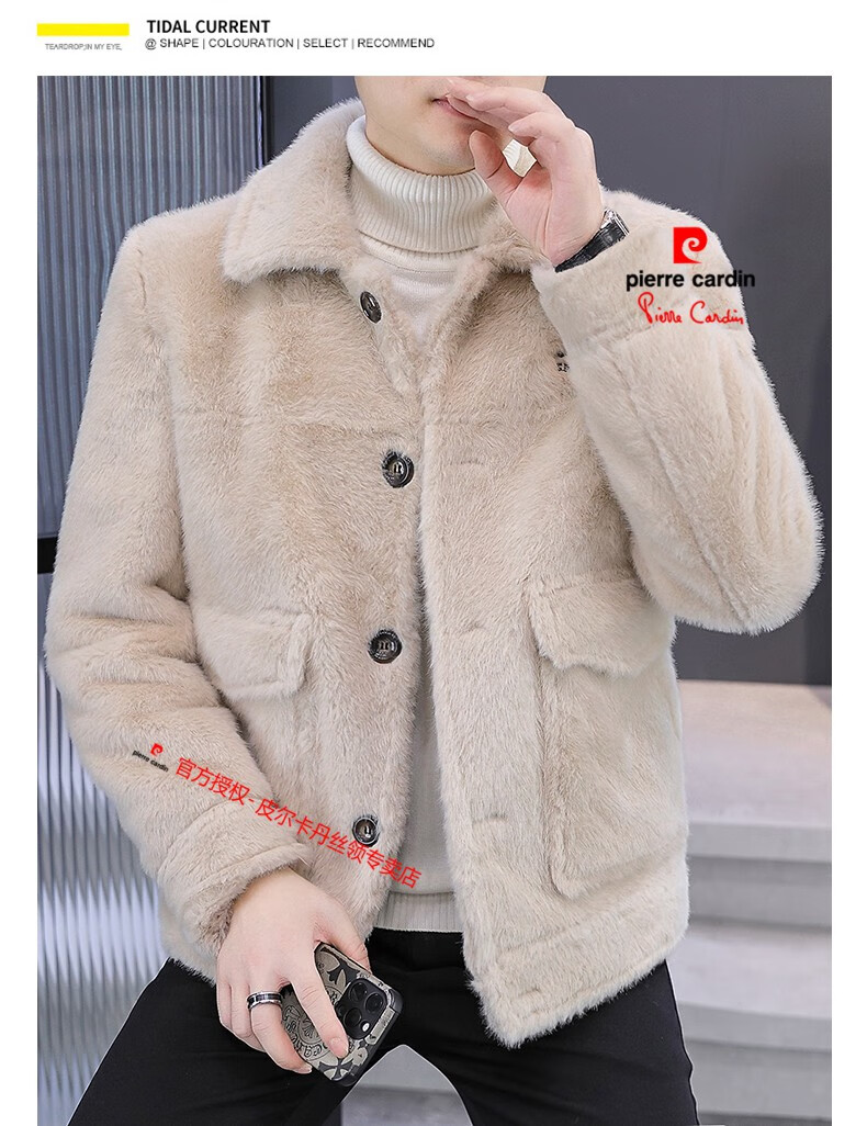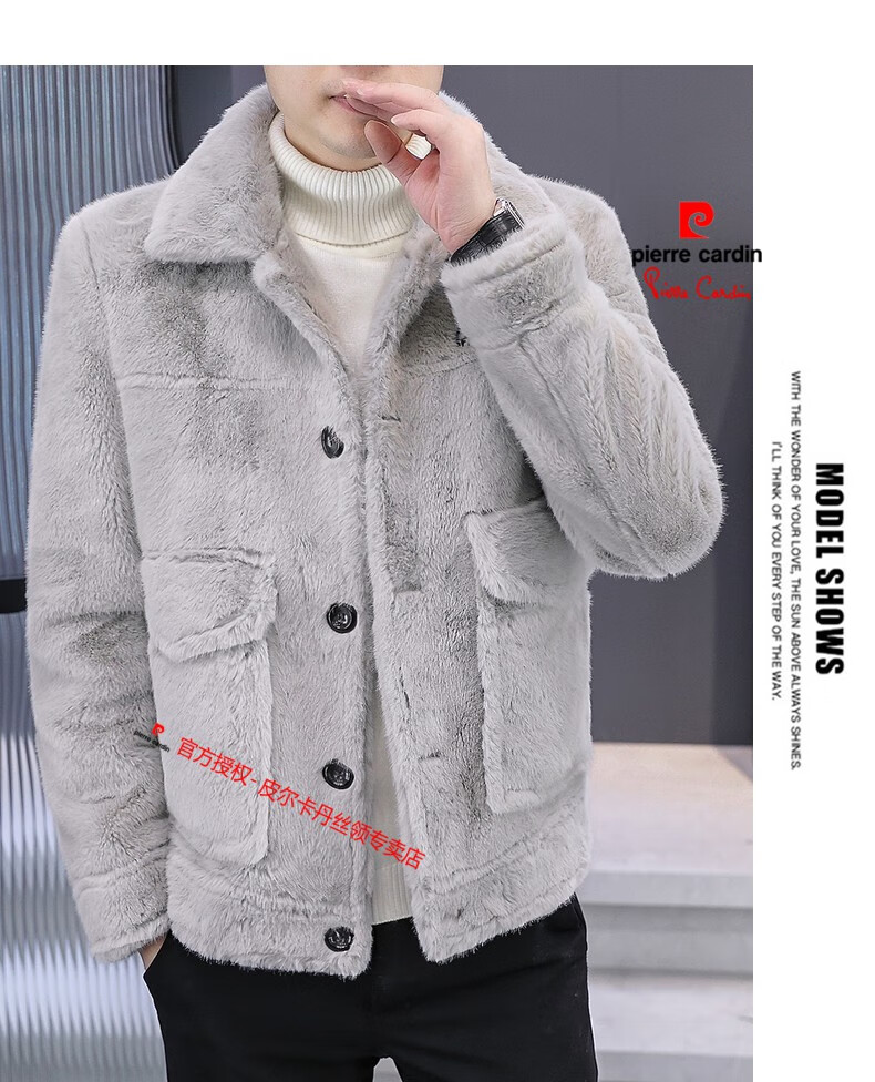 Pierre Cardin Autumn and Winter Men's Mink Short Jacket Plus Velvet Thickened Warm Lapel Mink Jacket 612 Brown 3XL