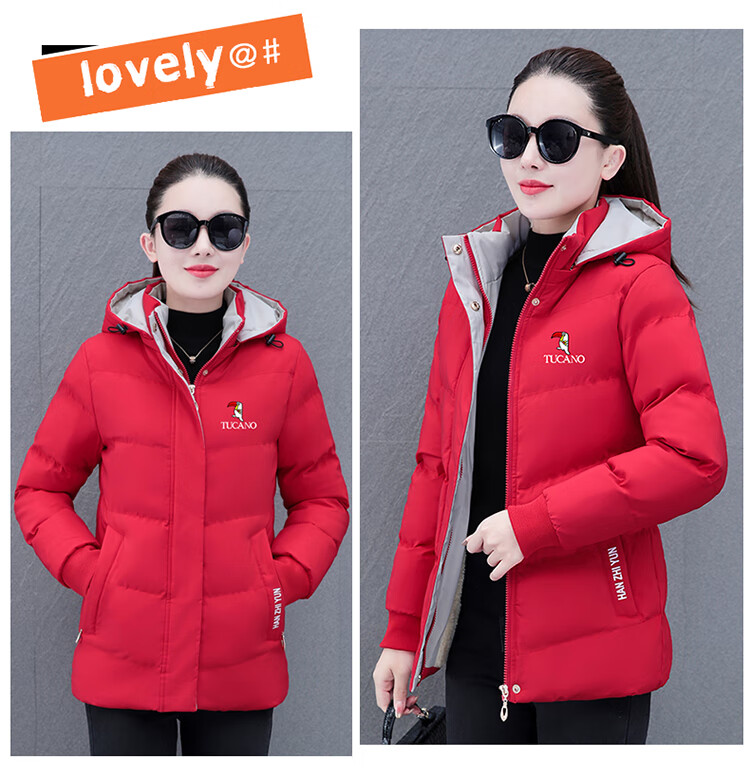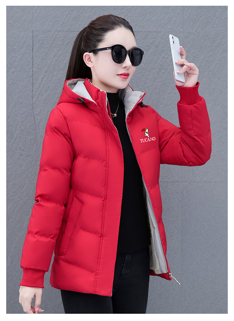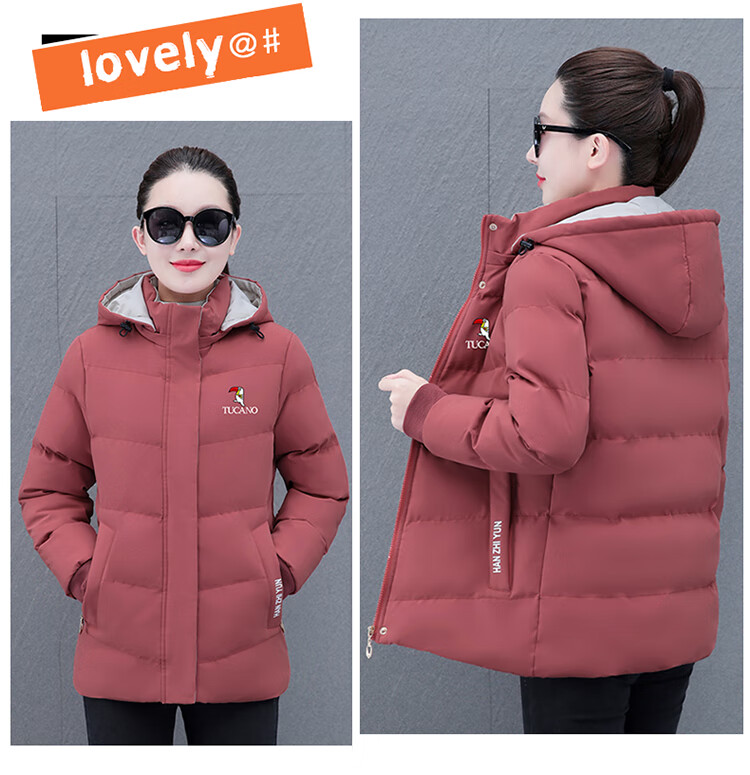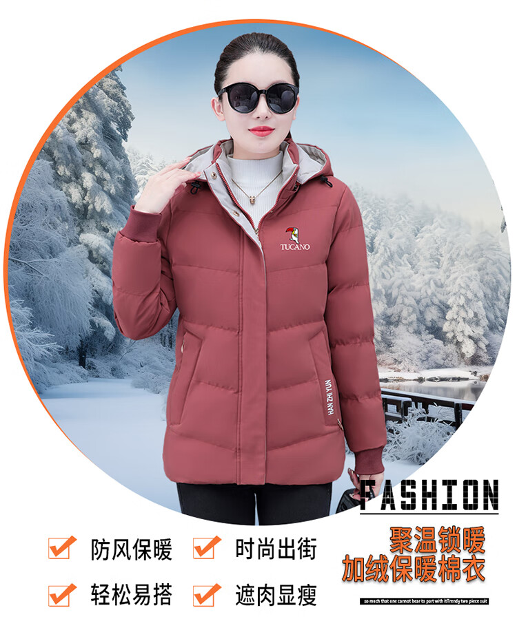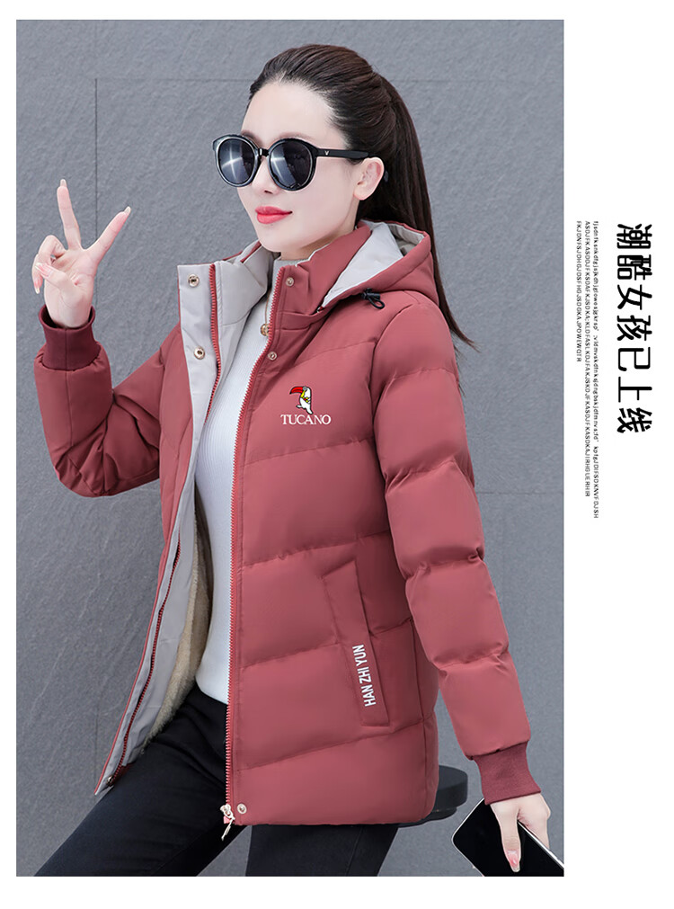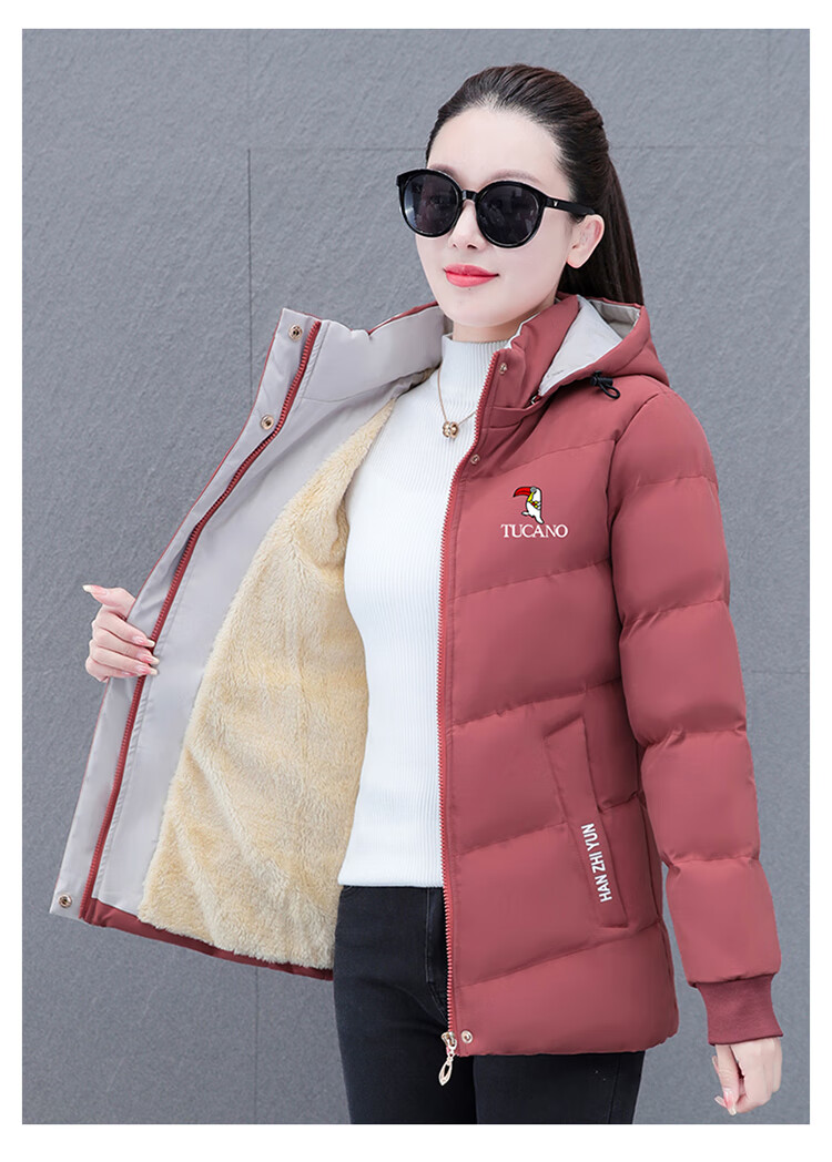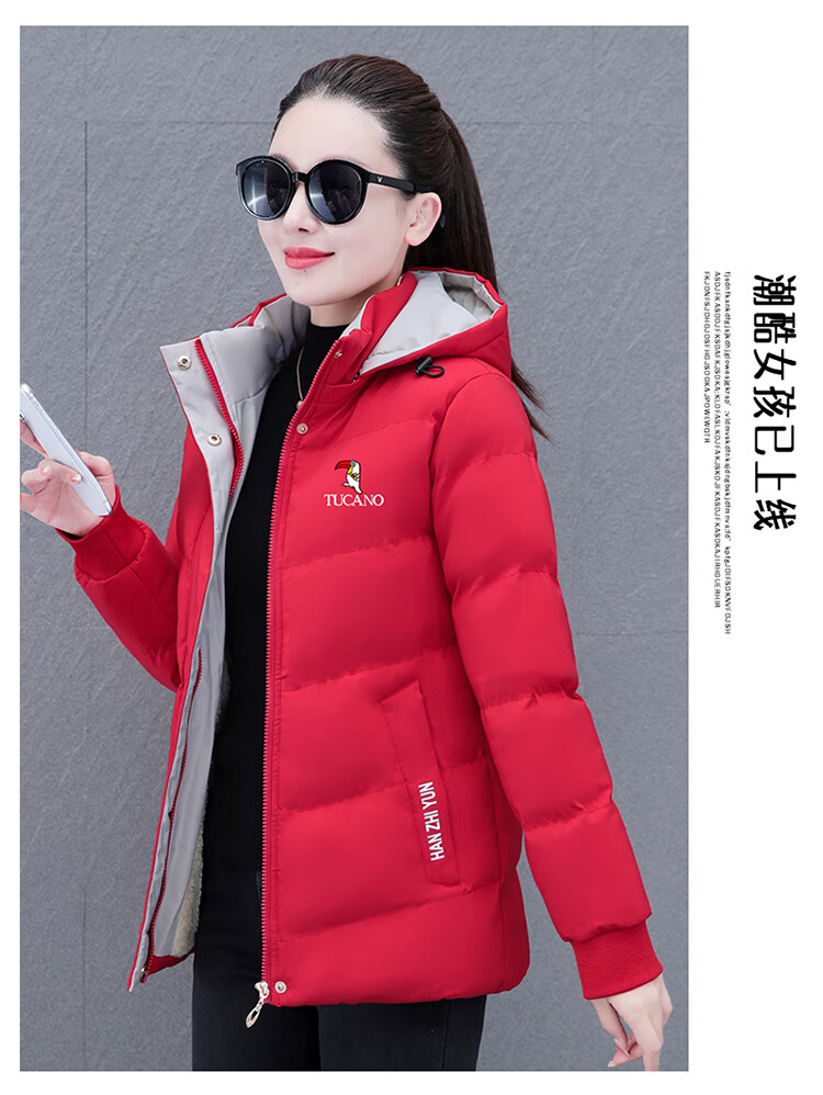 Woodpecker (TUCANO) women's winter new warm hooded jacket small cotton jacket plus velvet thickened cotton coat slimming middle-aged and elderly mother's wear brick red L recommended 95-110 Jin Jin equals 0.5 kg