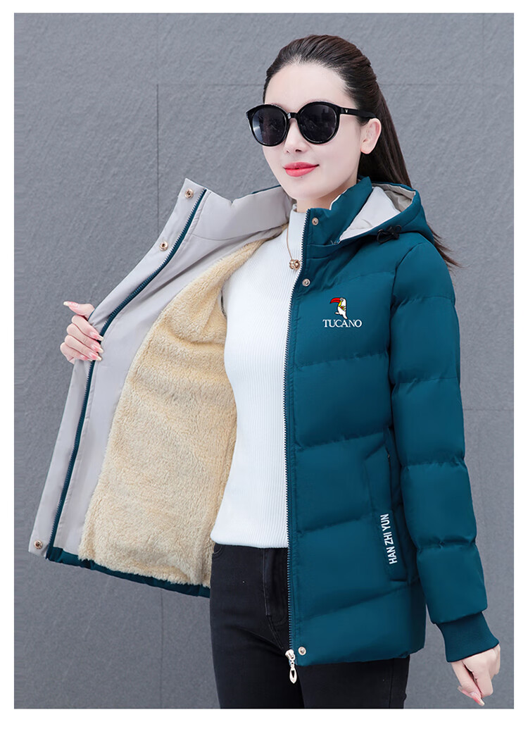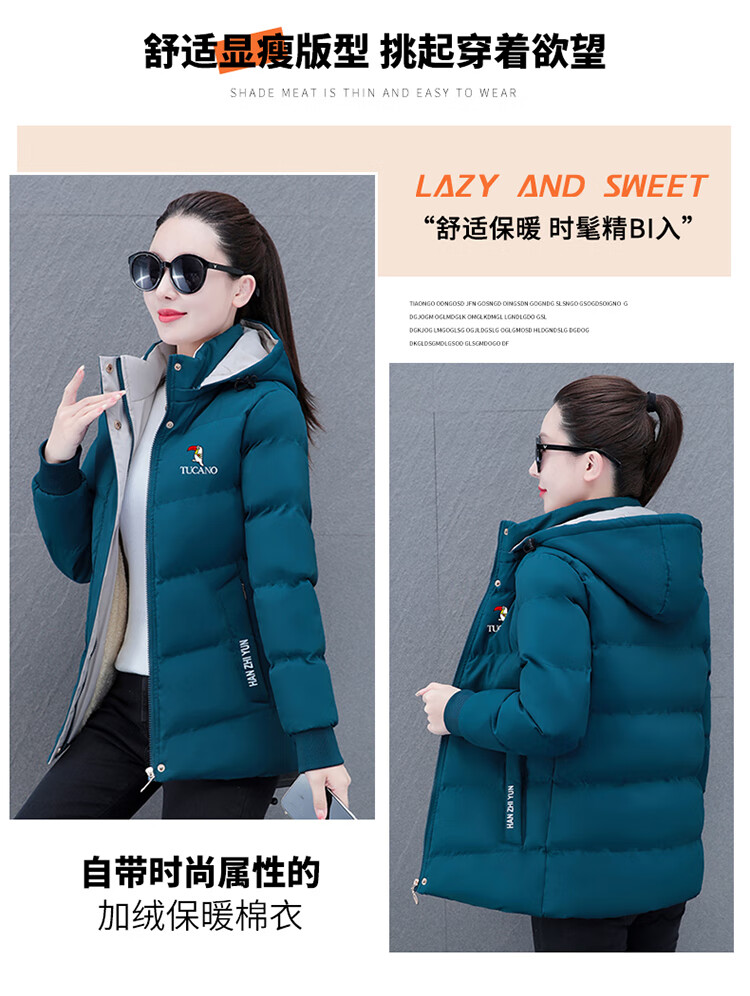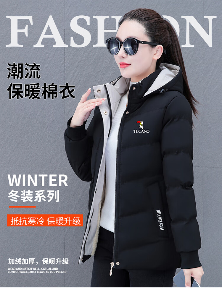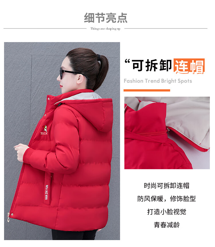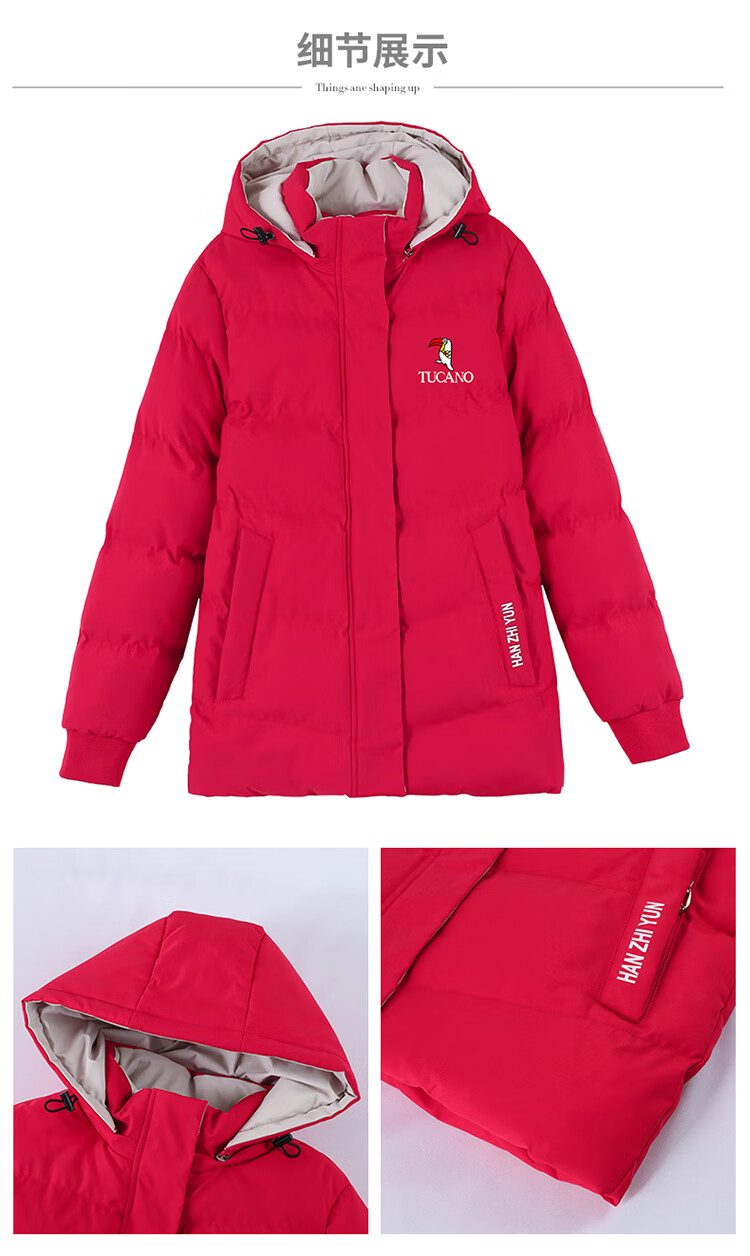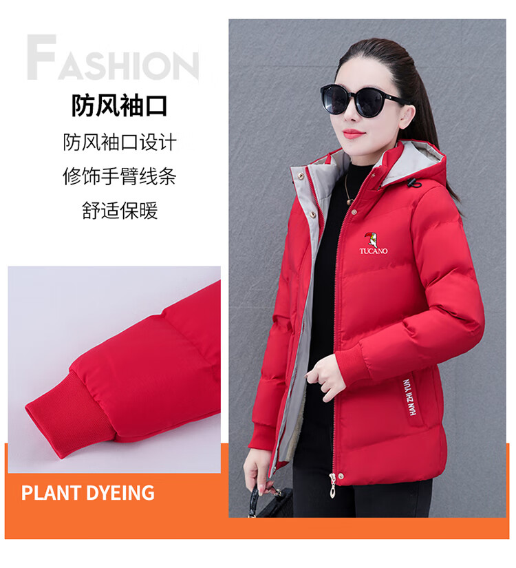Woodpecker (TUCANO) women's winter new warm hooded jacket small cotton jacket plus velvet thickened cotton coat slimming middle-aged and elderly mother's wear brick red L recommended 95-110 Jin Jin equals 0.5 kg
