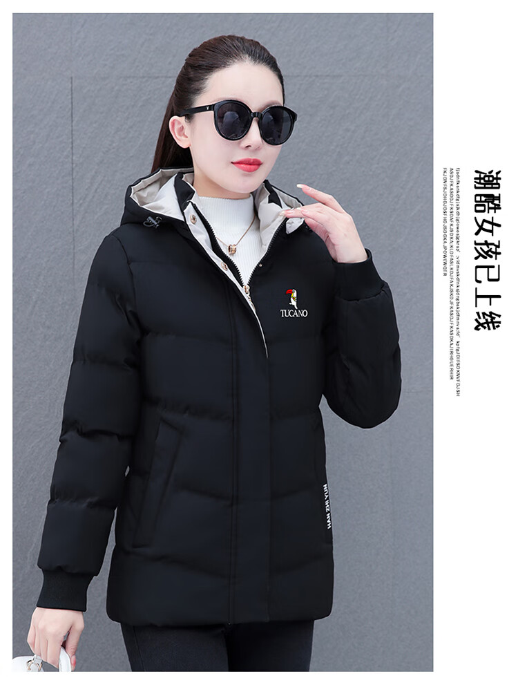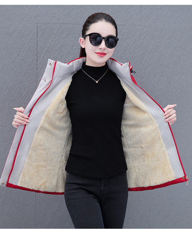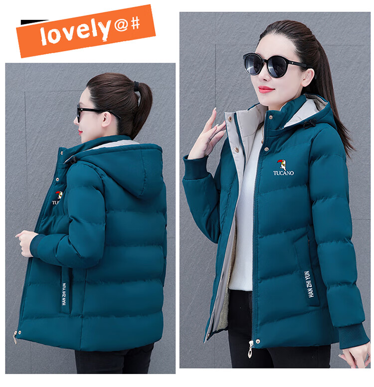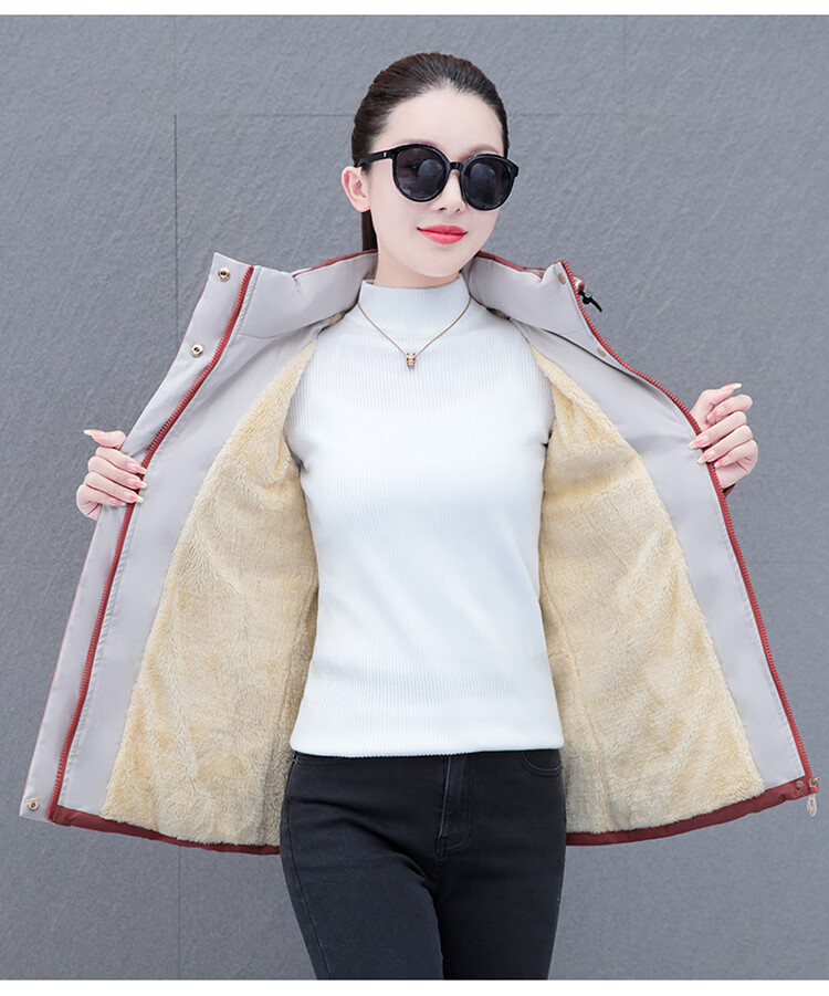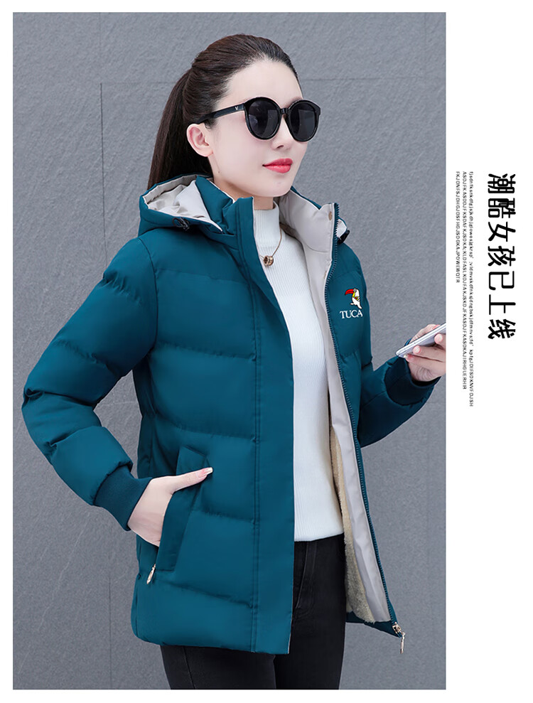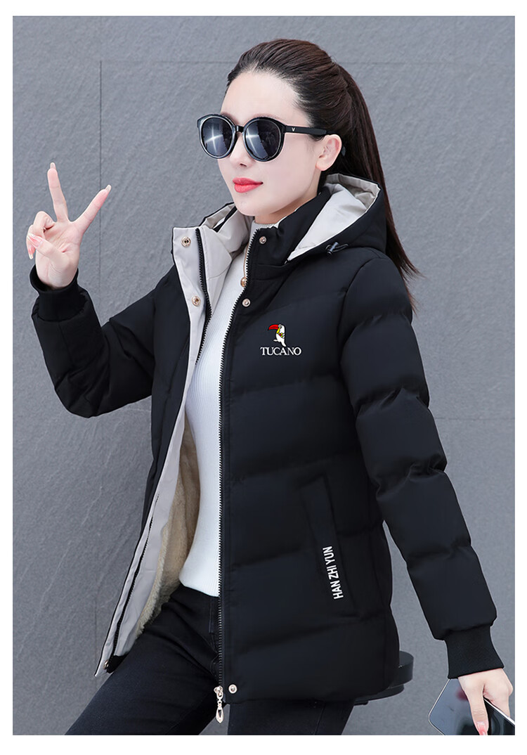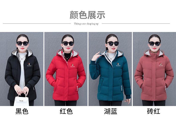 Woodpecker (TUCANO) women's winter new warm hooded jacket small cotton jacket plus velvet thickened cotton coat slimming middle-aged and elderly mother's wear brick red L recommended 95-110 Jin Jin equals 0.5 kg