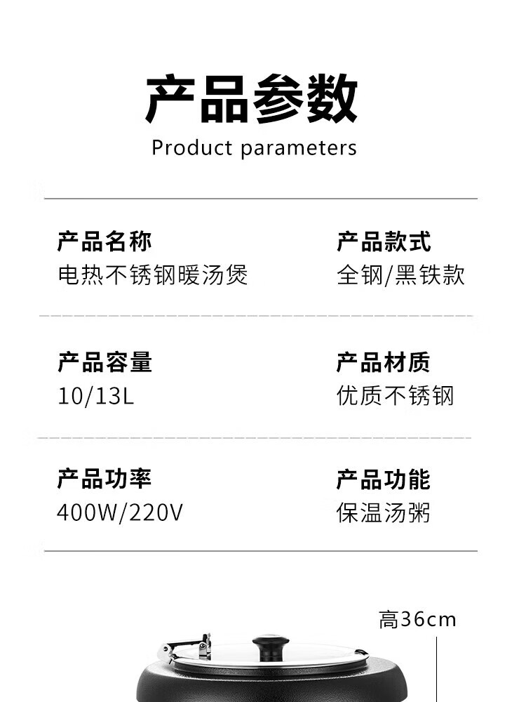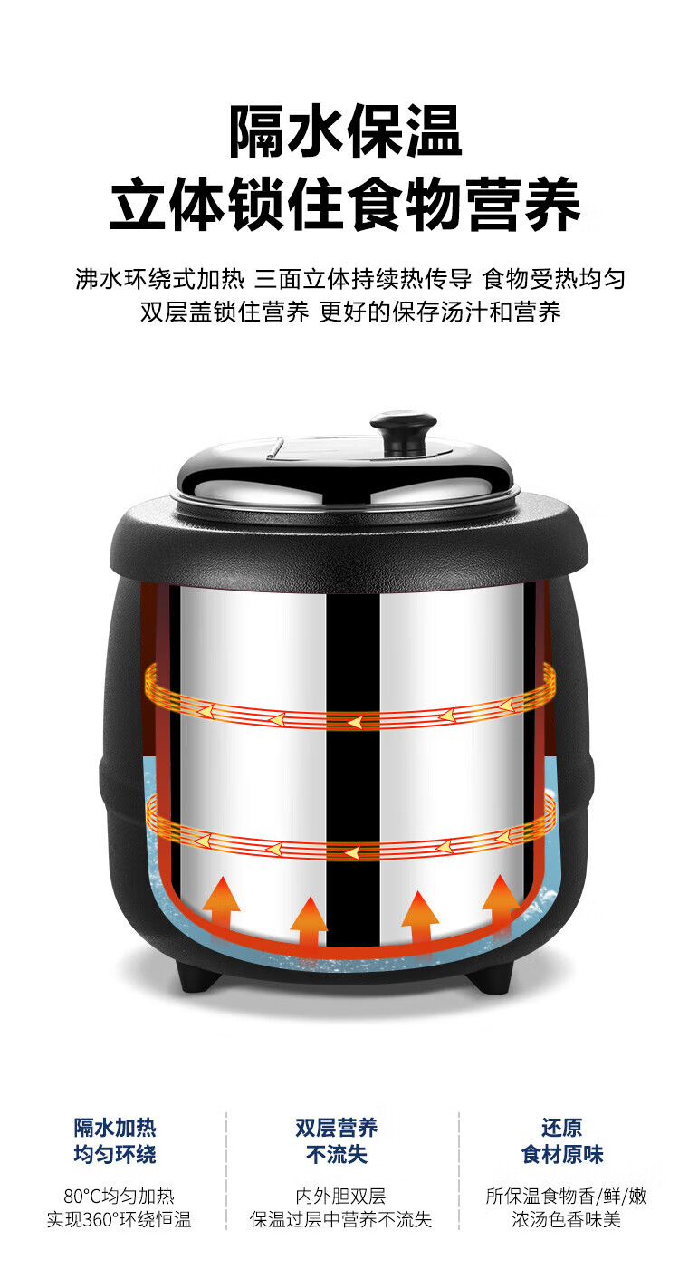 Commercial Warm Soup Pot 10L13L Insulated Porridge Bucket Warm Porridge Bucket Porridge Pot Electric Heating Insulated Pot Soup Stove 13L Steel Soup Pot Small Mouth Lid/Upgraded 304 Liner
