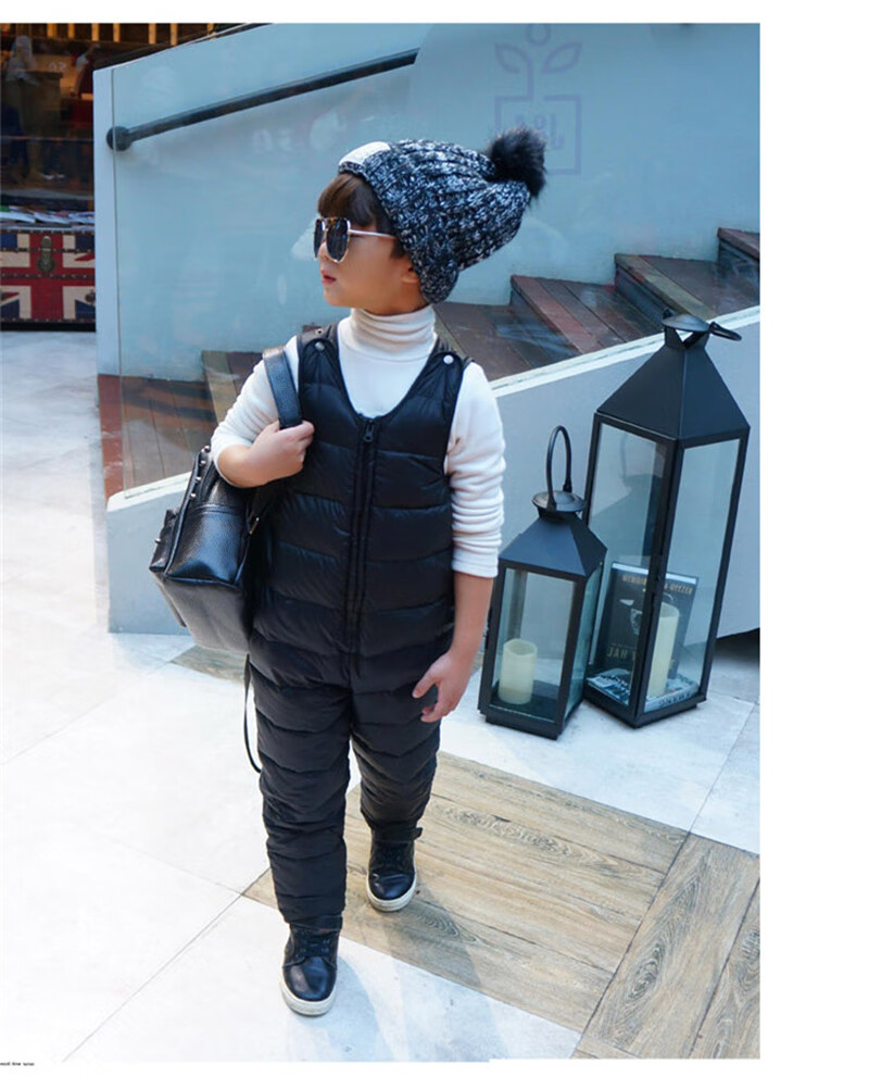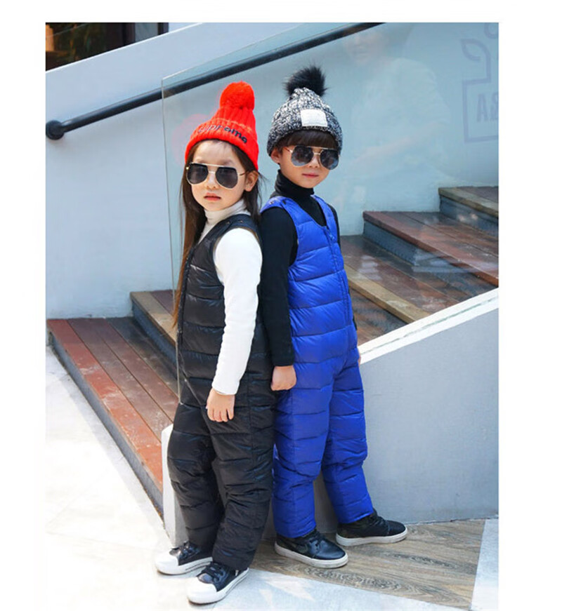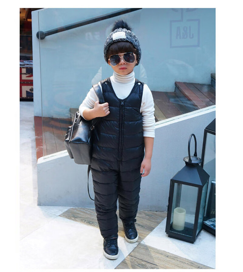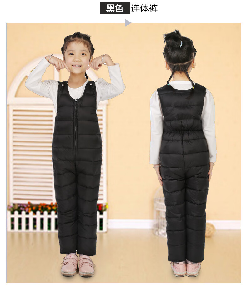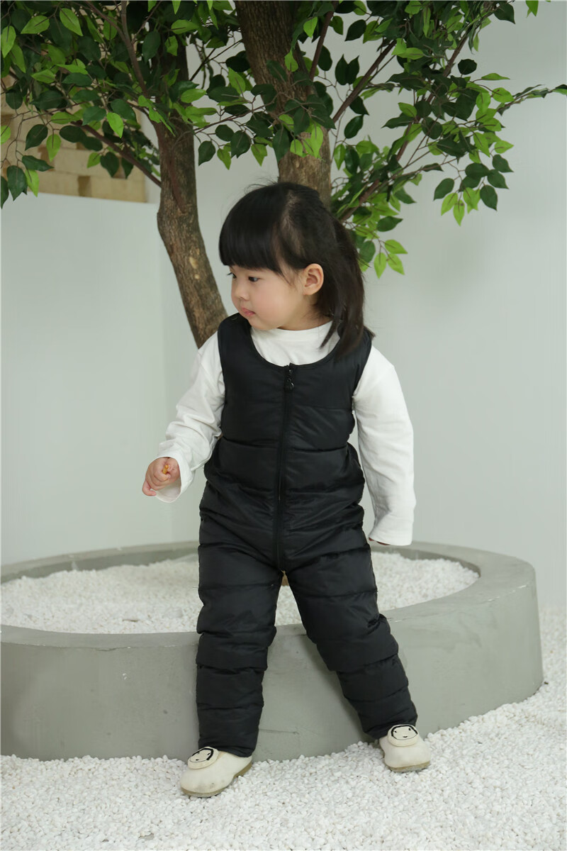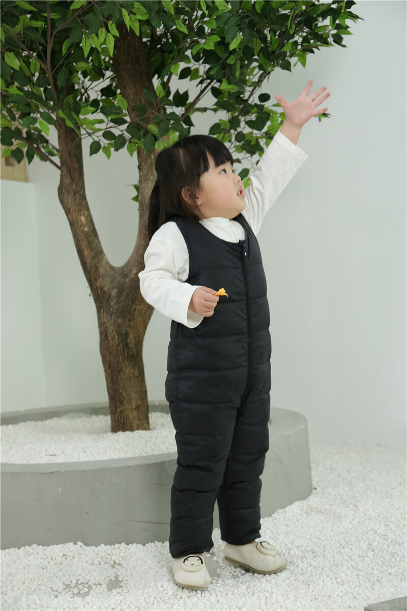 G.DUCKKIDS children's down pants for boys and girls, lined down overalls, thickened baby down pants, baby cotton pants for inner and outer wear, black upgrade (chest zipper, crotch can be closed, can be 100cm