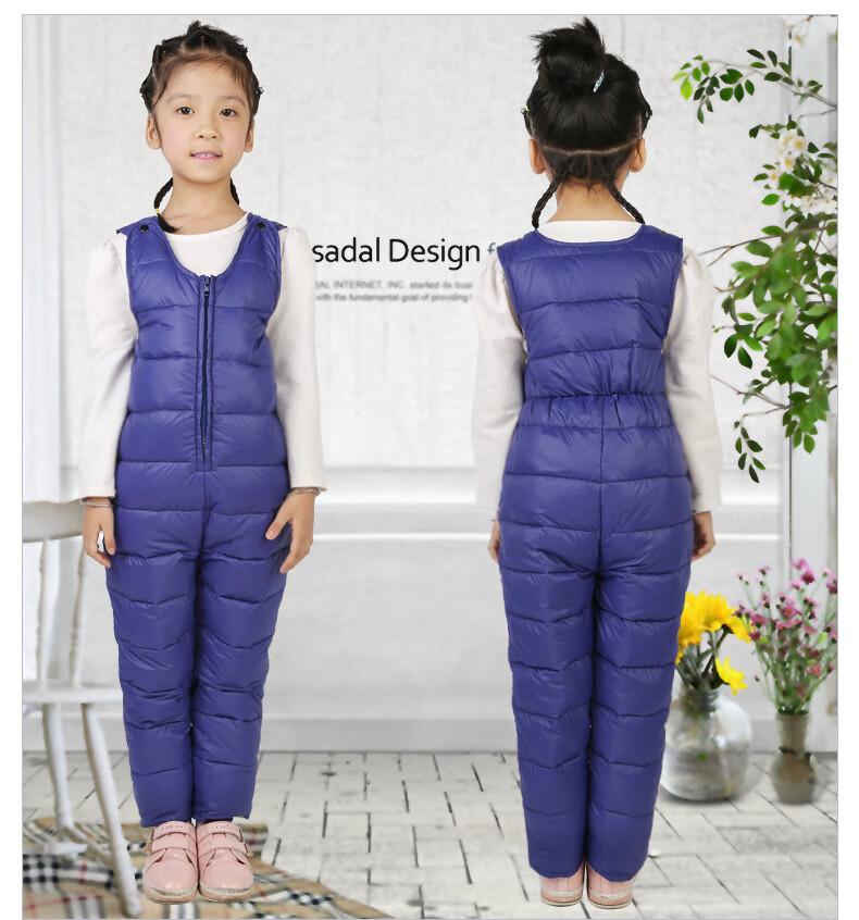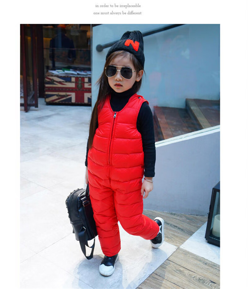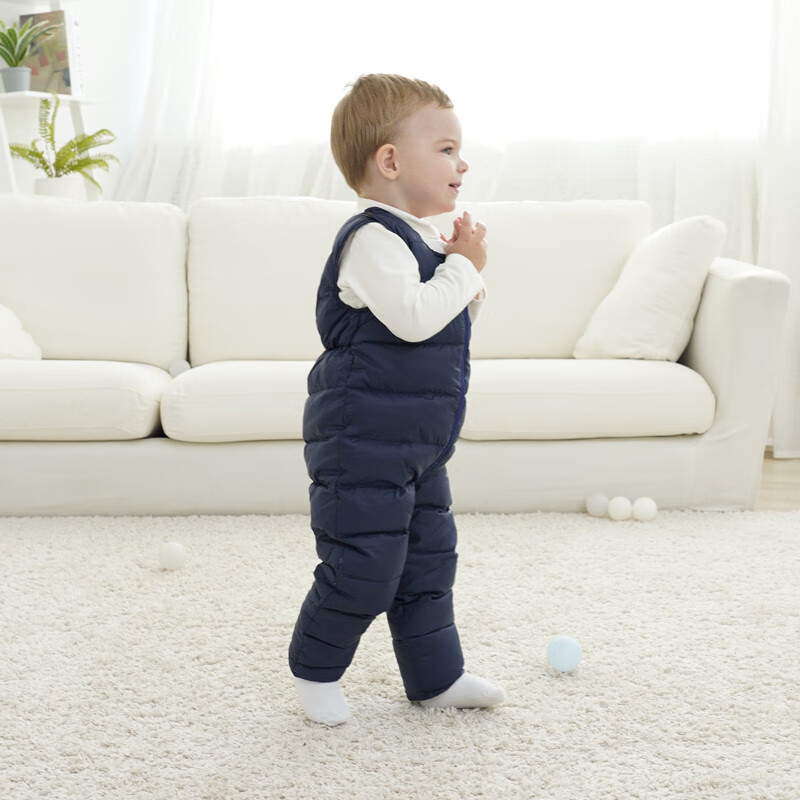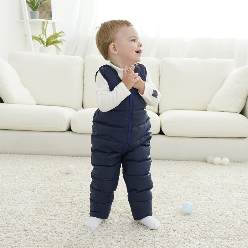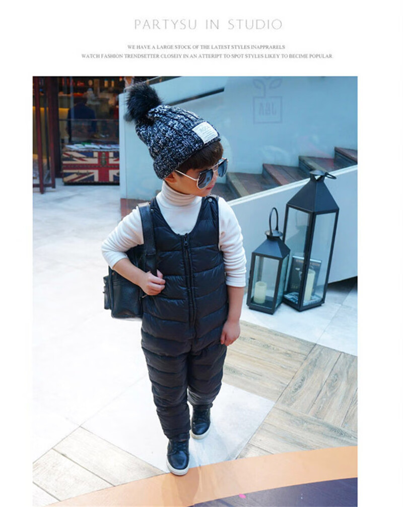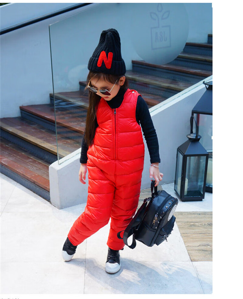 G.DUCKKIDS children's down pants for boys and girls, lined down overalls, thickened baby down pants, baby cotton pants for inner and outer wear, black upgrade (chest zipper, crotch can be closed, can be 100cm