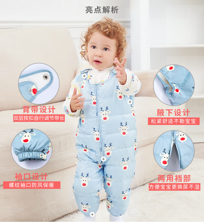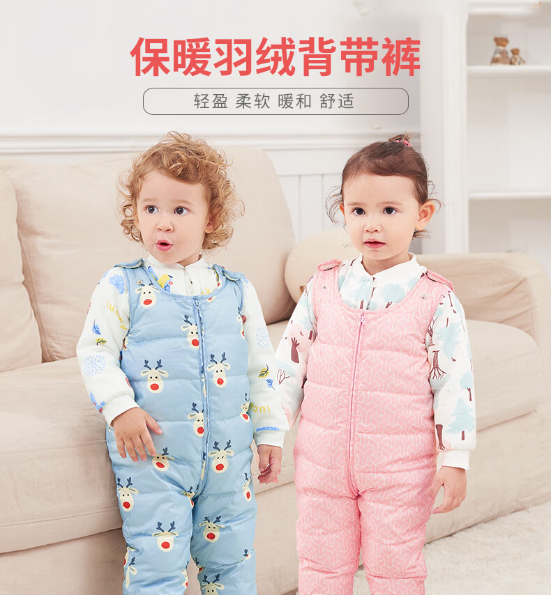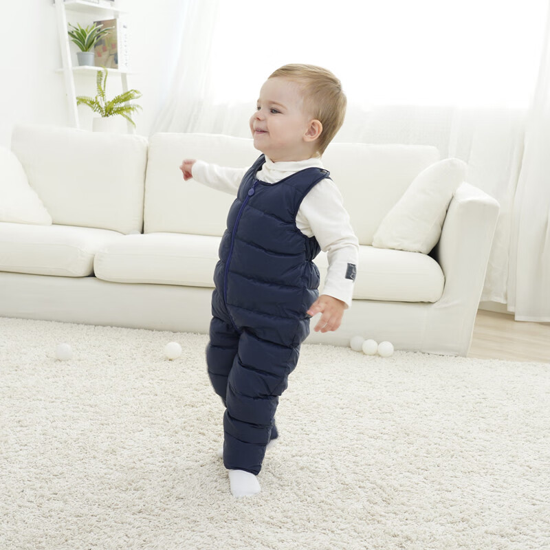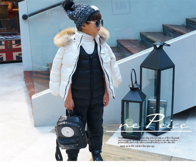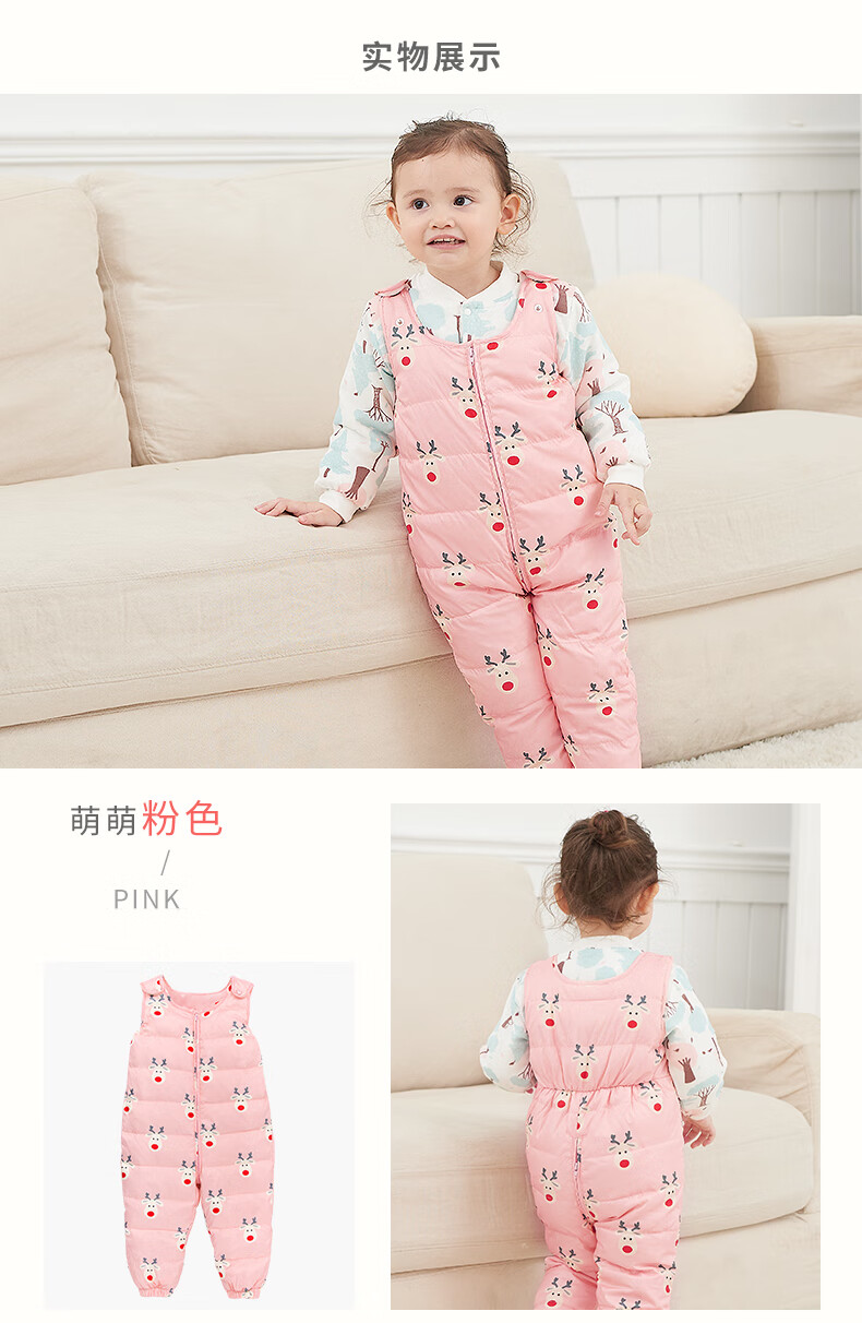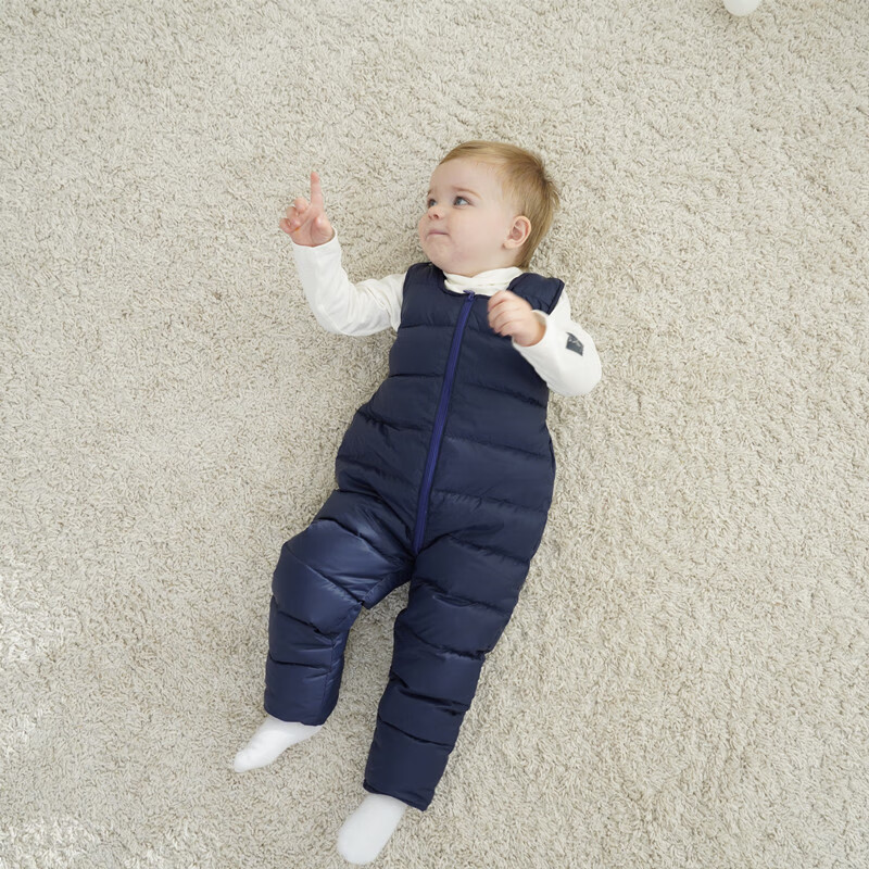 G.DUCKKIDS children's down pants for boys and girls, lined down overalls, thickened baby down pants, baby cotton pants for inner and outer wear, black upgrade (chest zipper, crotch can be closed, can be 100cm