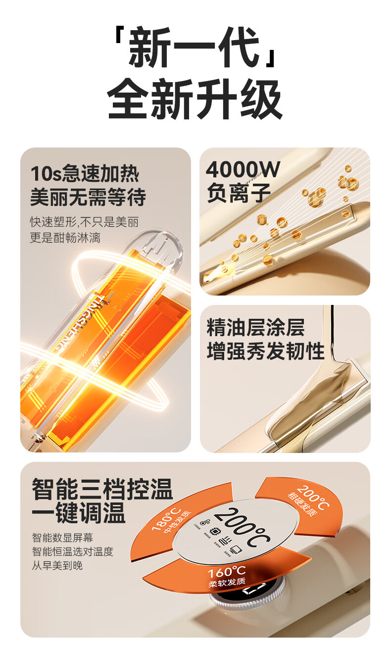 Chigo Straight Board Clamp Negative Ions Does Not Hurt Hair Curling Iron Hair Straightening Splint For Boys Small Splint Women's Bangs Clip Hair Board Perm Hair Straightening Board Ironing Board Hair Ivory Yellow LCD Model Straightening and Curling Dual Use + 4000W Negative Ions