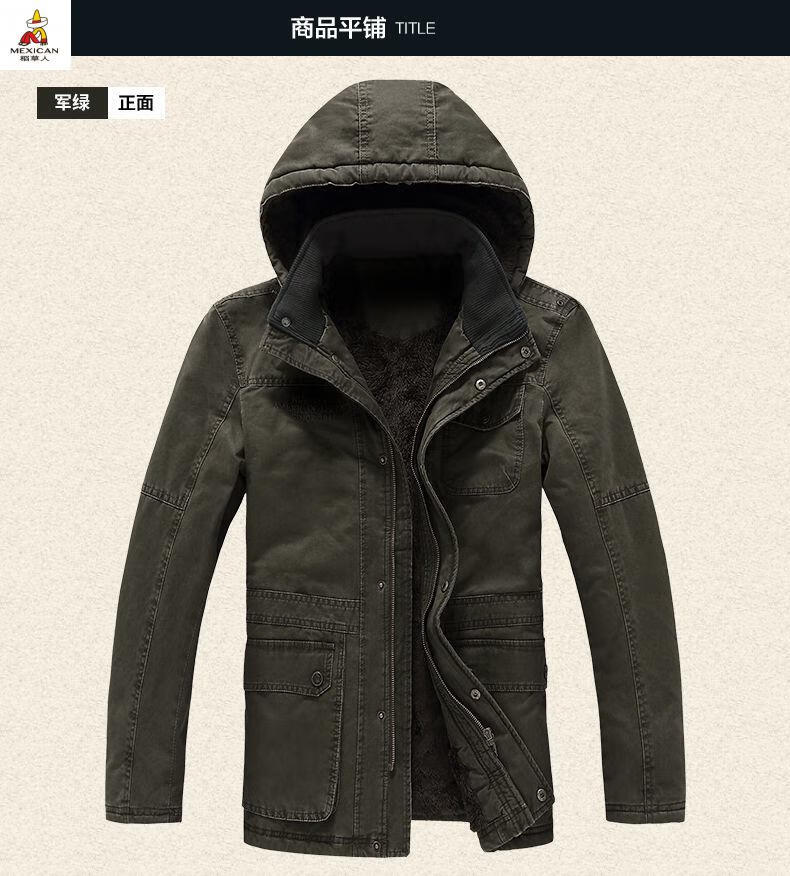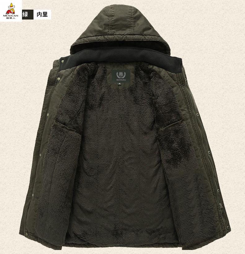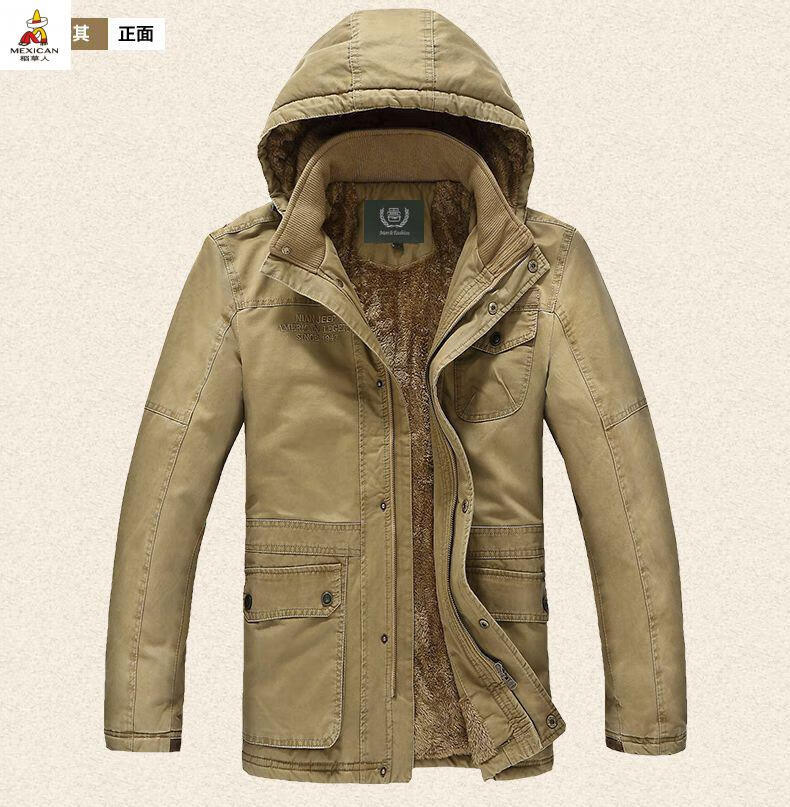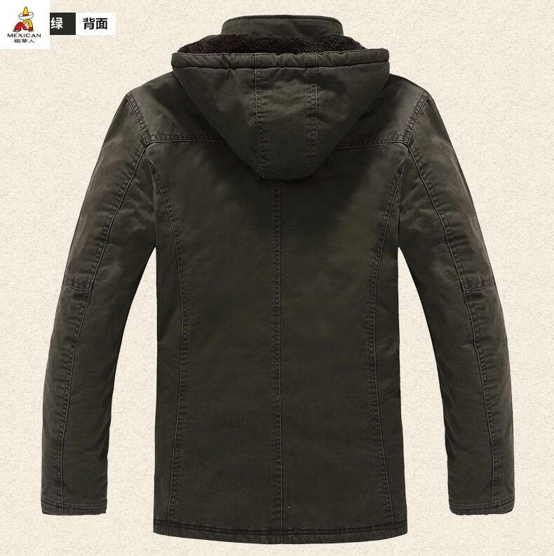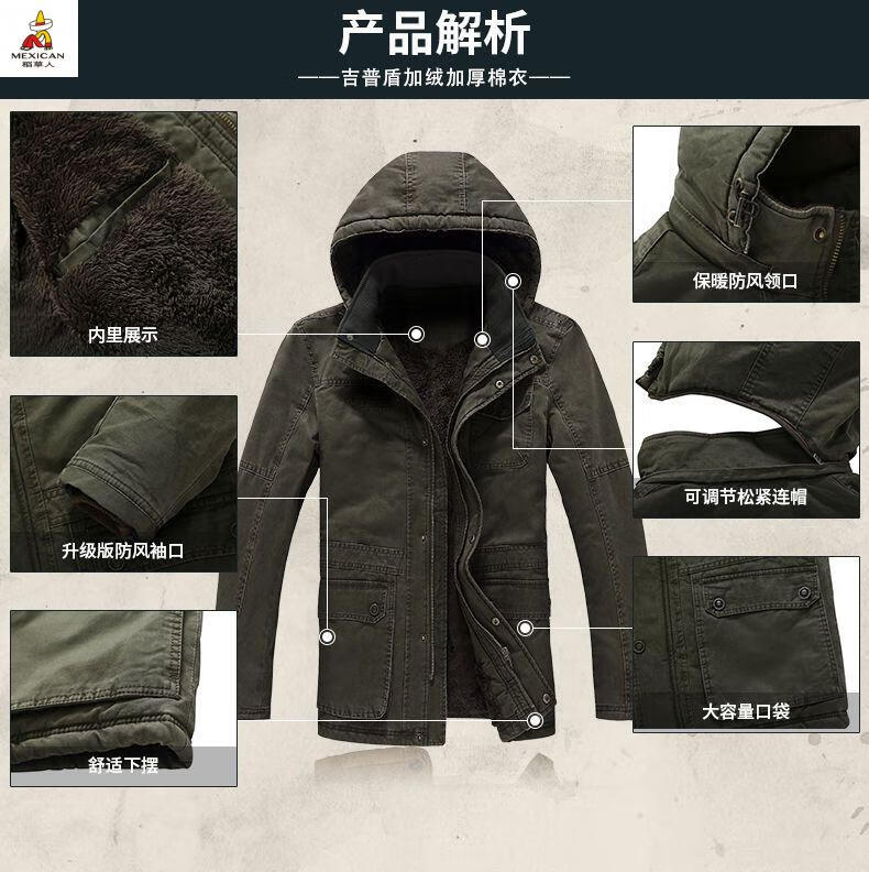 Scarecrow see exhibition car winter mid-length cotton coat men's lamb wool lining jacket cotton jacket plus velvet thickened men's jacket khaki M 110-120Jin Jin is equal to about 0.5 kg