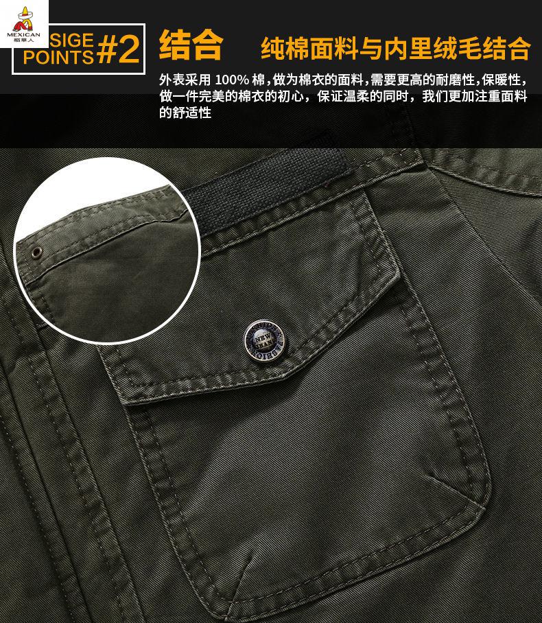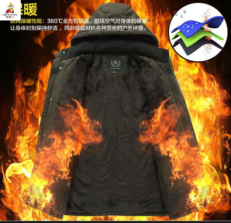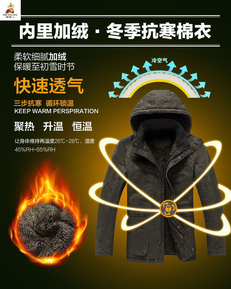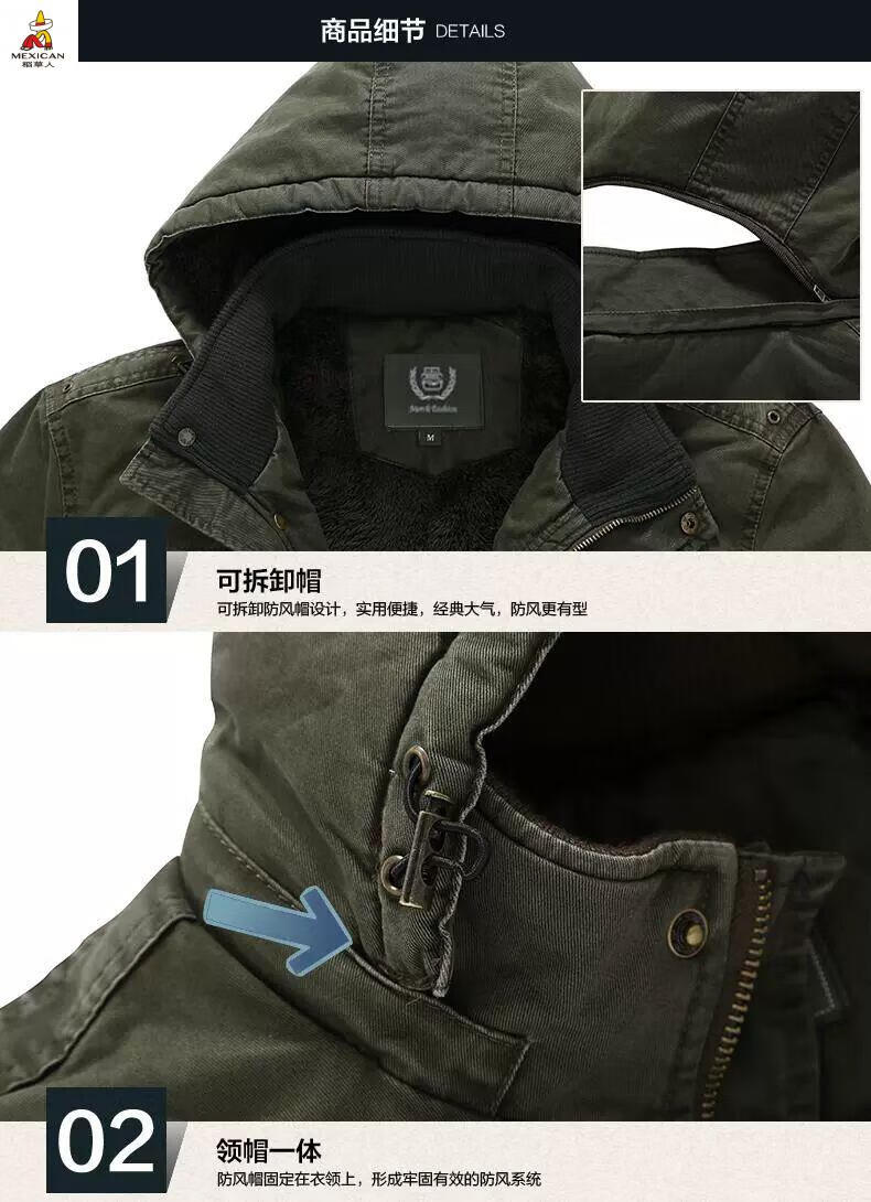 Scarecrow see exhibition car winter mid-length cotton coat men's lamb wool lining jacket cotton jacket plus velvet thickened men's jacket khaki M 110-120Jin Jin is equal to about 0.5 kg