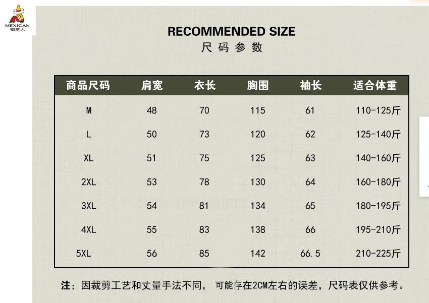 Size (cm) 42 44 46 48 50