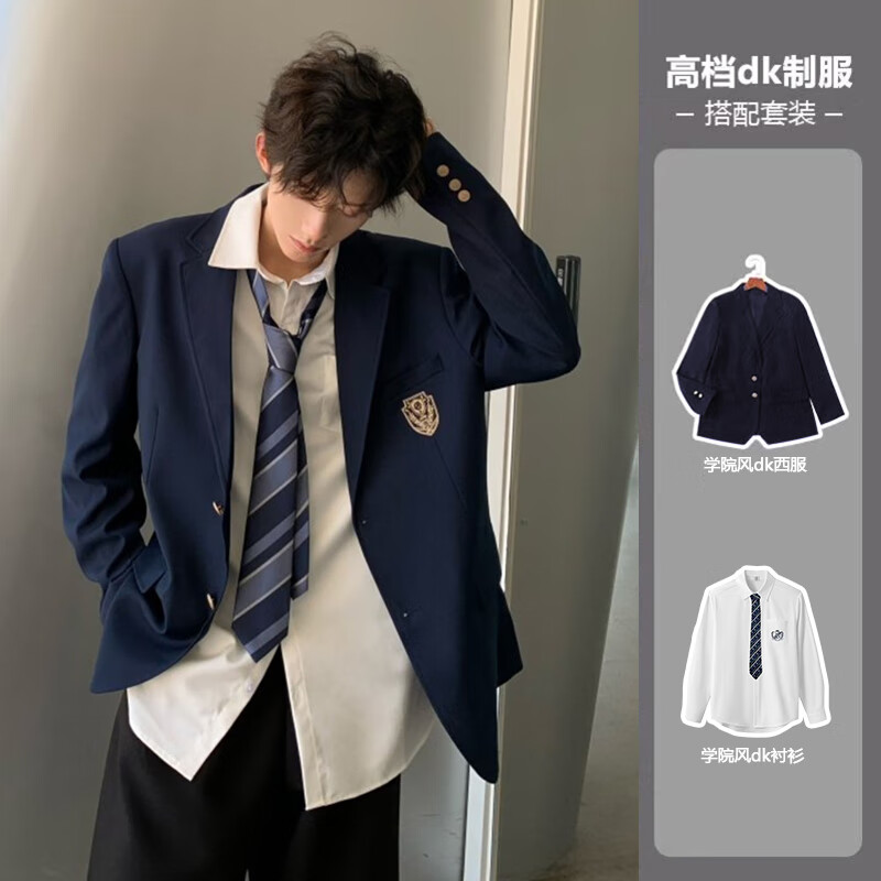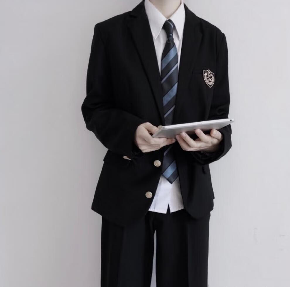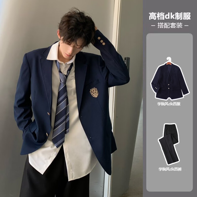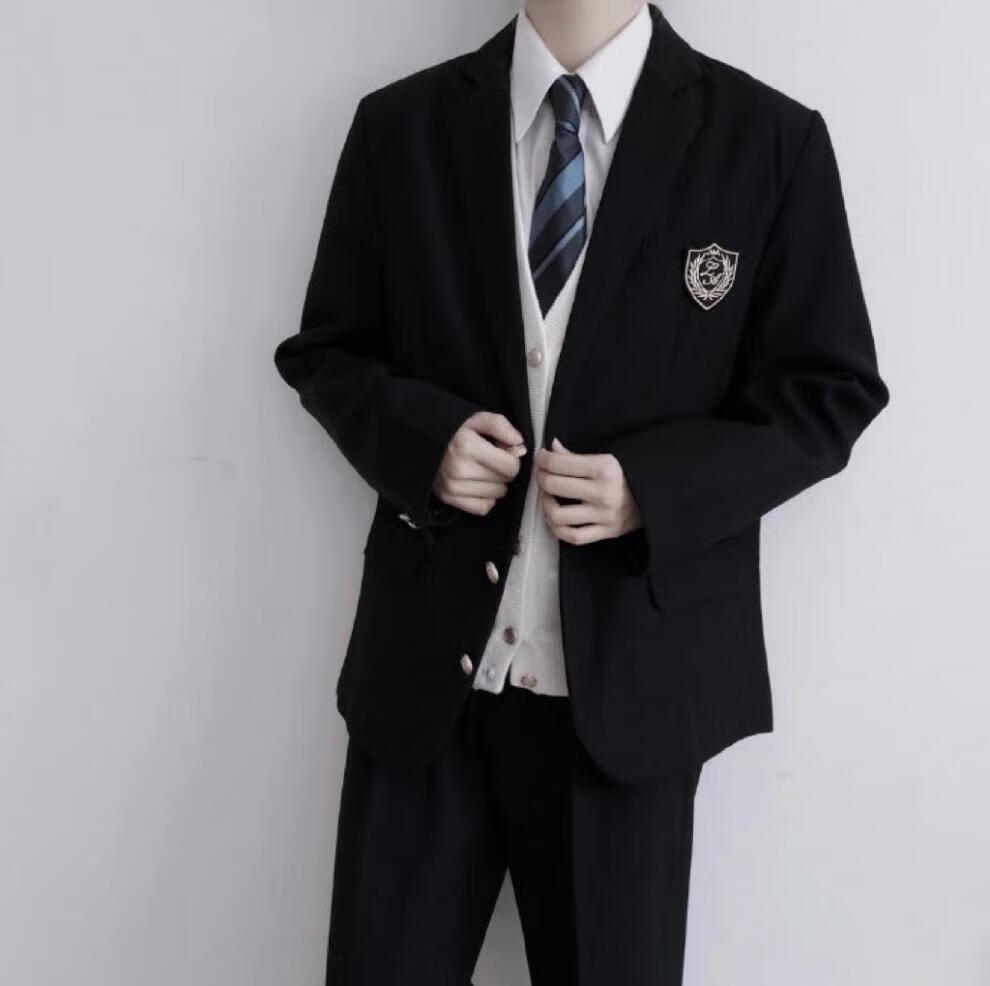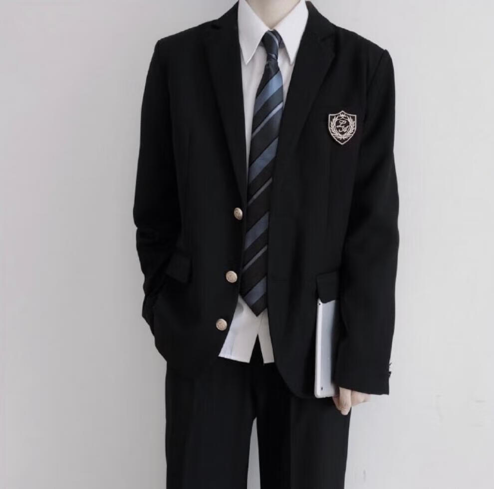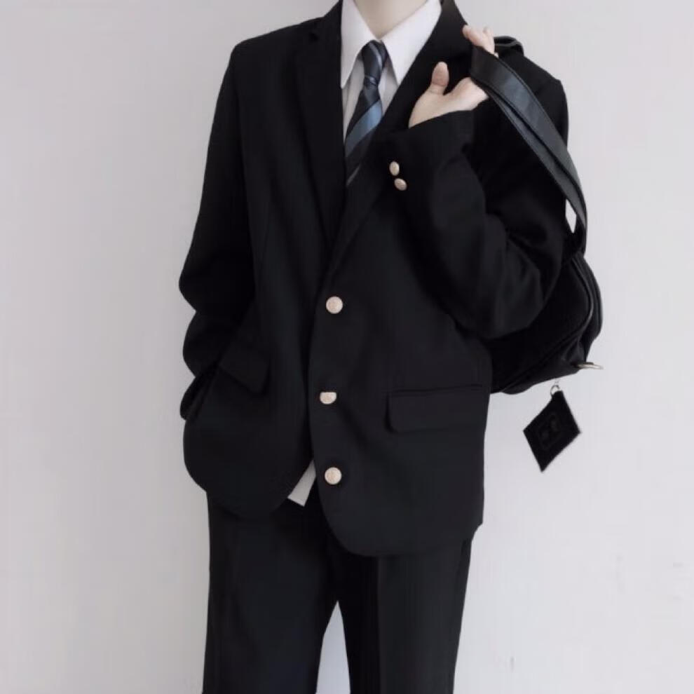 An Chuxia dk uniform college style suit suit men's loose handsome student graduation season adult dress badge suit jacket black suit + white shirt + casual trousers + tie XL + badge recommended 120-140Jin Jin equals 0.5 kg