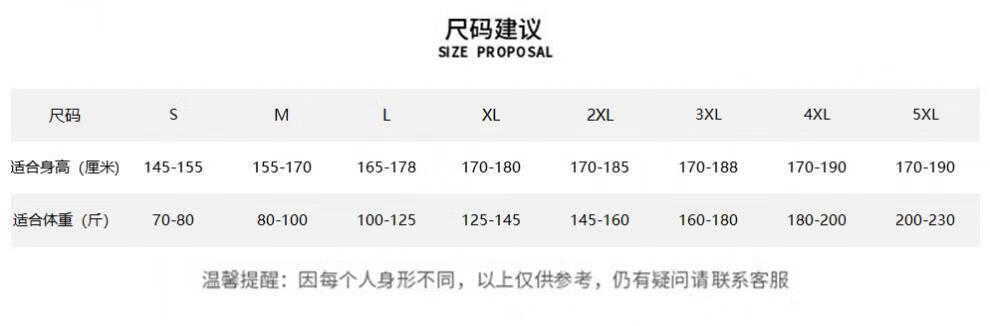 China (cm) 165 / 88-90 170 / 96-98 175 / 108-110 180 / 118-122 185 / 126-130