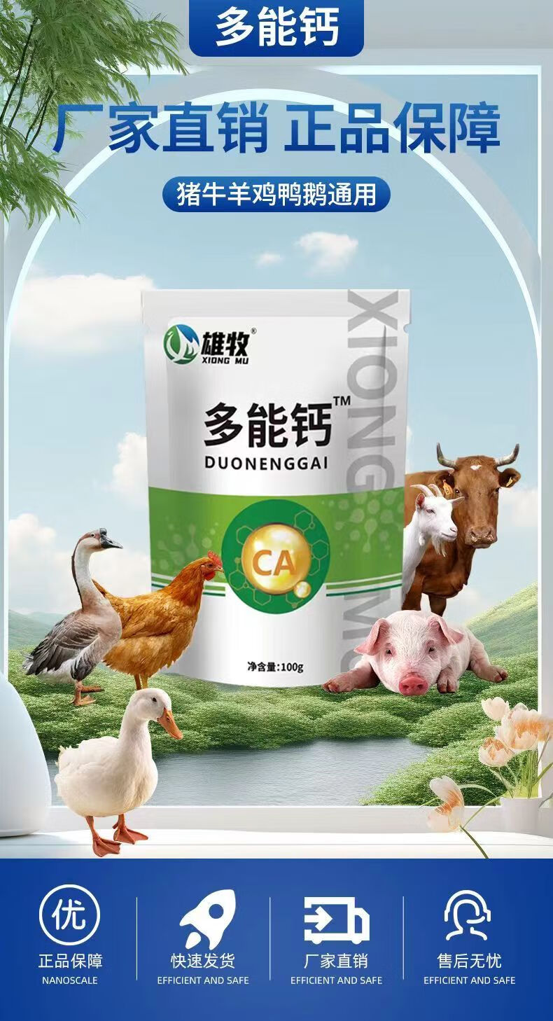 Xiongmu multi-potent calcium for veterinary use, special calcium supplement for poultry, pigs, cattle and sheep, high calcium to promote growth, nutrition and bone strengthening, feed additive multi-potent calcium 2 bags