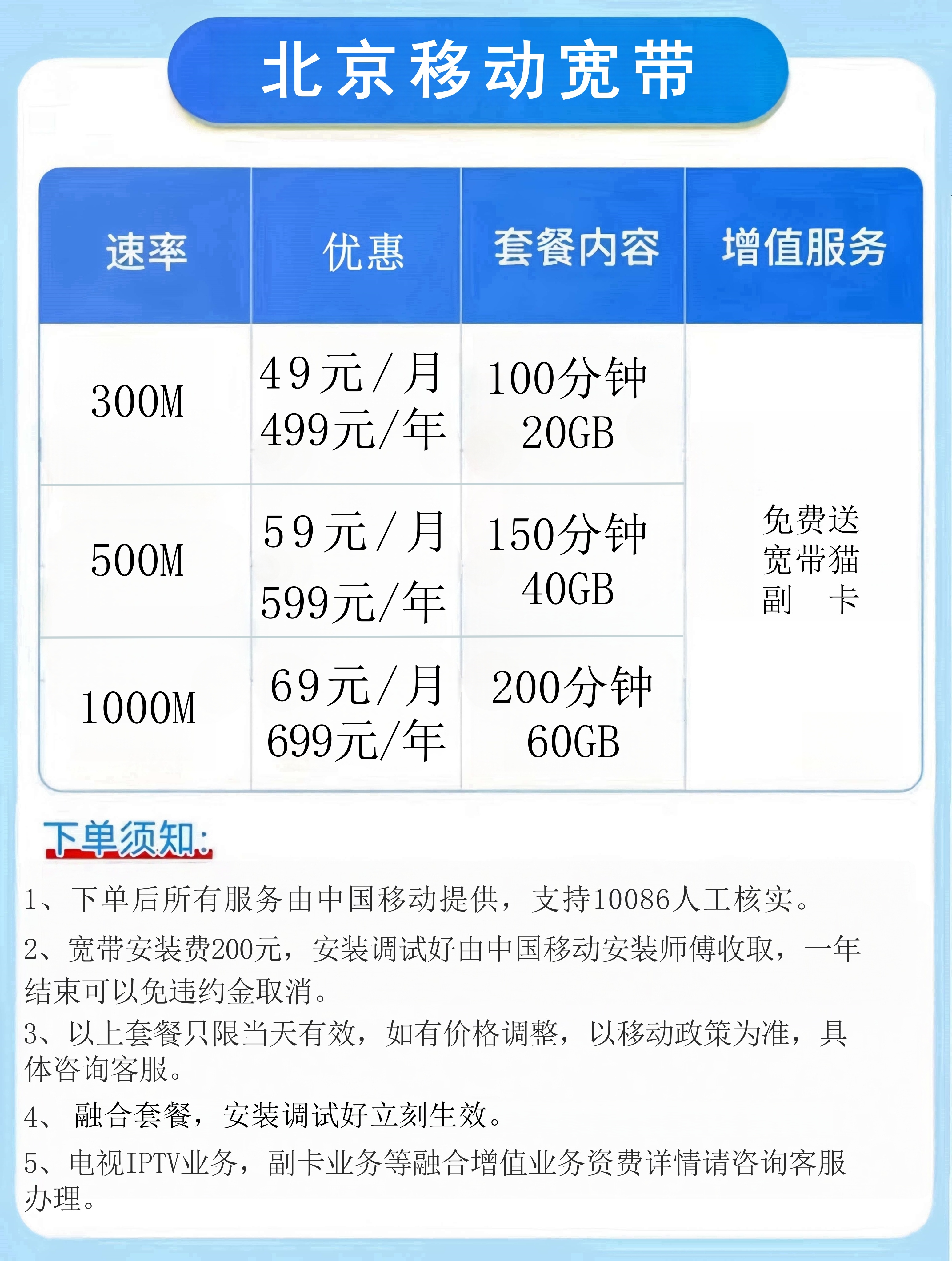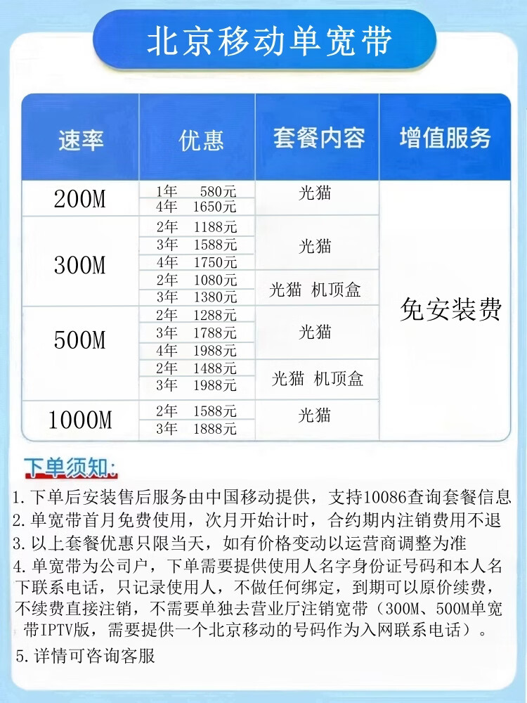 China Mobile Beijing Broadband Mobile Broadband Broadband Installation Broadband Processing Broadband Renewal Single Broadband 1000M Converged Broadband Annual Package (Excluding Installation Fee)