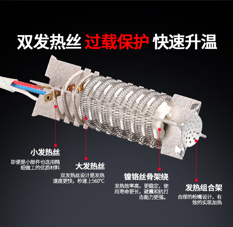 Delixi Electric hot air gun plastic welding gun accessories heating wire electric heating core digital display 1600W 2000W electric heating wire temperature regulating plastic welding gun 750W heating core
