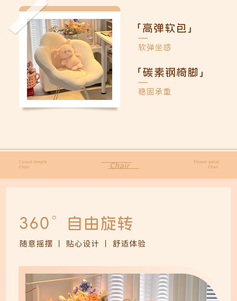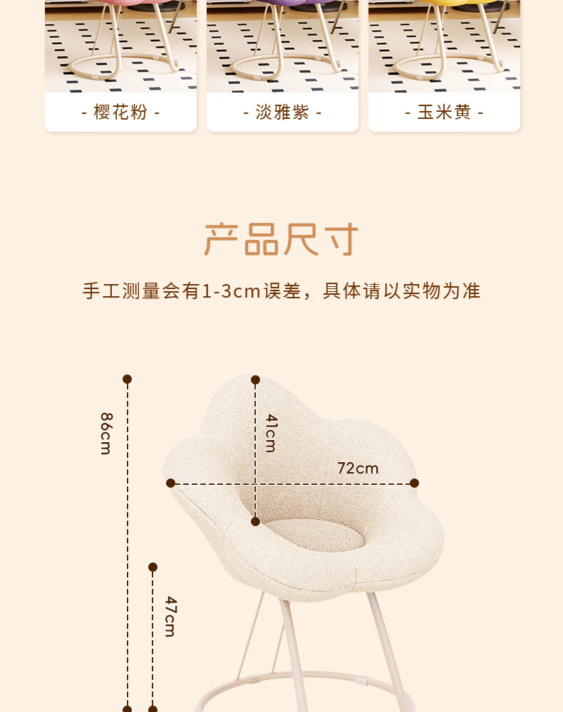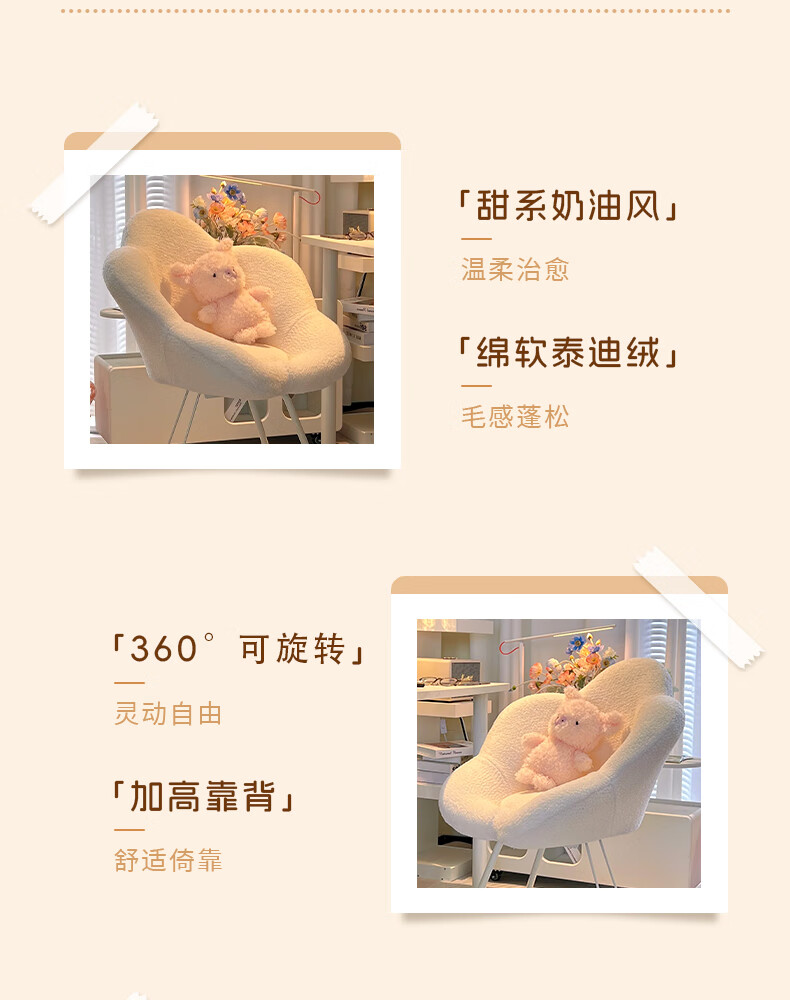 Shitingge Makeup Chair Backrest Beauty Stool Internet Celebrity Makeup Chair Backrest Dressing Chair Cream Style Stool Girls Bedroom Flower Bold and Thickened/Can Lift and Rotate Cherry Blossom Pink