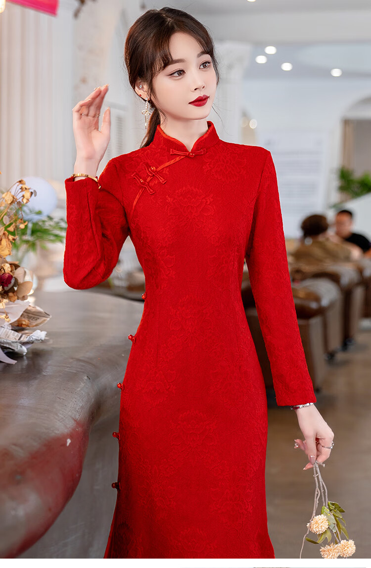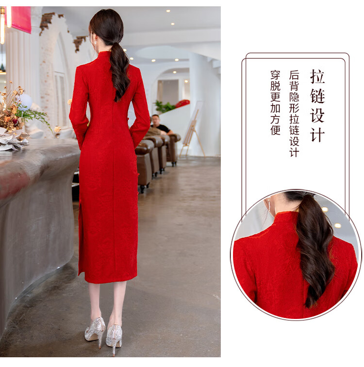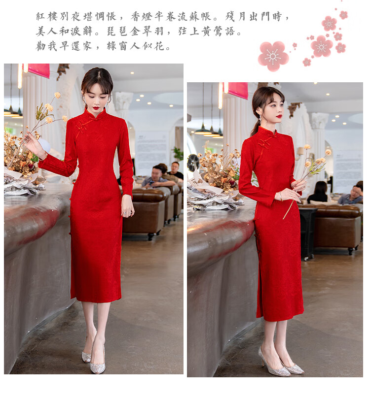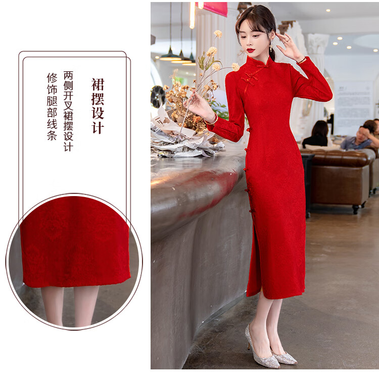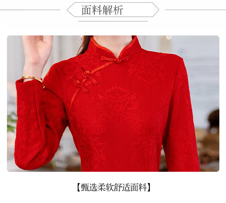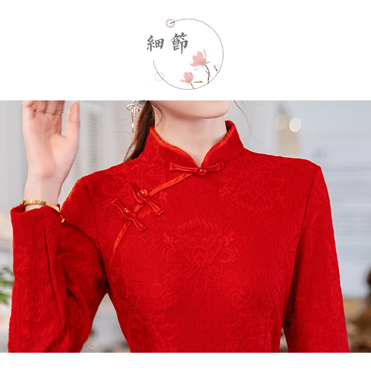 Woodpecker (TUCANO) Cheongsam Women's 2025 Autumn and Winter New Style Improved Velvet Thickened New Chinese Style Slim Fit Long Sleeve Dress Red XL Recommended 110-120 Jin Jin equals 0.5 kg