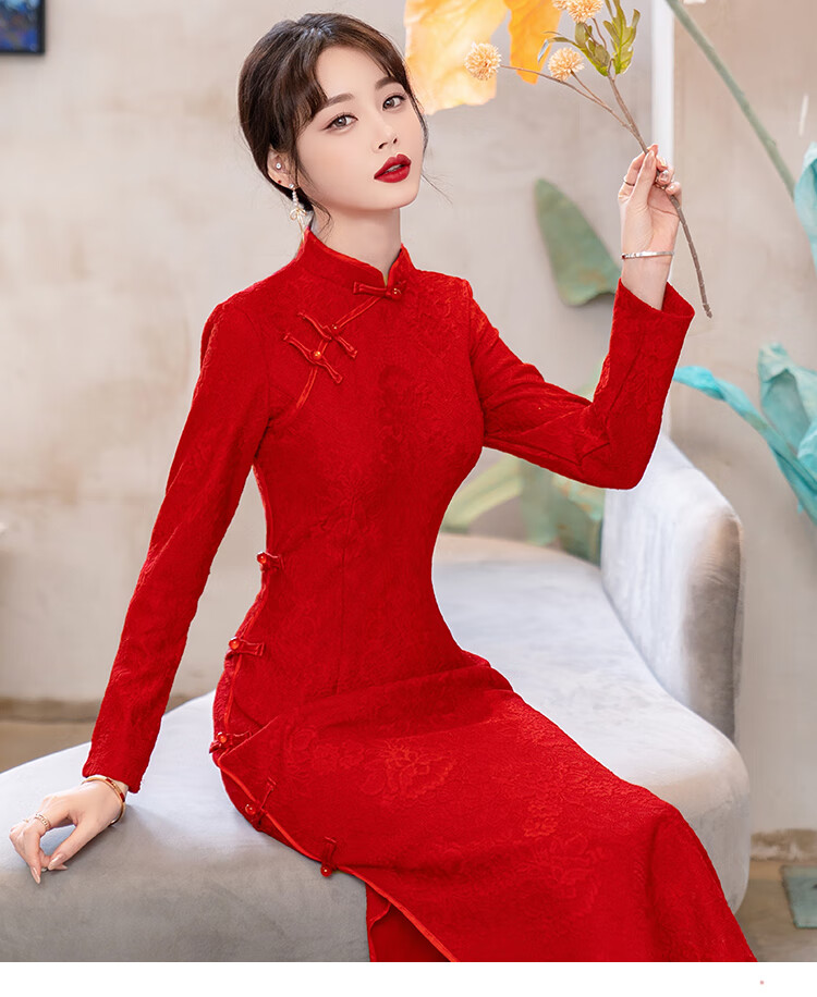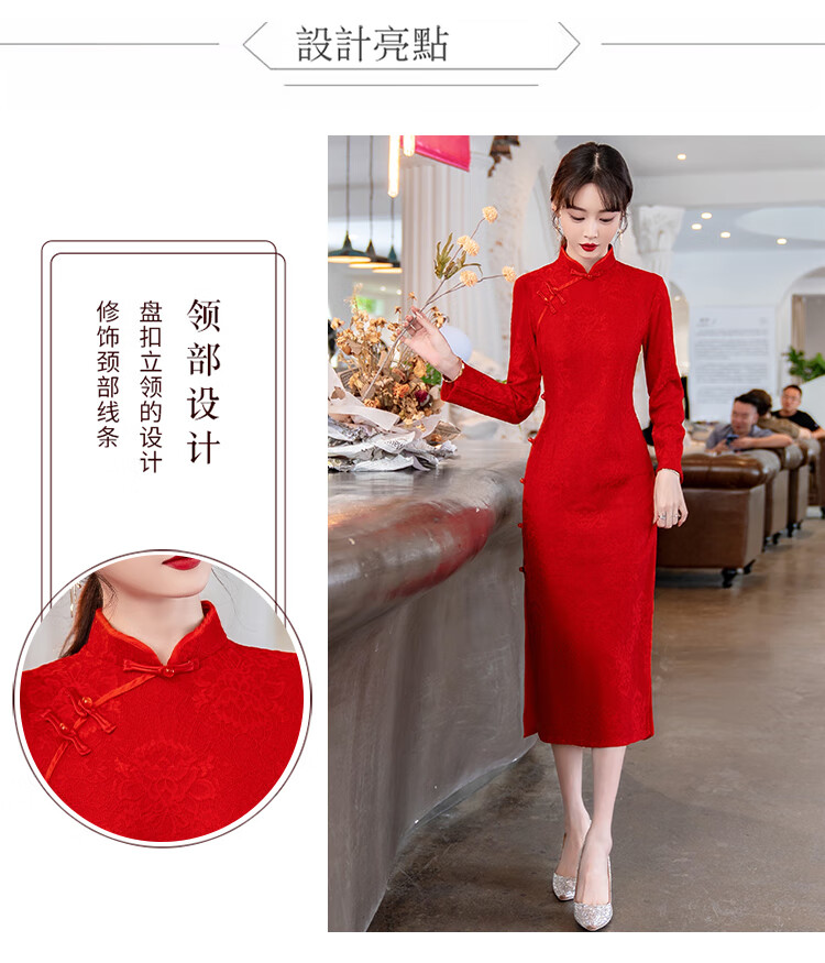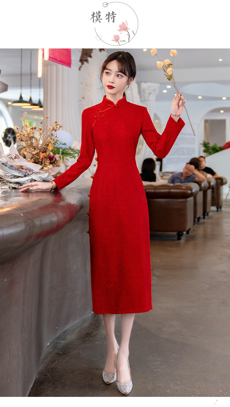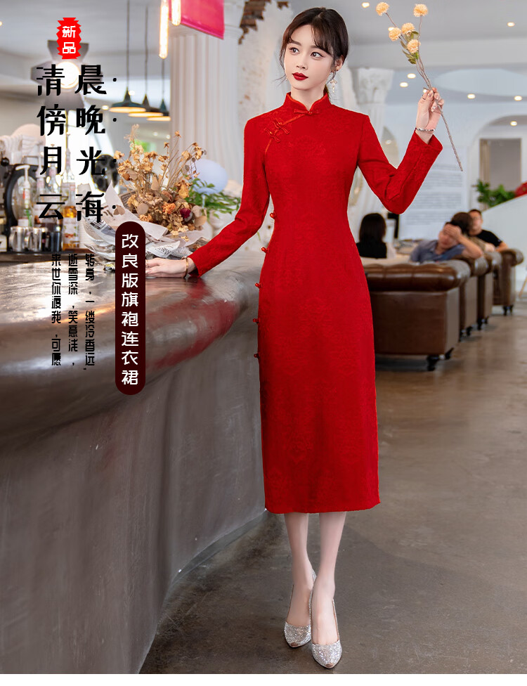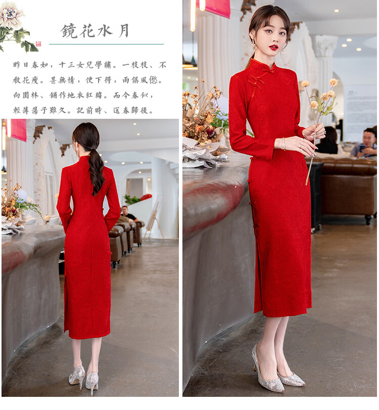 Woodpecker (TUCANO) Cheongsam Women's 2025 Autumn and Winter New Style Improved Velvet Thickened New Chinese Style Slim Fit Long Sleeve Dress Red XL Recommended 110-120 Jin Jin equals 0.5 kg