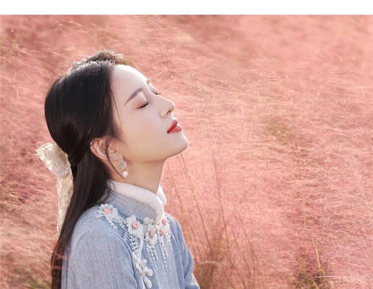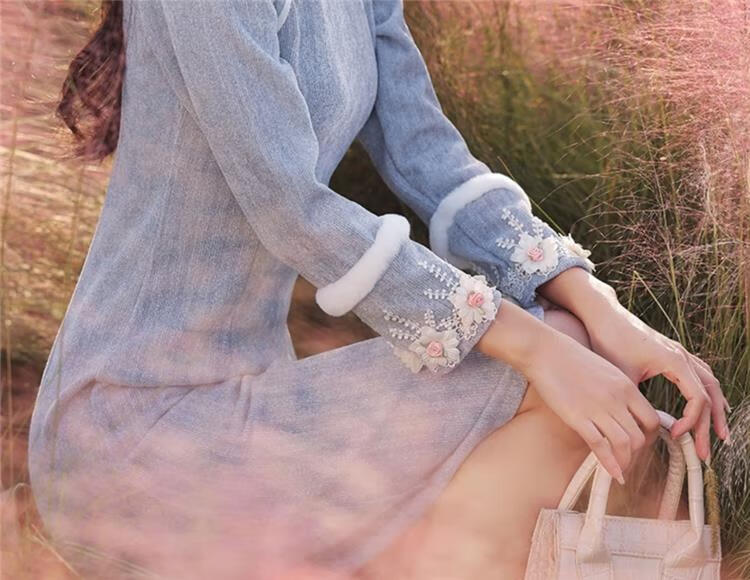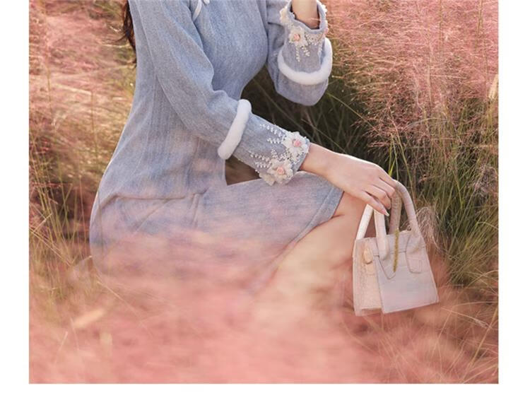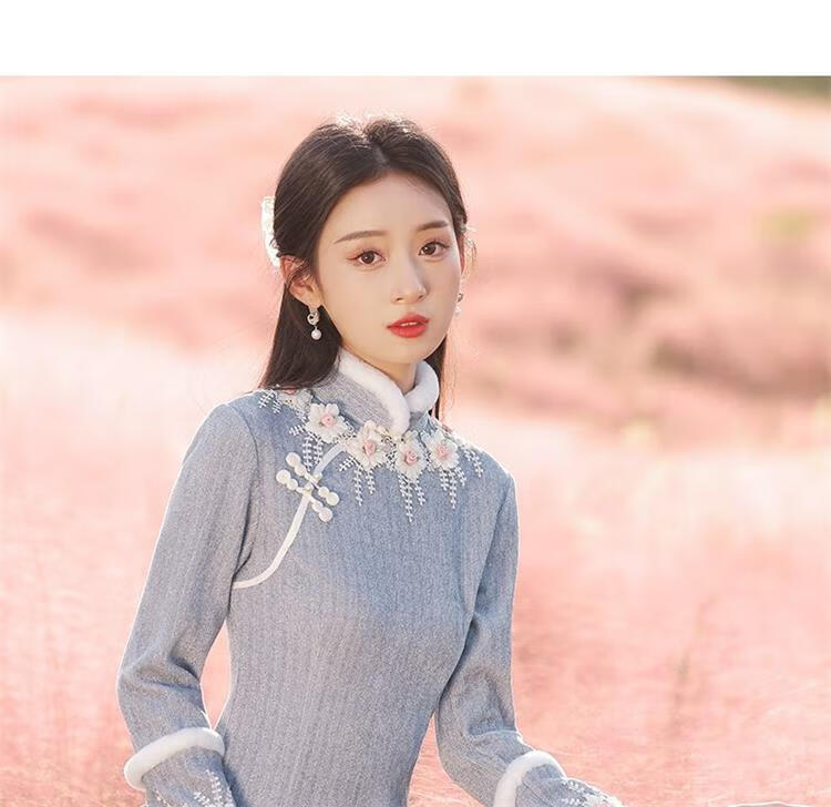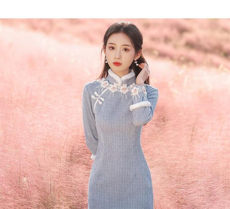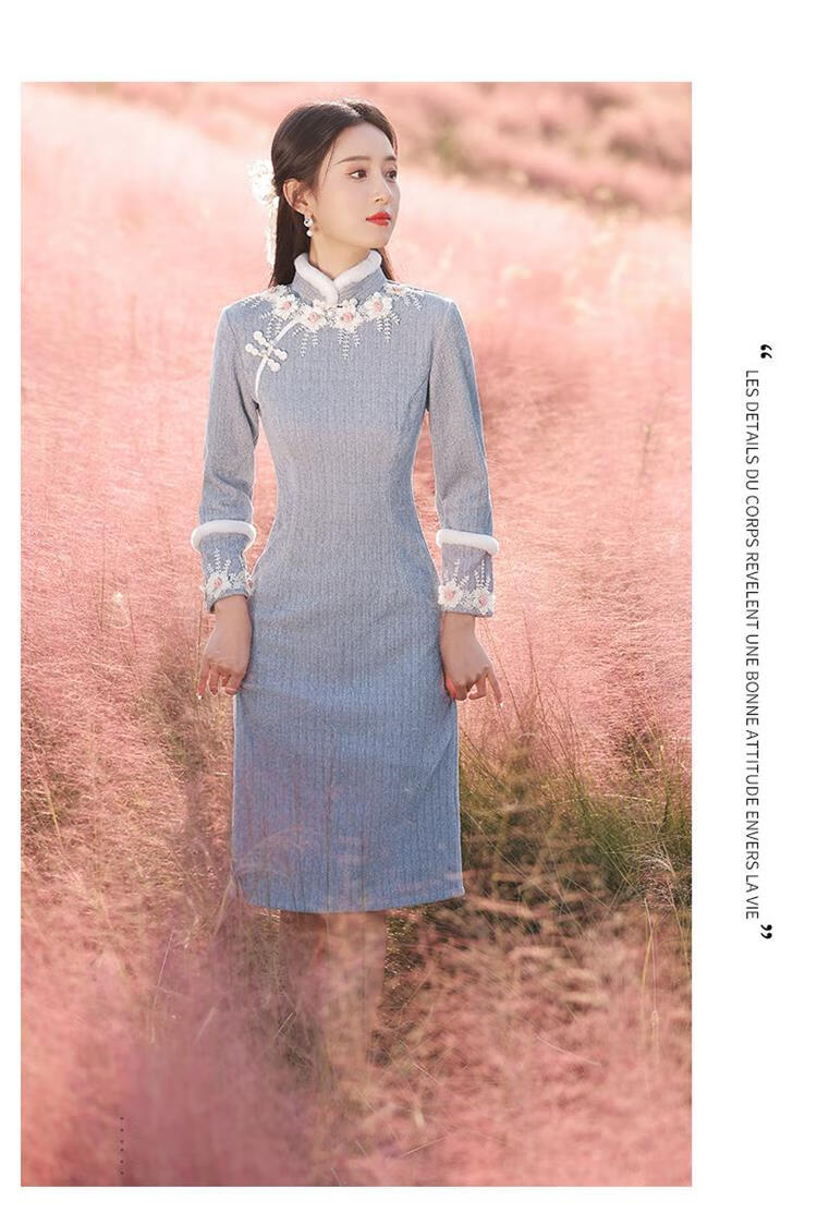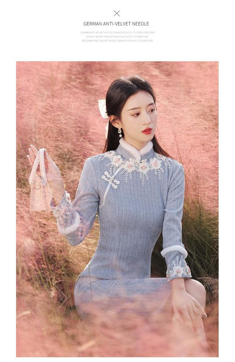 Pierre Cardin Cheongsam Women's 2025 Autumn and Winter New Winter Style Young Style Long Sleeve Thickened Fashion Improved Winter Dress Winter Edelweiss M