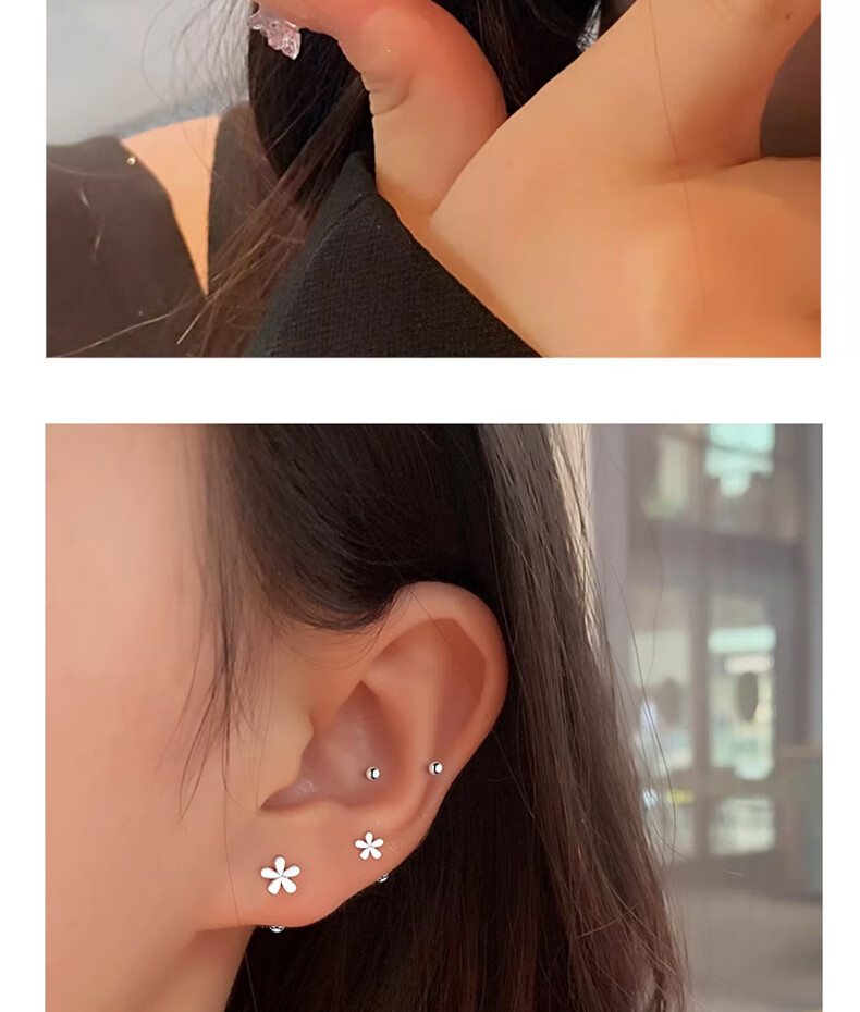 Qi Xiaomi Pure 999 Pure Silver Small Flower Earrings Girls' Screw Twist Earrings for Sleeping No-Pick Ear Piercing Tremella Jewelry 999 Pure Silver Flower Spiral Pair