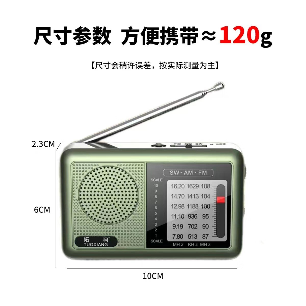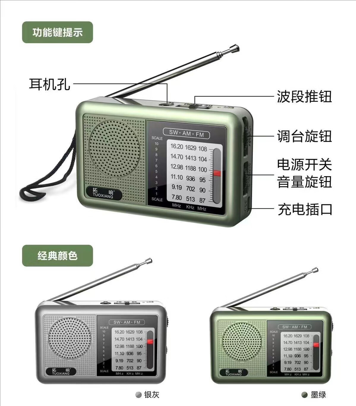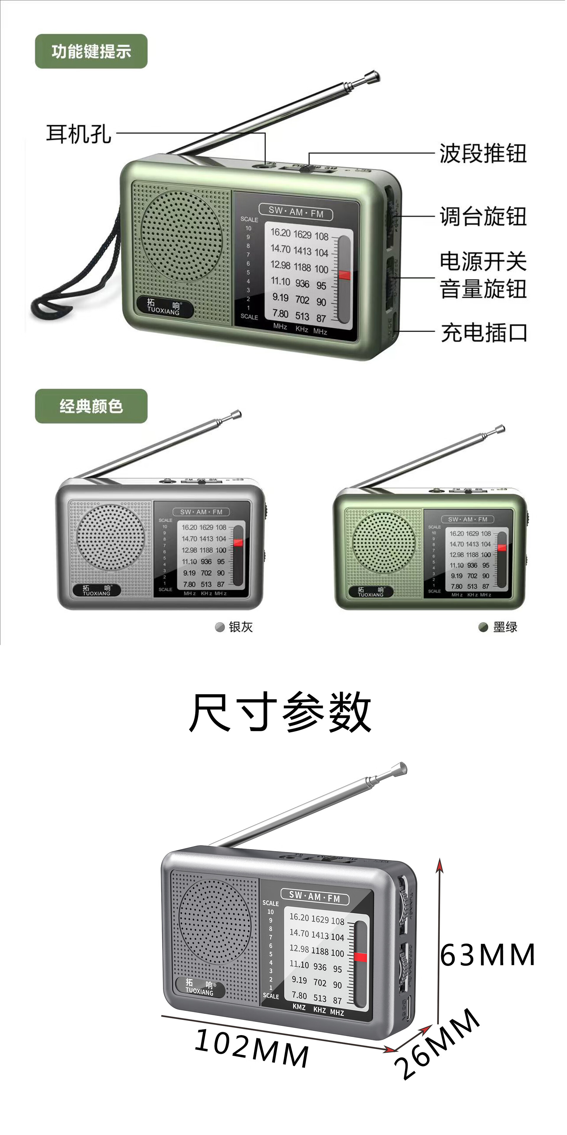 2025 new Tuoxiang T-6665 mini portable full-band radio for the elderly, simple to operate and rechargeable, dark green, standard version (with charging cable + battery + charger)