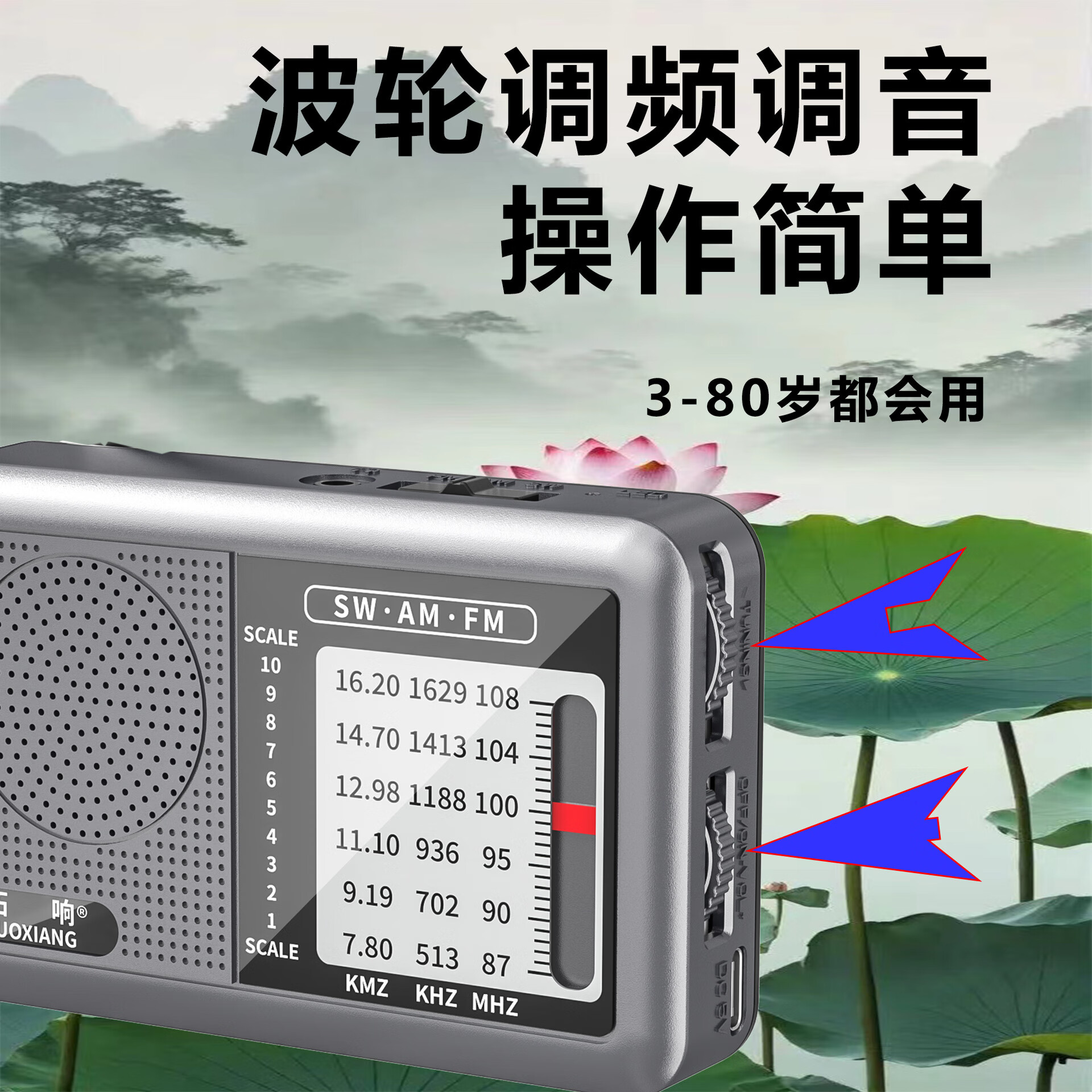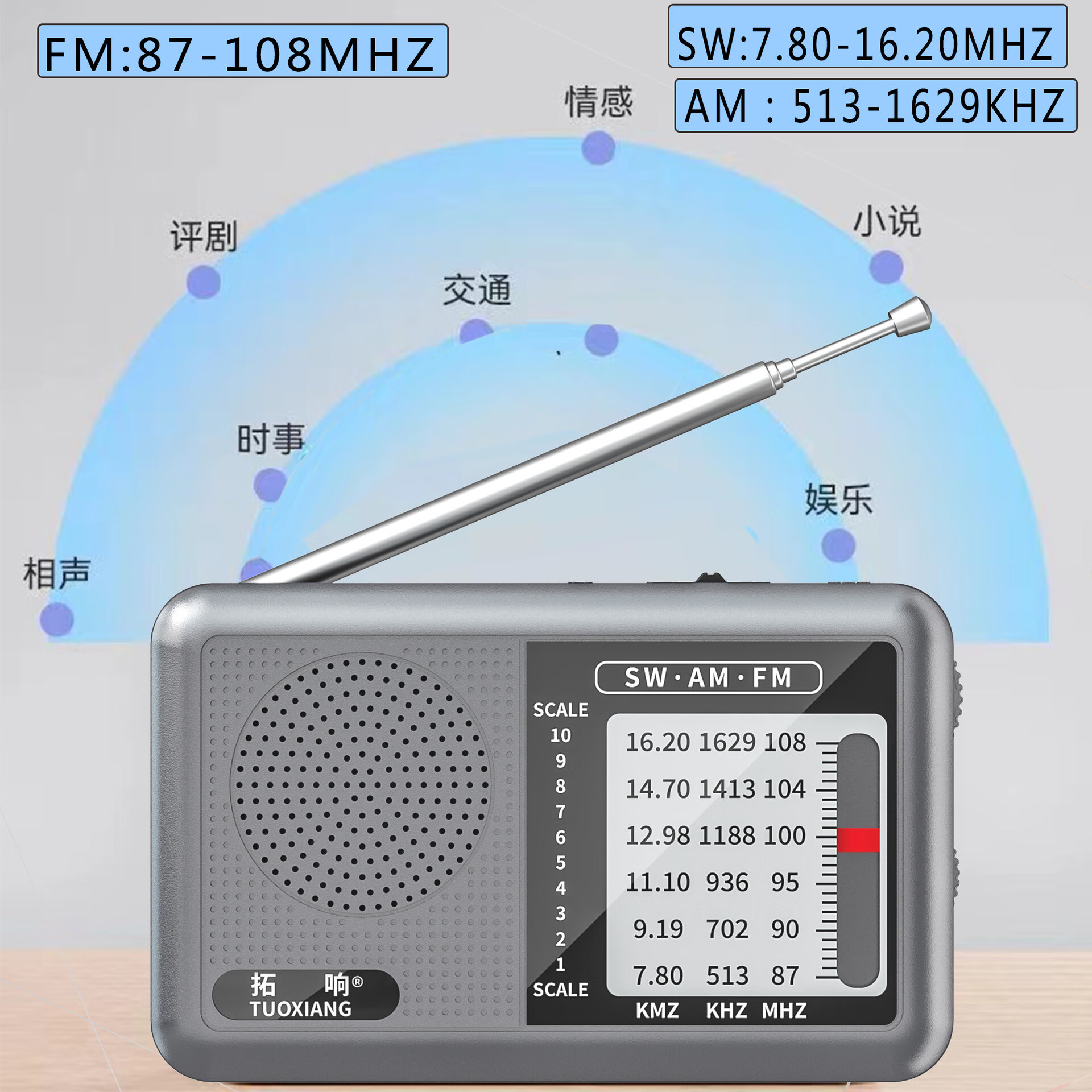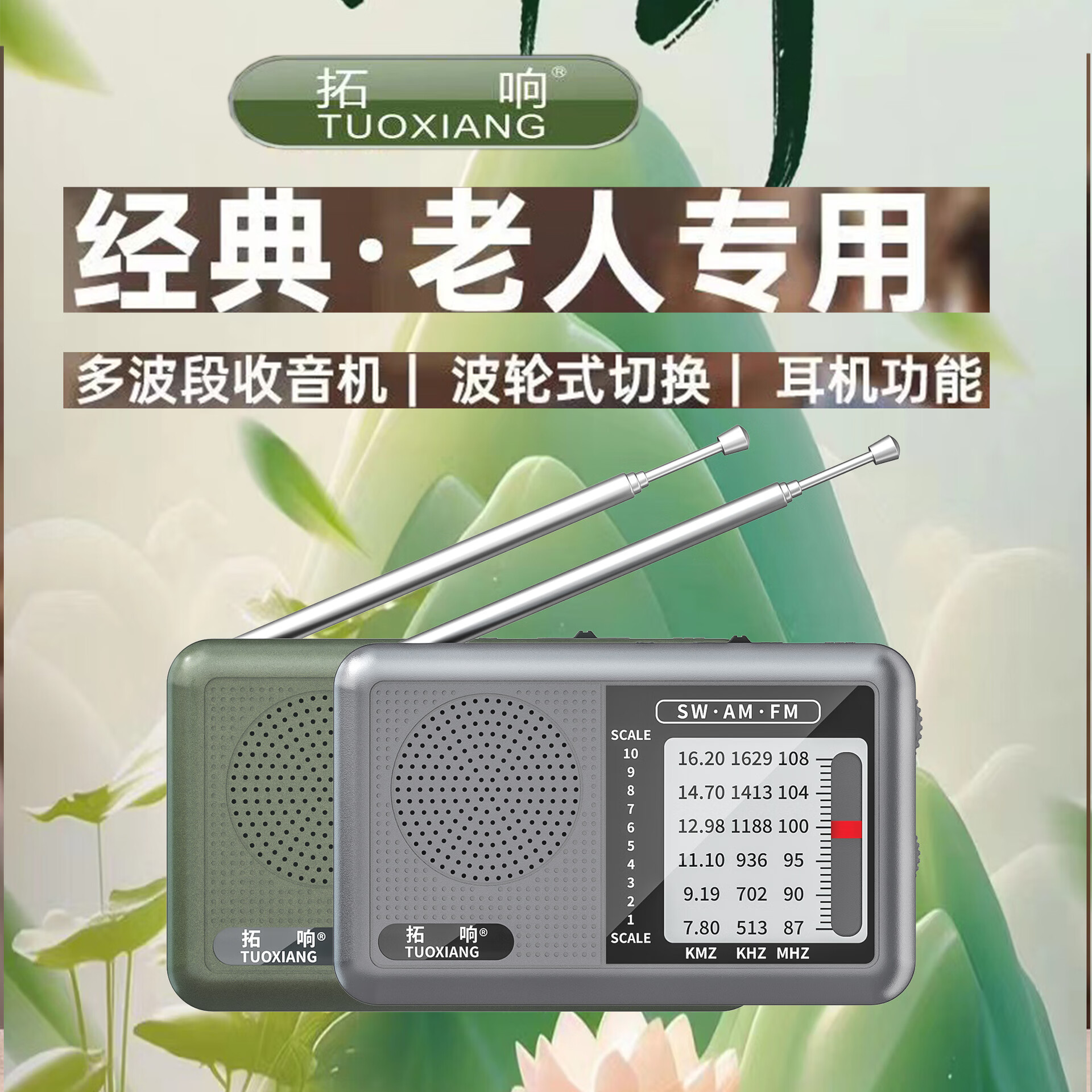 2025 new Tuoxiang T-6665 mini portable full-band radio for the elderly, simple to operate and rechargeable, dark green, standard version (with charging cable + battery + charger)