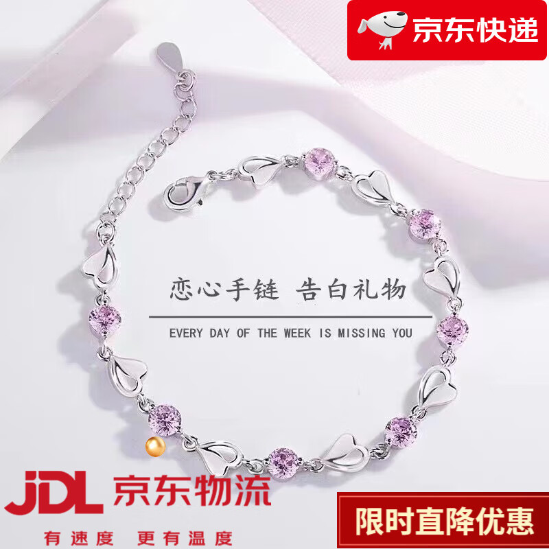 Fat Donglai's same style silver-plated PT950 platinum bracelet for women, diamond bracelet as a light luxury gift for girlfriend and wife on her birthday. I love you platinum bracelet with white diamonds.